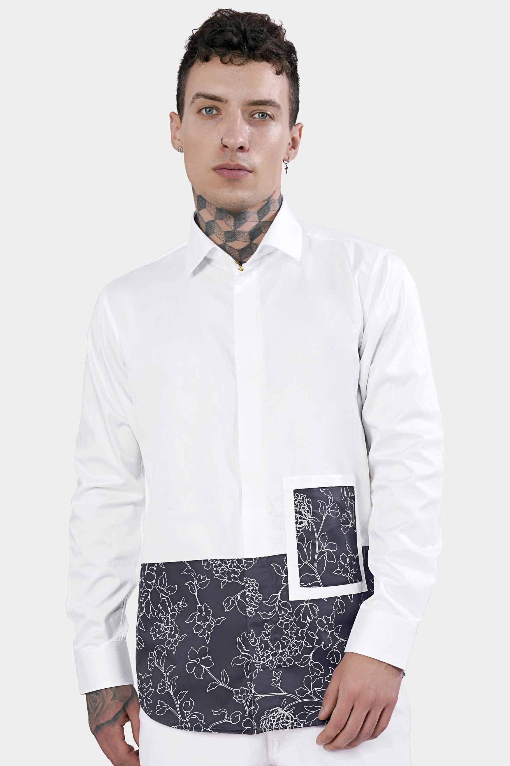 Bright White and Black Abstract Lines Printed Subtle Sheen Super Soft Premium Cotton ShirtBright White and Black Abstract Lines Printed Subtle Sheen Super Soft Premium Cotton Shirt