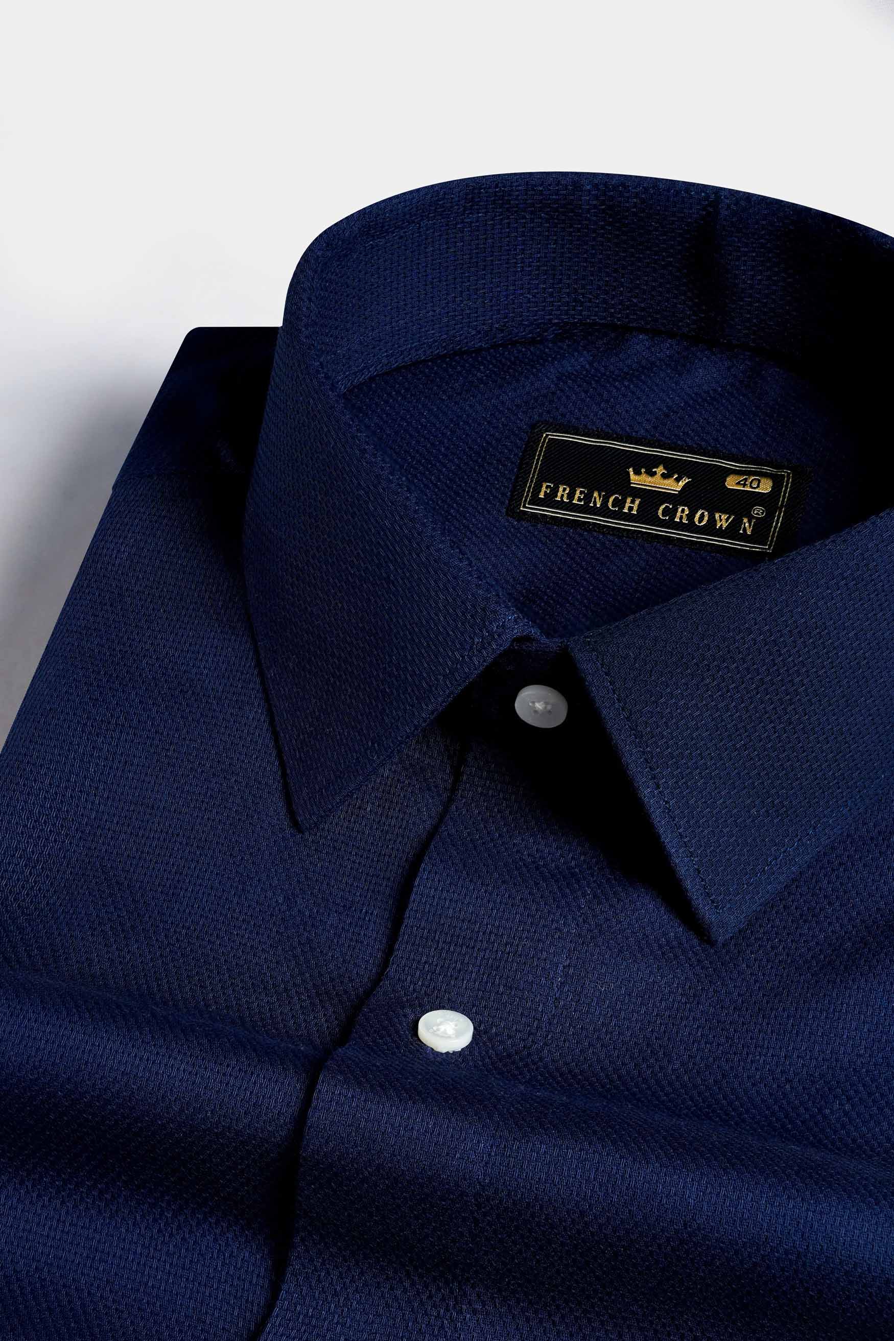 Ebony Clay Blue Jacquard Textured Premium Giza Cotton Shirt