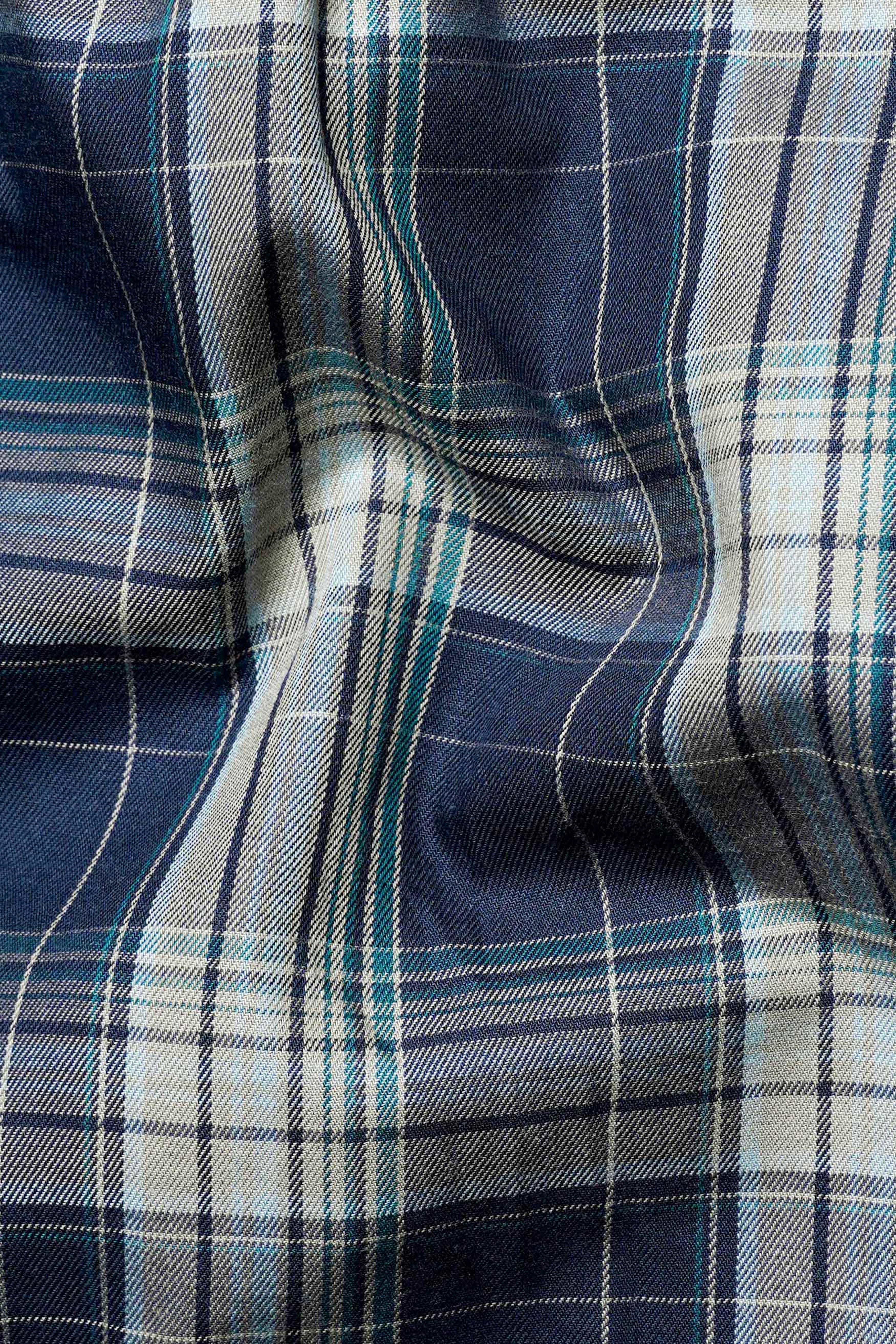Ebony Clay Blue and Jour Cream Green Twill Plaid Premium Cotton ShirtEbony Clay Blue and Jour Cream Green Twill Plaid Premium Cotton Shirt