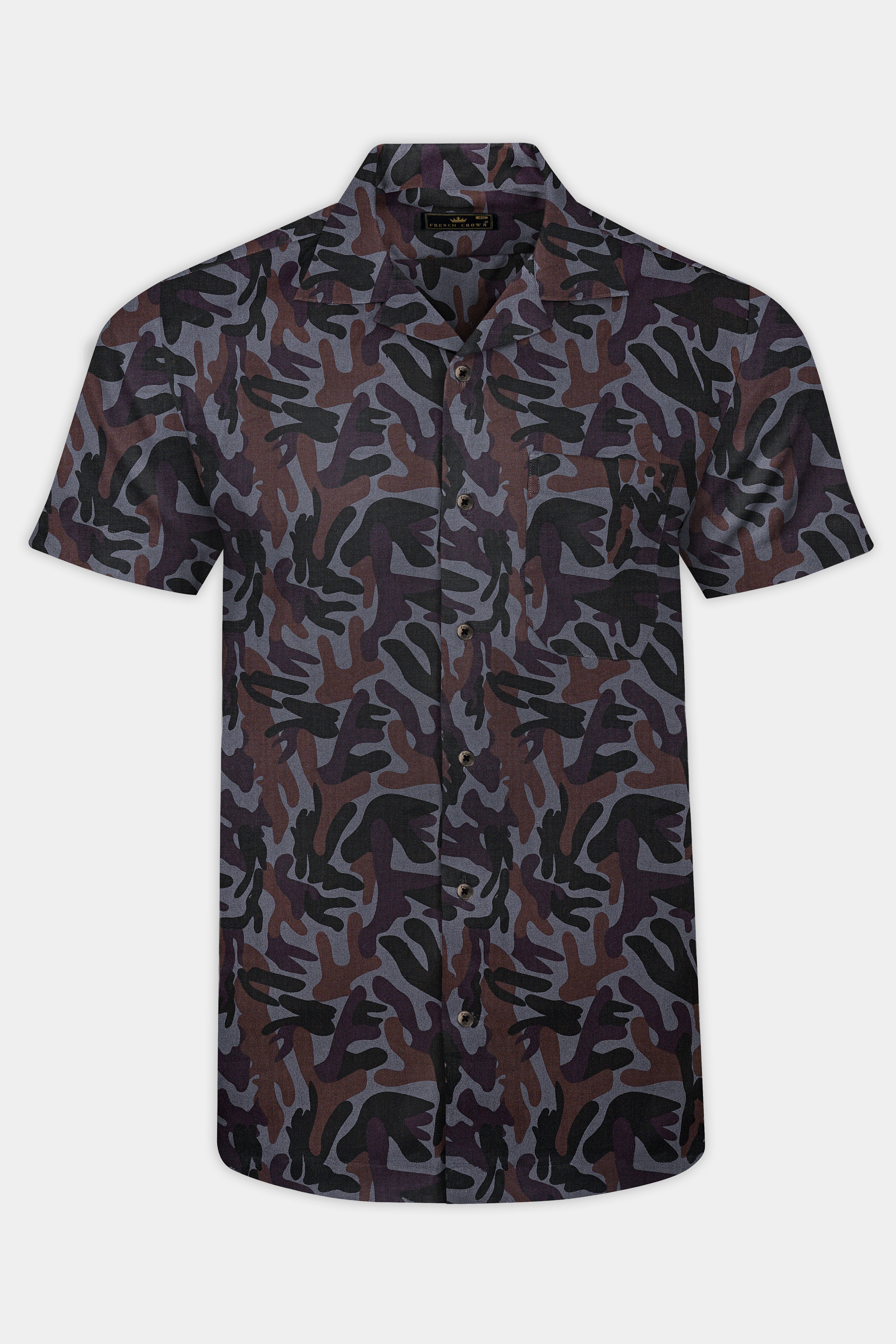 Ninja Gray And Taupe Brown Camouflage Printed Royal Oxford Premium Cotton Shirt