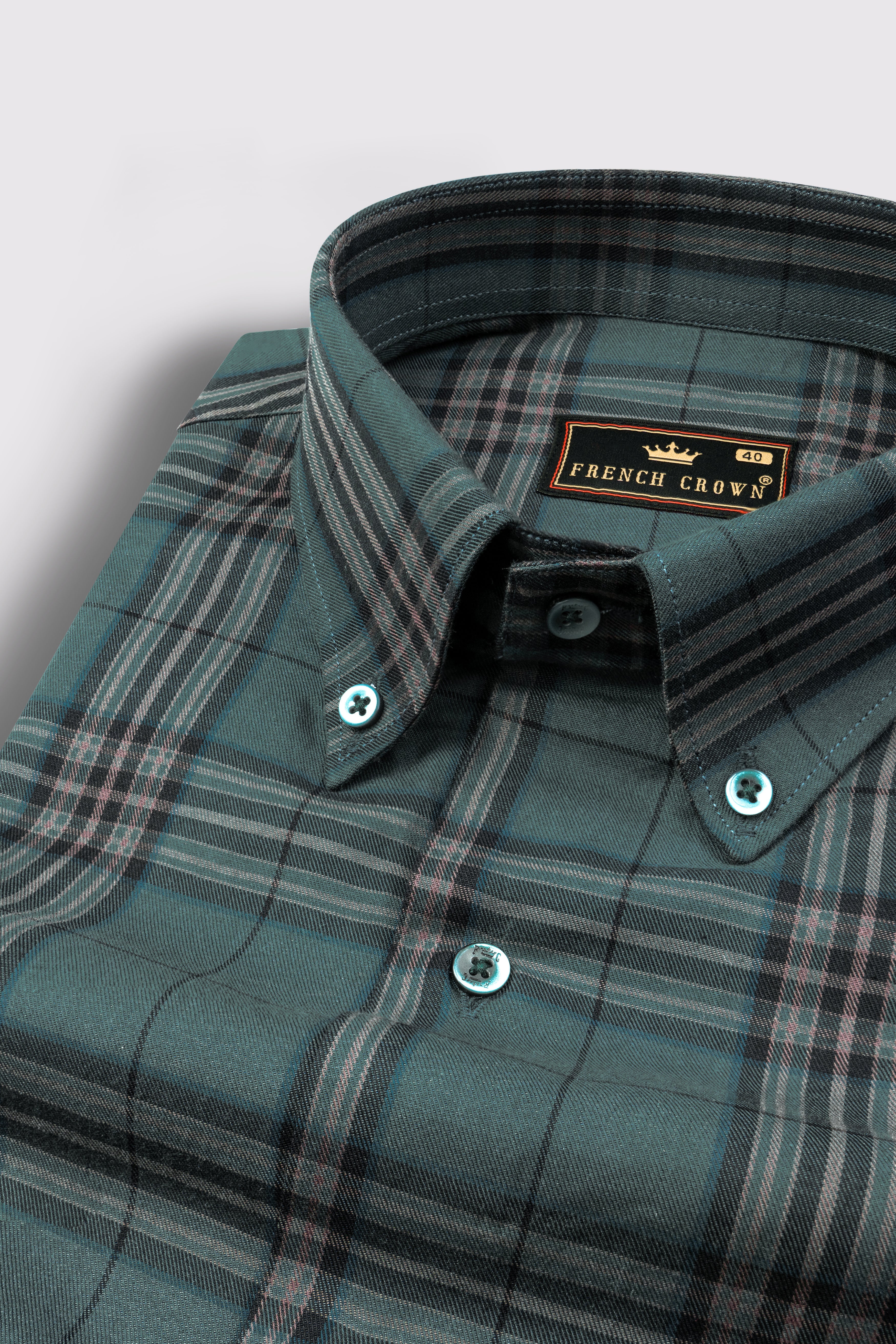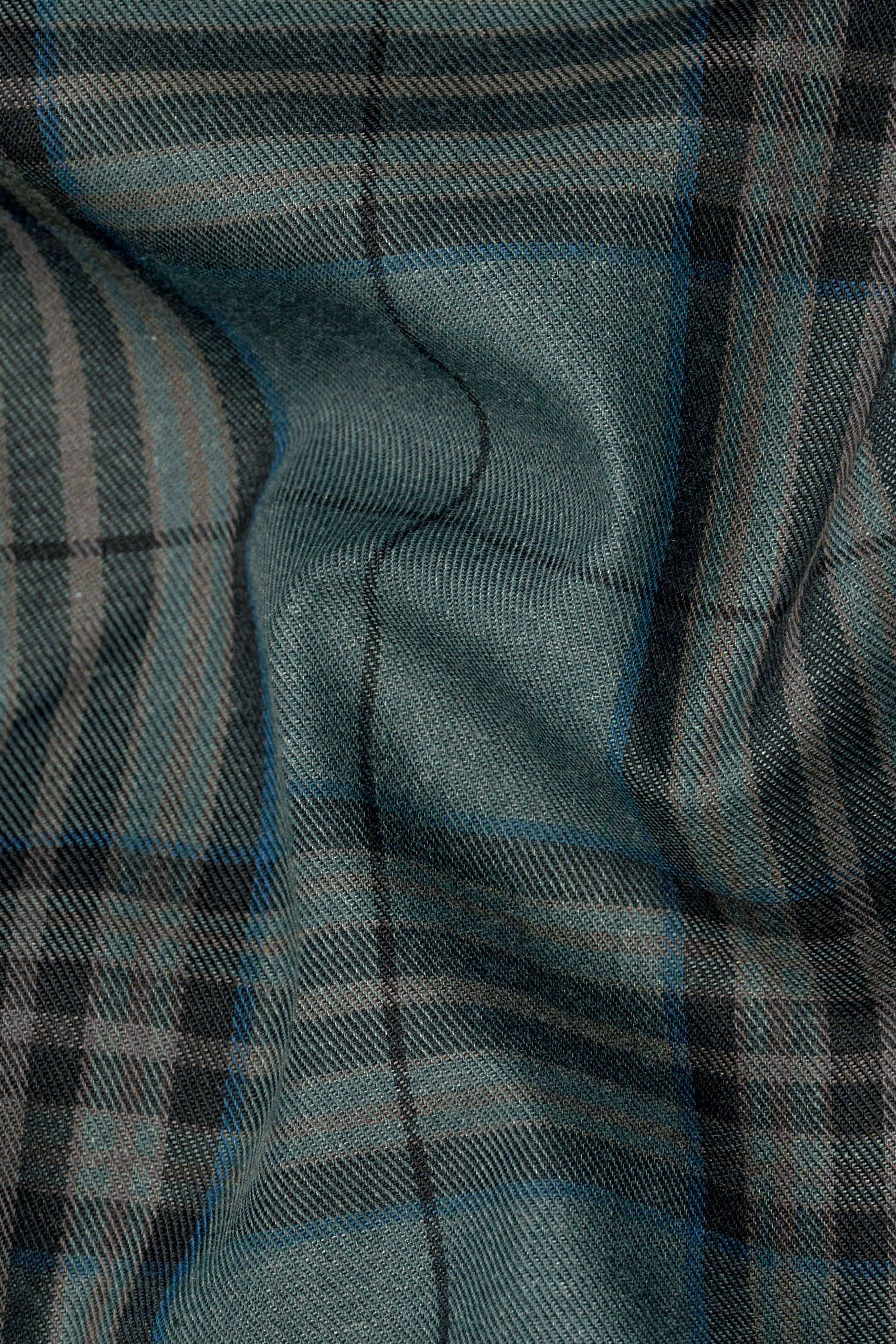 Nandor Green with Multicolor Plaid Textured Twill Premium Cotton Shirt