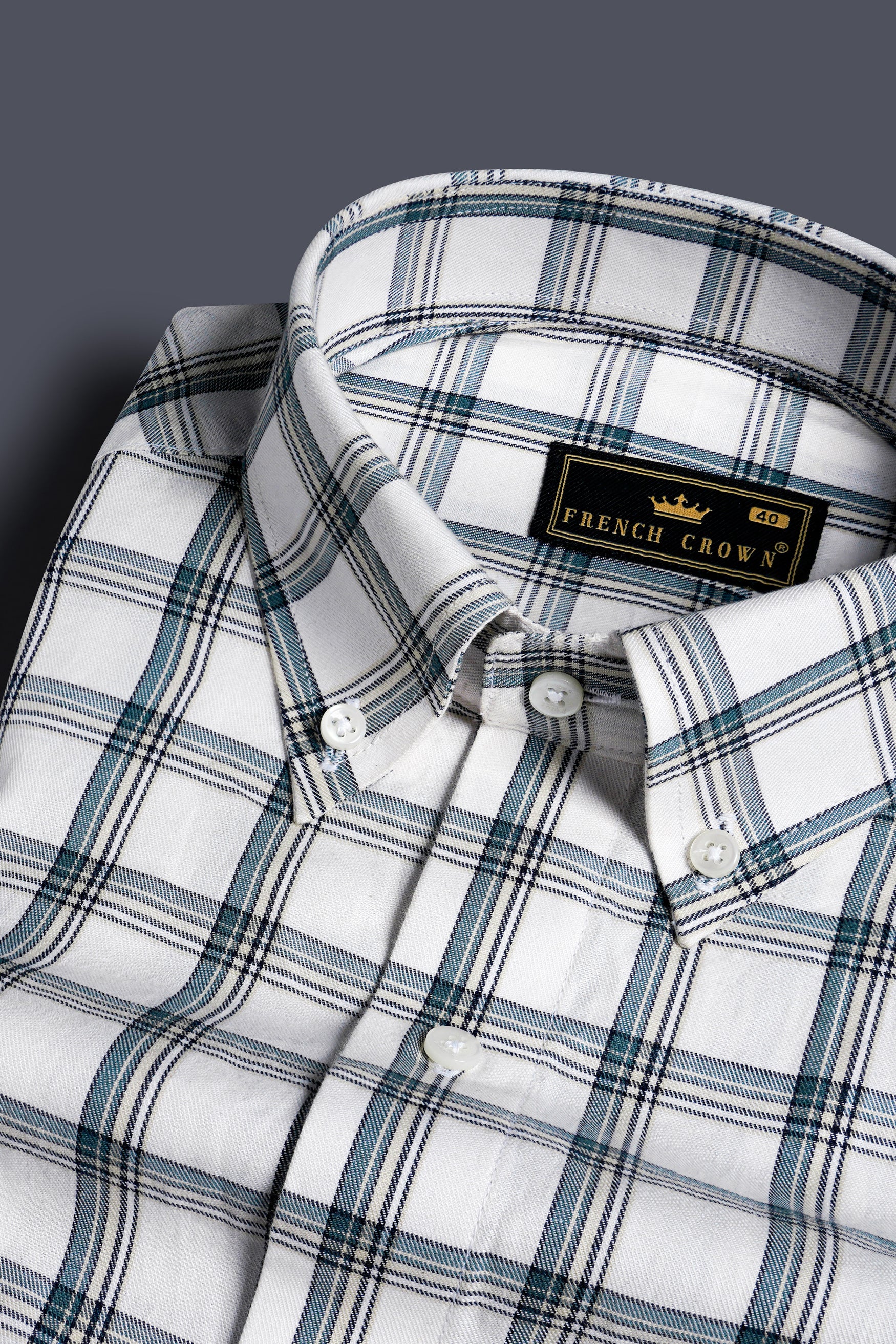 7swords-Bright White and Hit Gray Checkered Premium Cotton Shirt