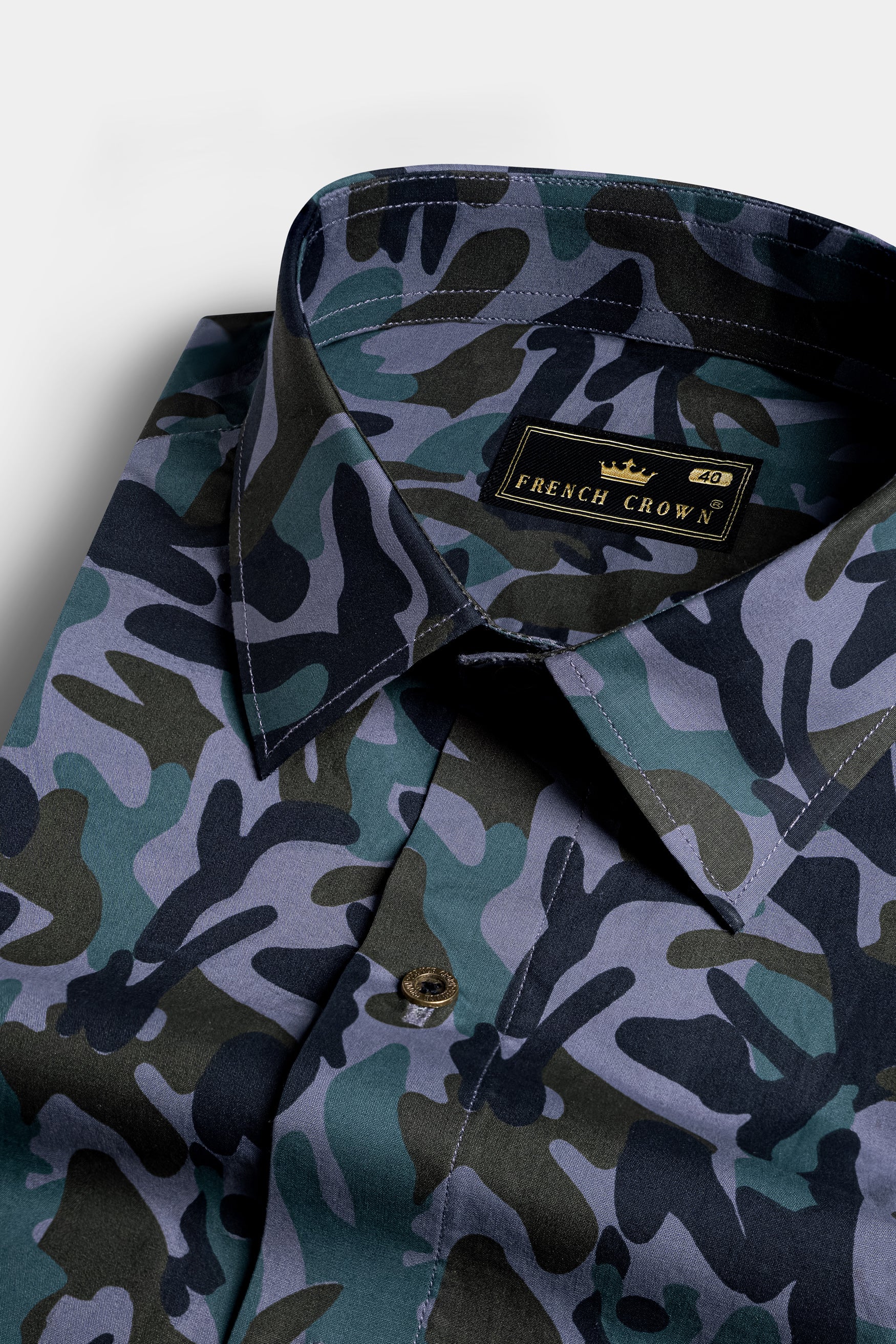Waikawa Purple and Haiti Blue Multicolour Camouflage Royal Oxford Shirt