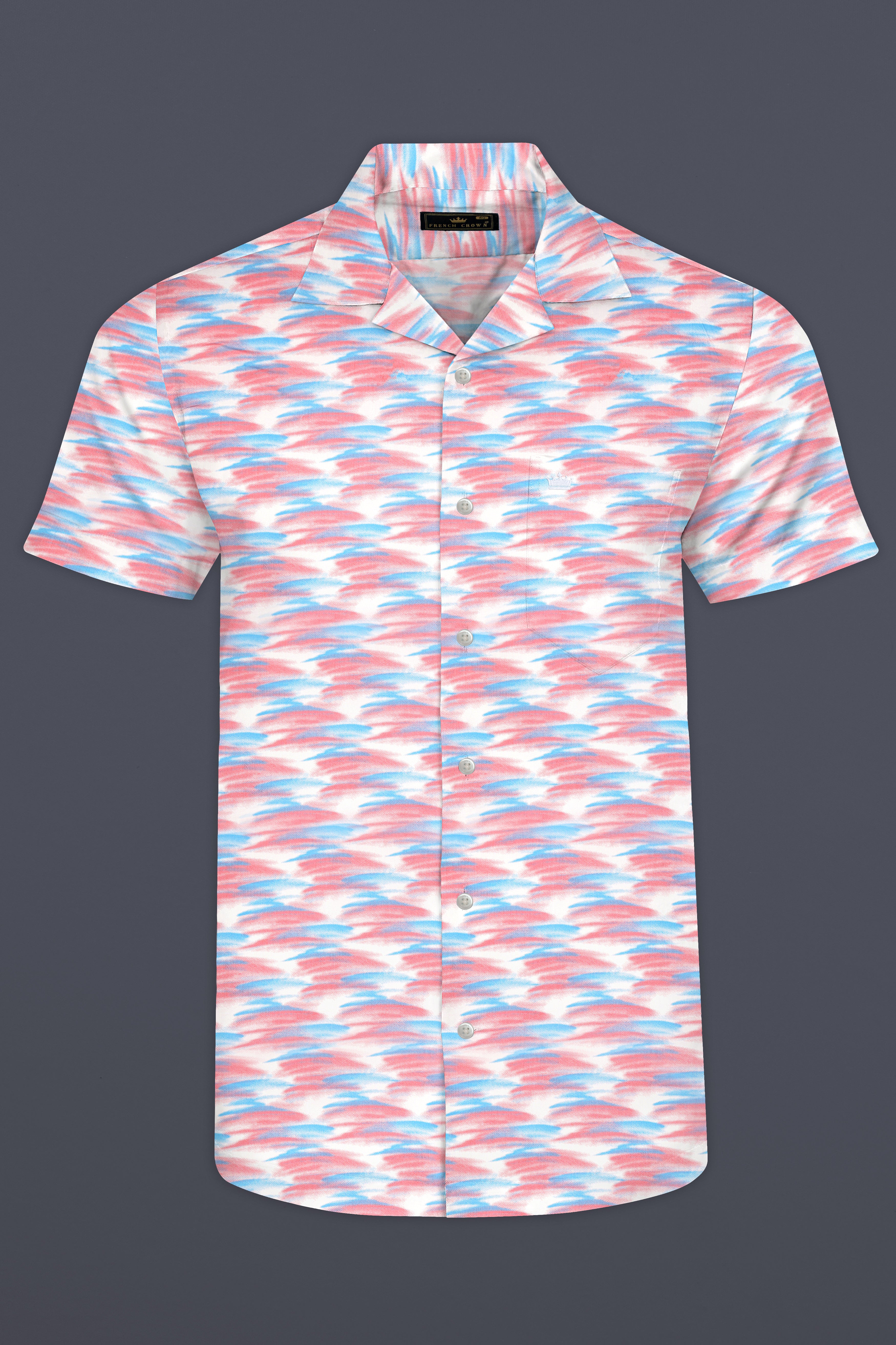 Thulian Pink and Hippie Blue with white abstract Printed Super Soft Premium Cotton Shirt