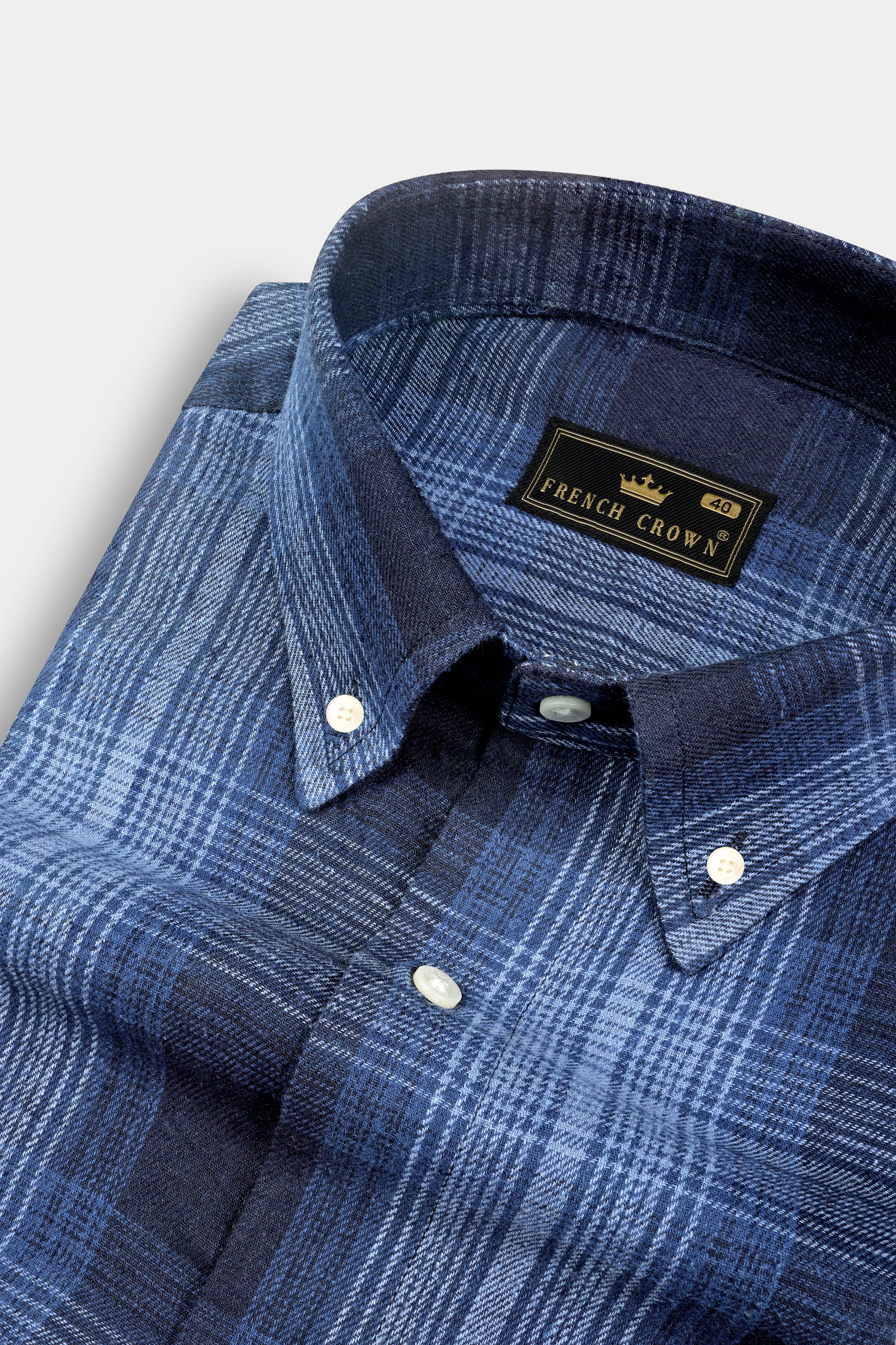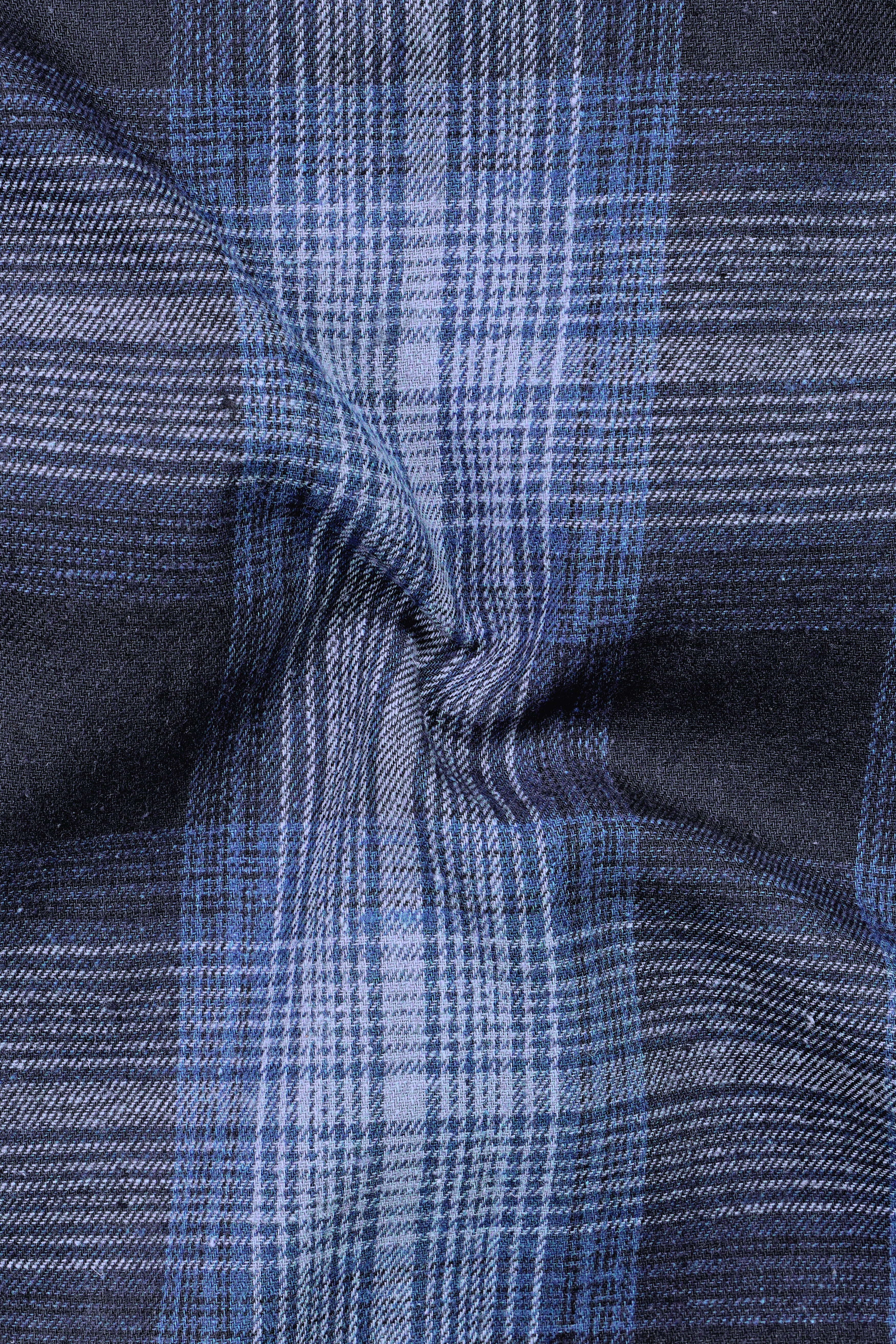 Blue Subtle Checkered Dobby Textured Premium Giza Cotton Shirt
