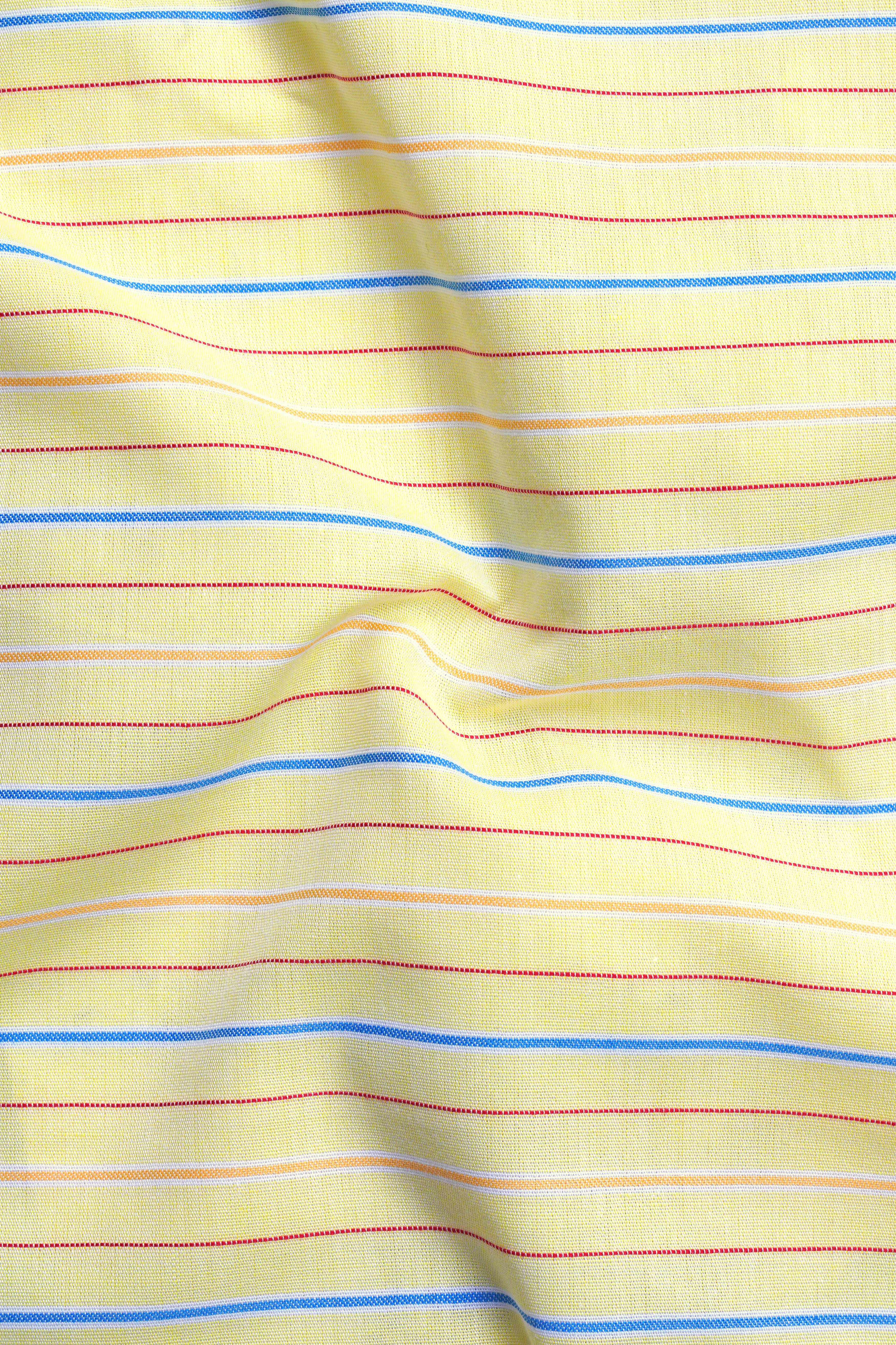 Hazel Yellow Striped Dobby Textured Premium Cotton Shirt