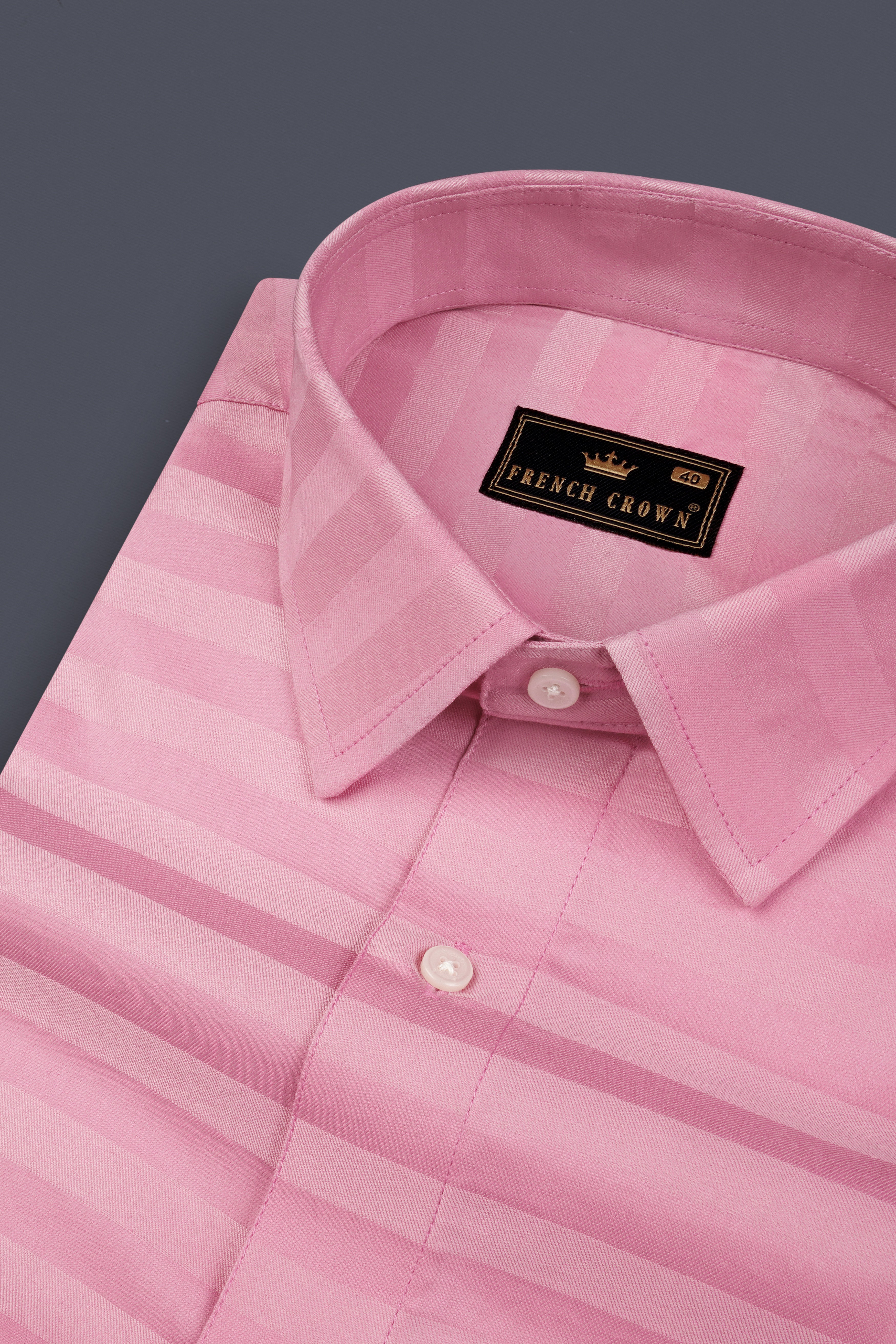 Rose Pink Striped Dobby Textured Premium Cotton Shirt