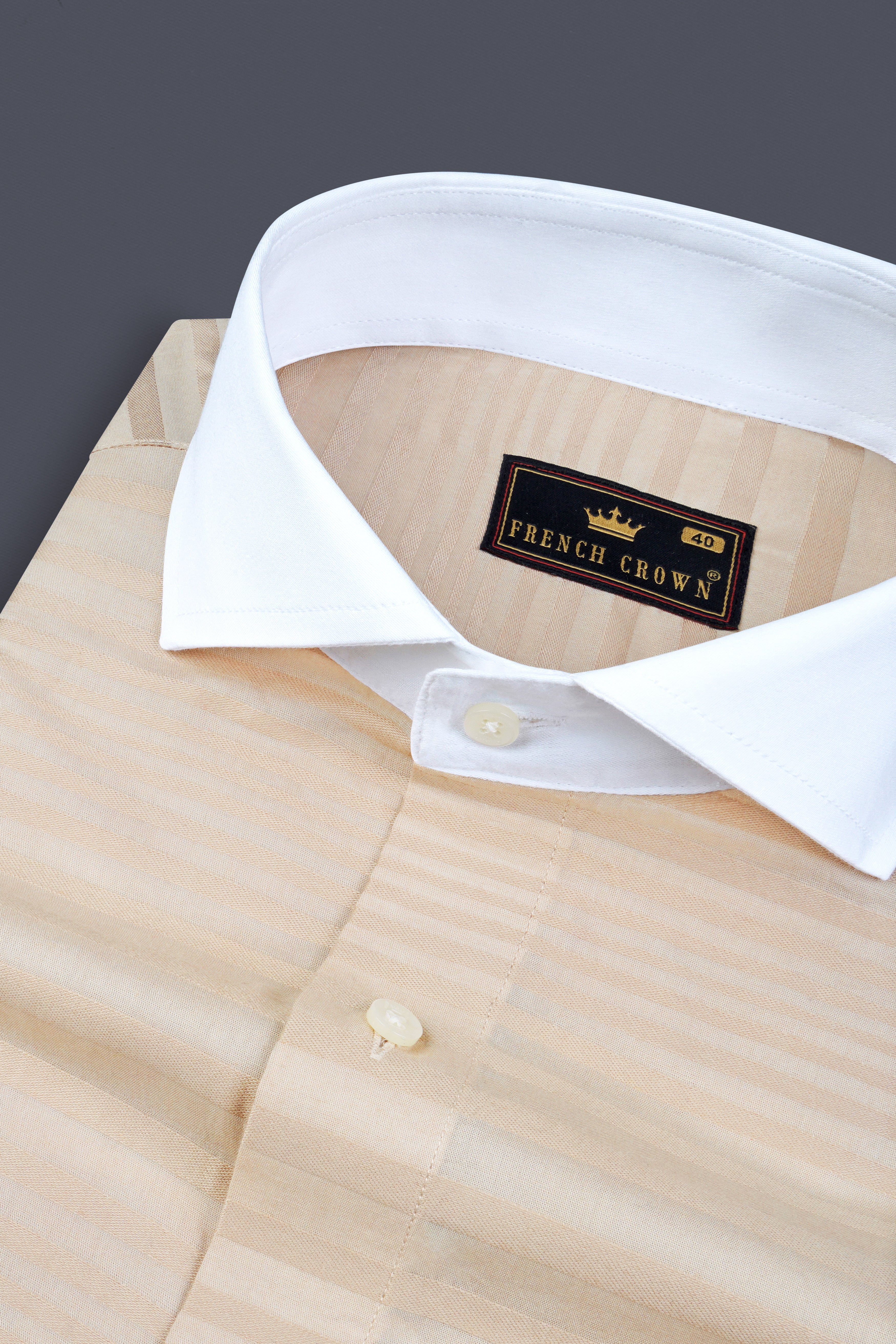 Wafer Cream Striped Dobby Textured Premium Cotton Shirt