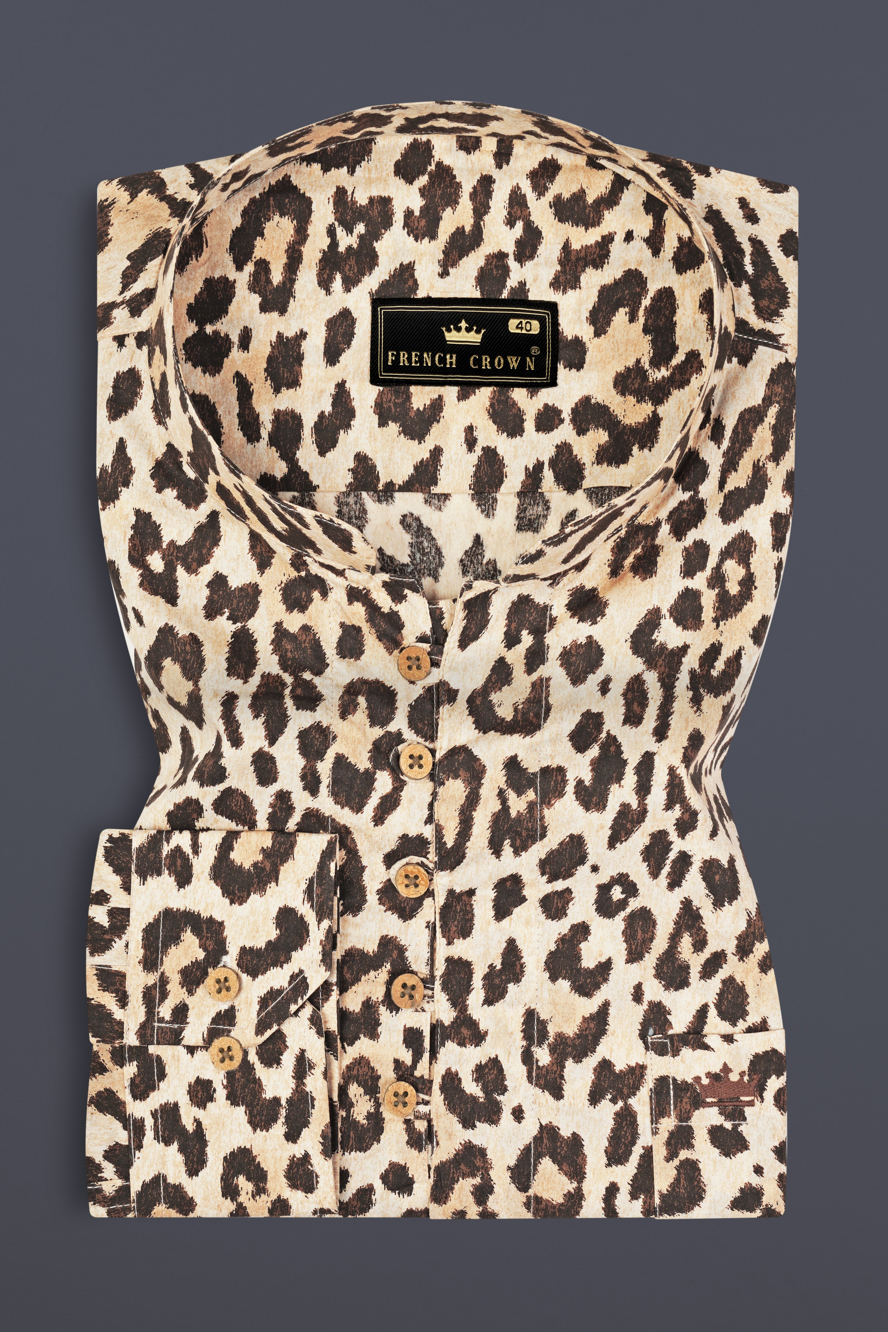 Antique Cream And Birch Brown Cheetah Printed Giza Cotton Kurta Shirt