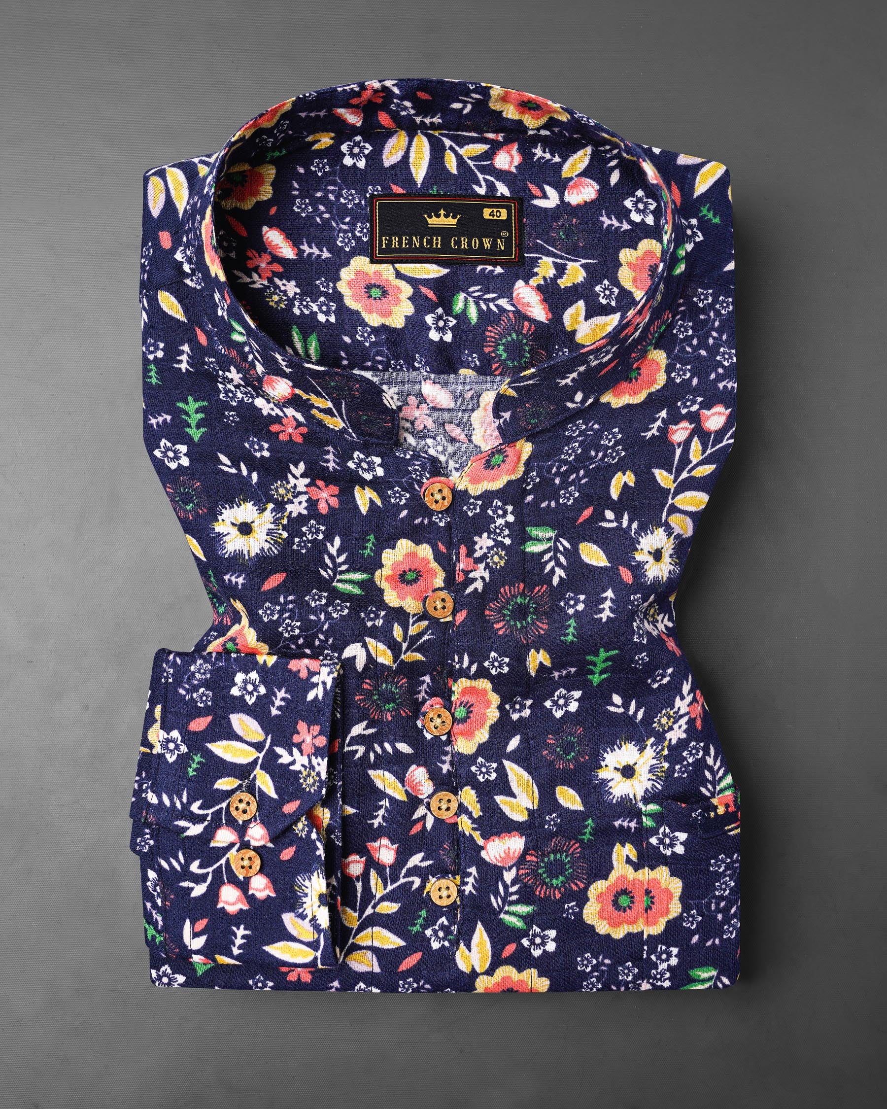 Wheatfield Beige Multicolour Leaves Printed Luxurious Linen ShirtWheatfield Beige Multicolour Leaves Printed Luxurious Linen Shirt