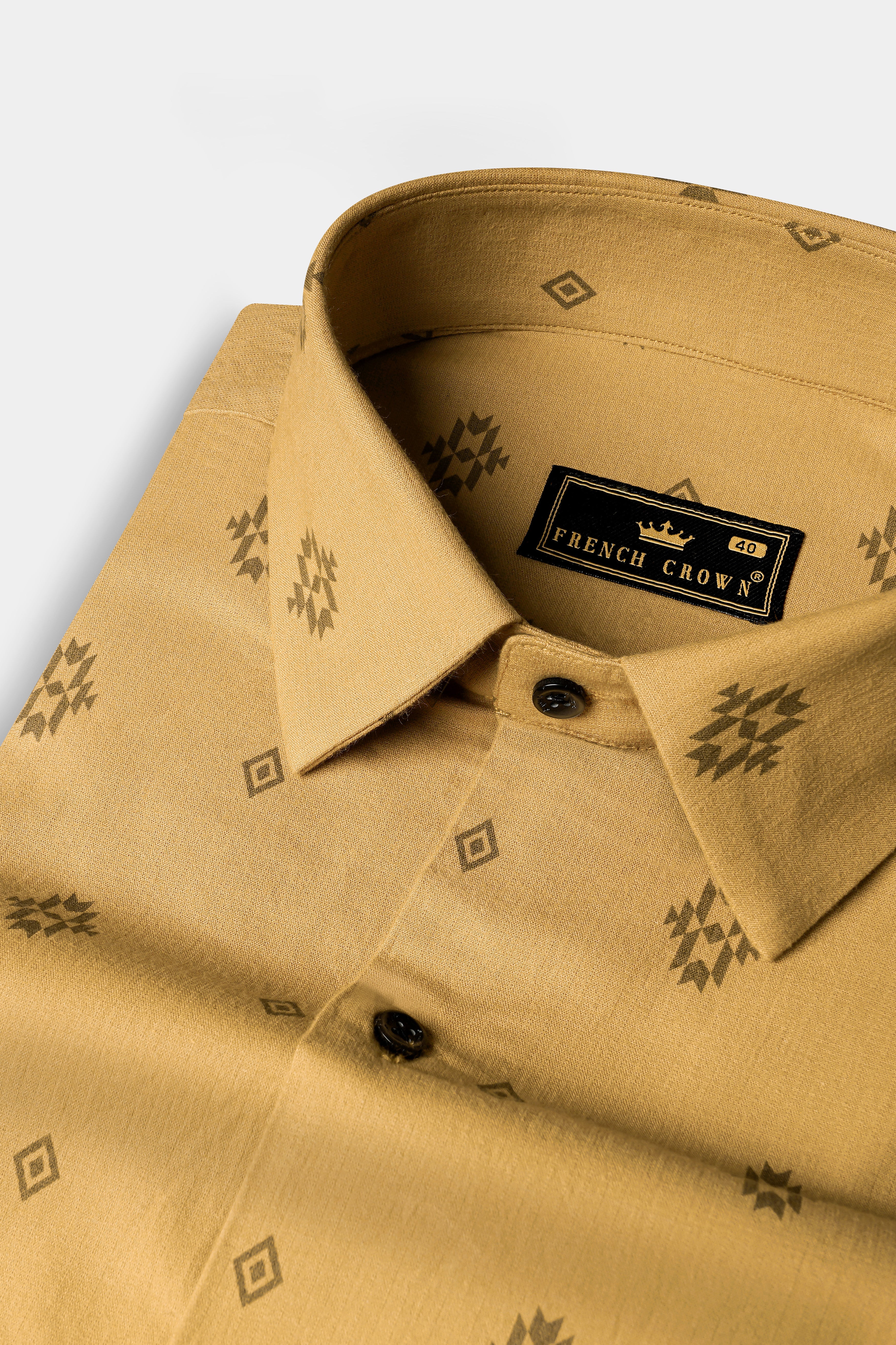 Espresso Maroon With Desert Yellow Printed Soft Tencel Shirt