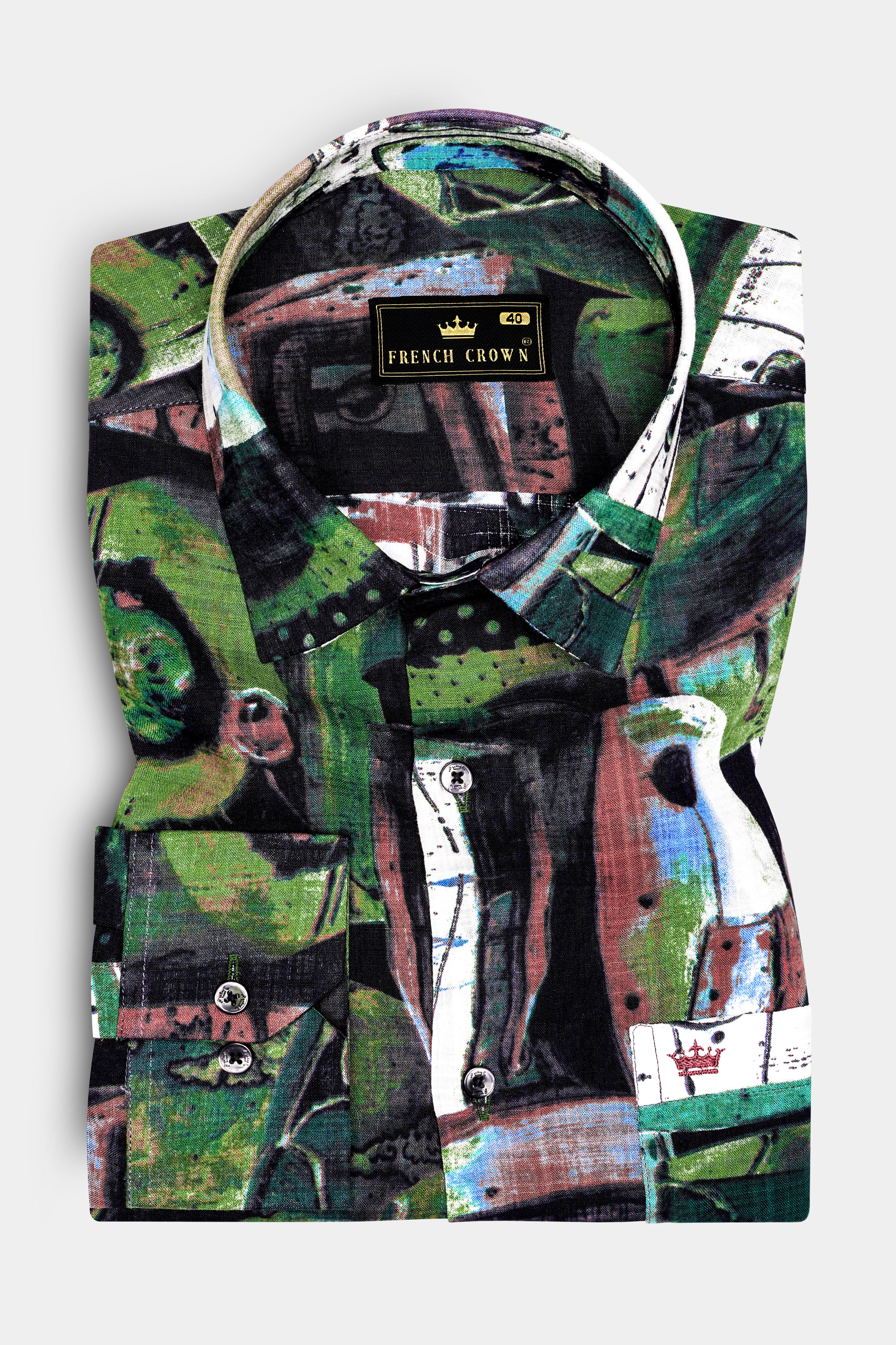 Fuscous Green and Black Striped Dobby Textured Giza Cotton Shirt