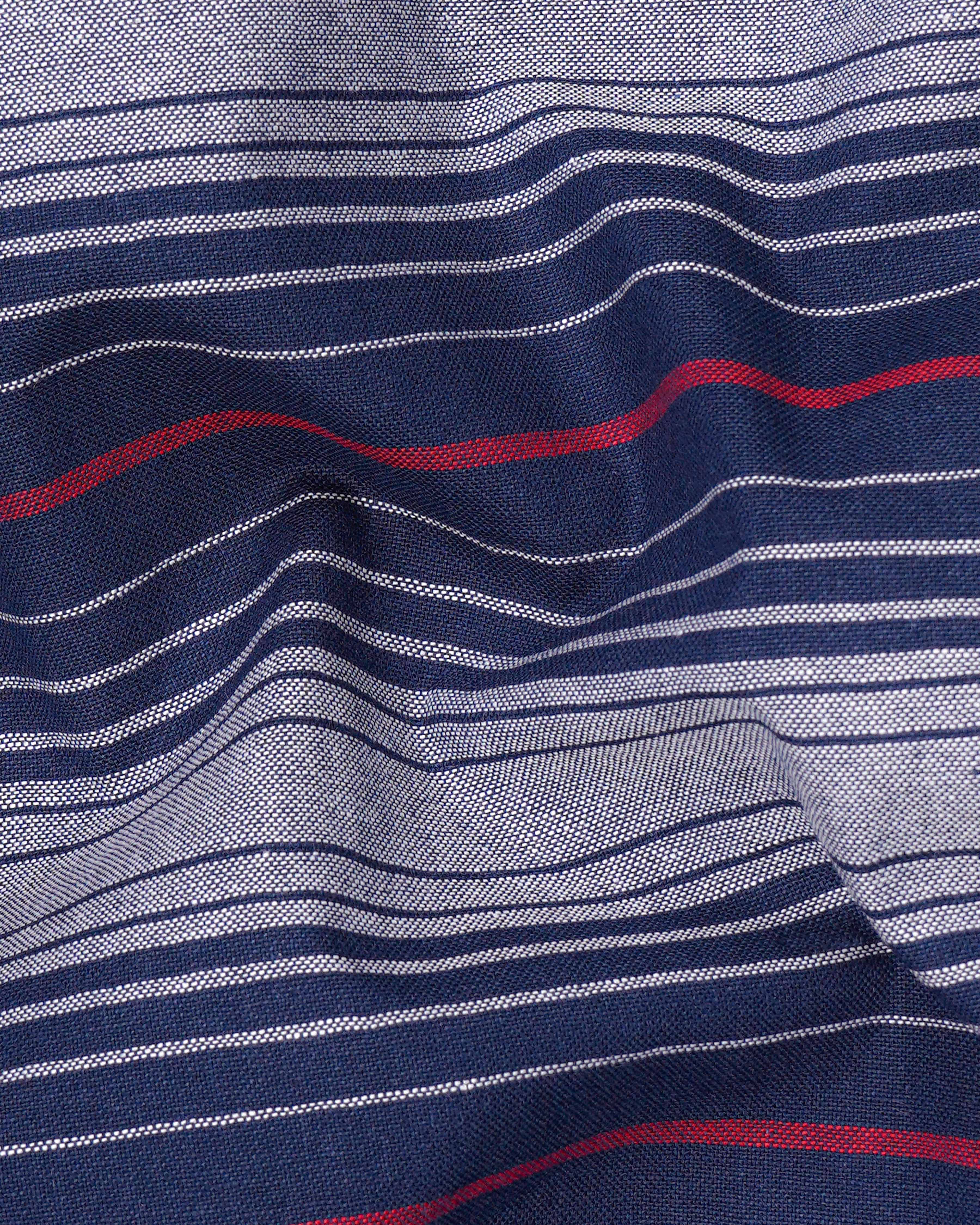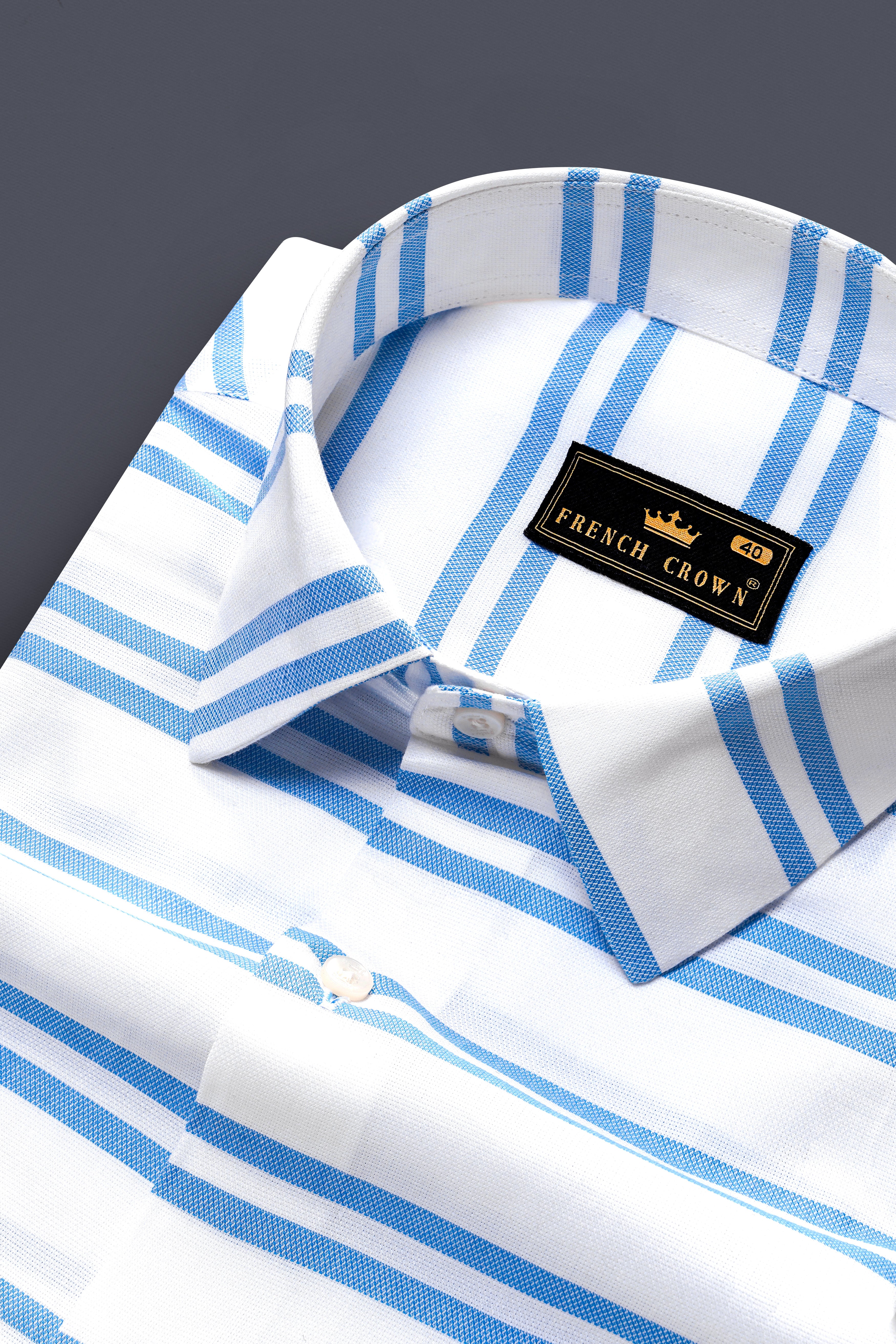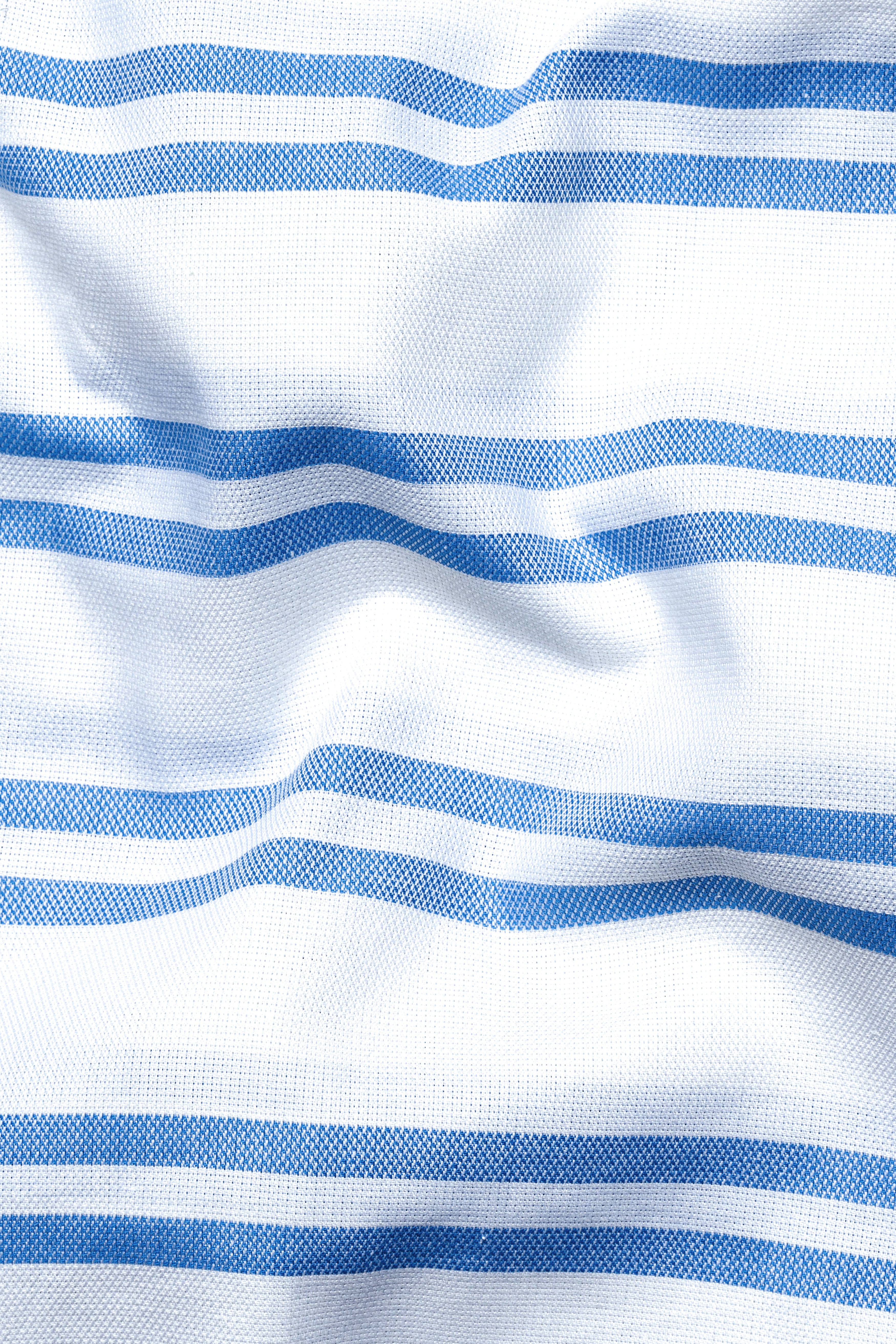 Cyprus Sea Blue with Bright White Striped Herringbone Premium Cotton Shirt