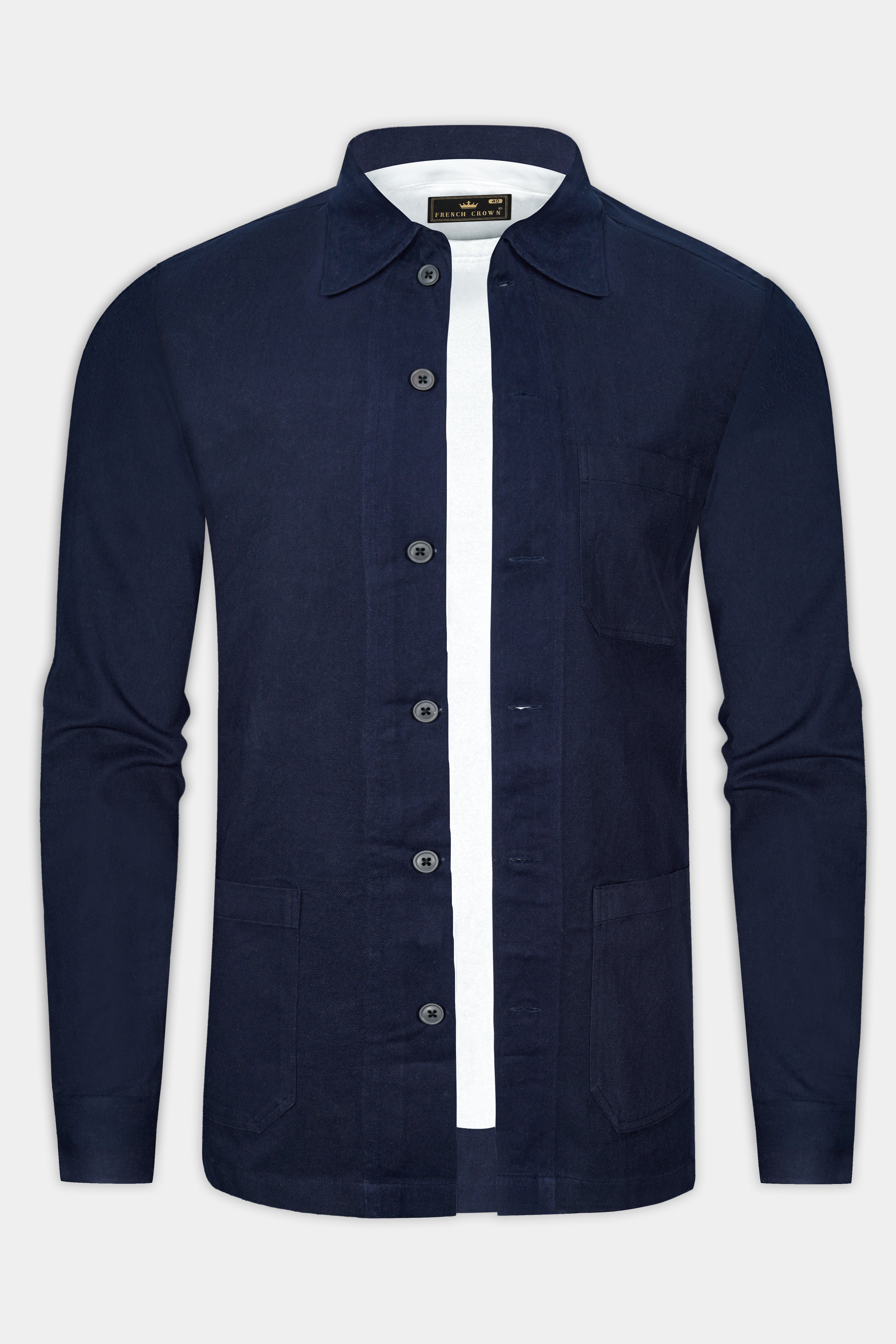 Midnight Blue Solid Heavyweight Twill Designer Overshirt/shacketMidnight Blue Solid Heavyweight Twill Designer Overshirt/shacket