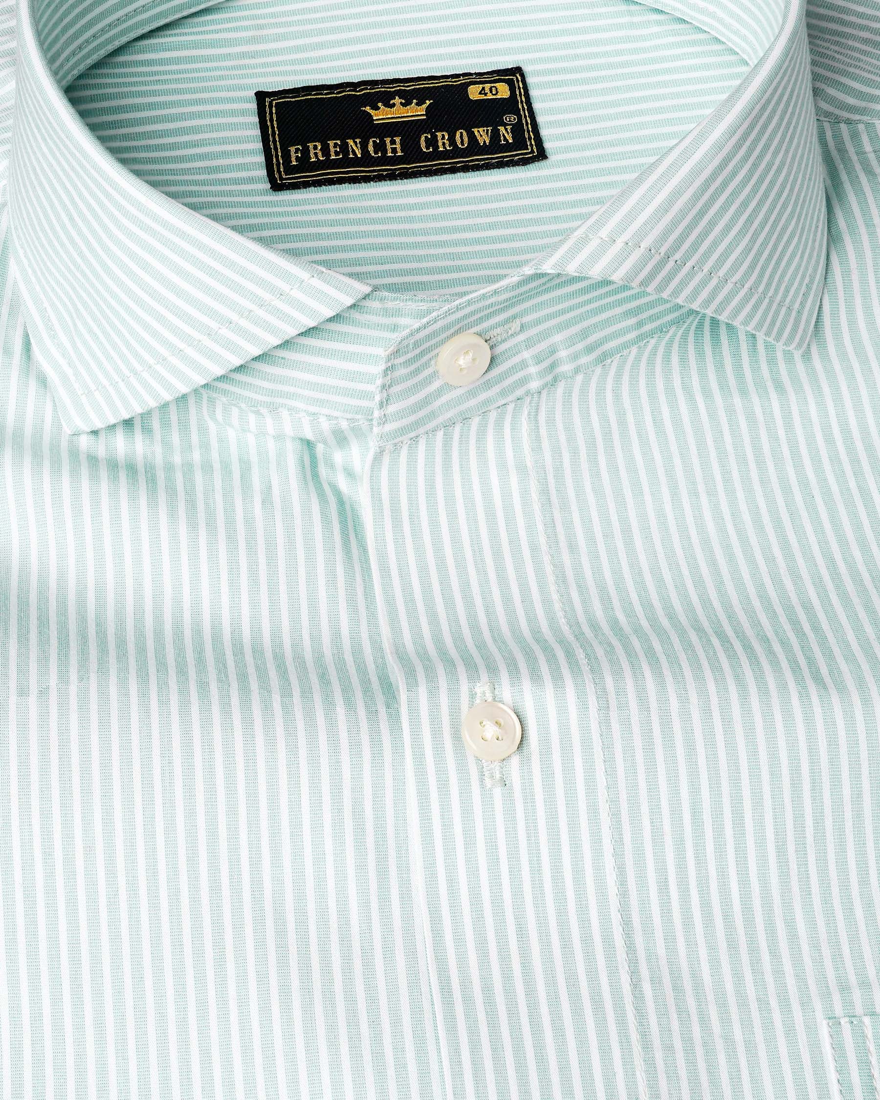 Surf Crest Light Green with White Pinstriped Premium Cotton Shirt