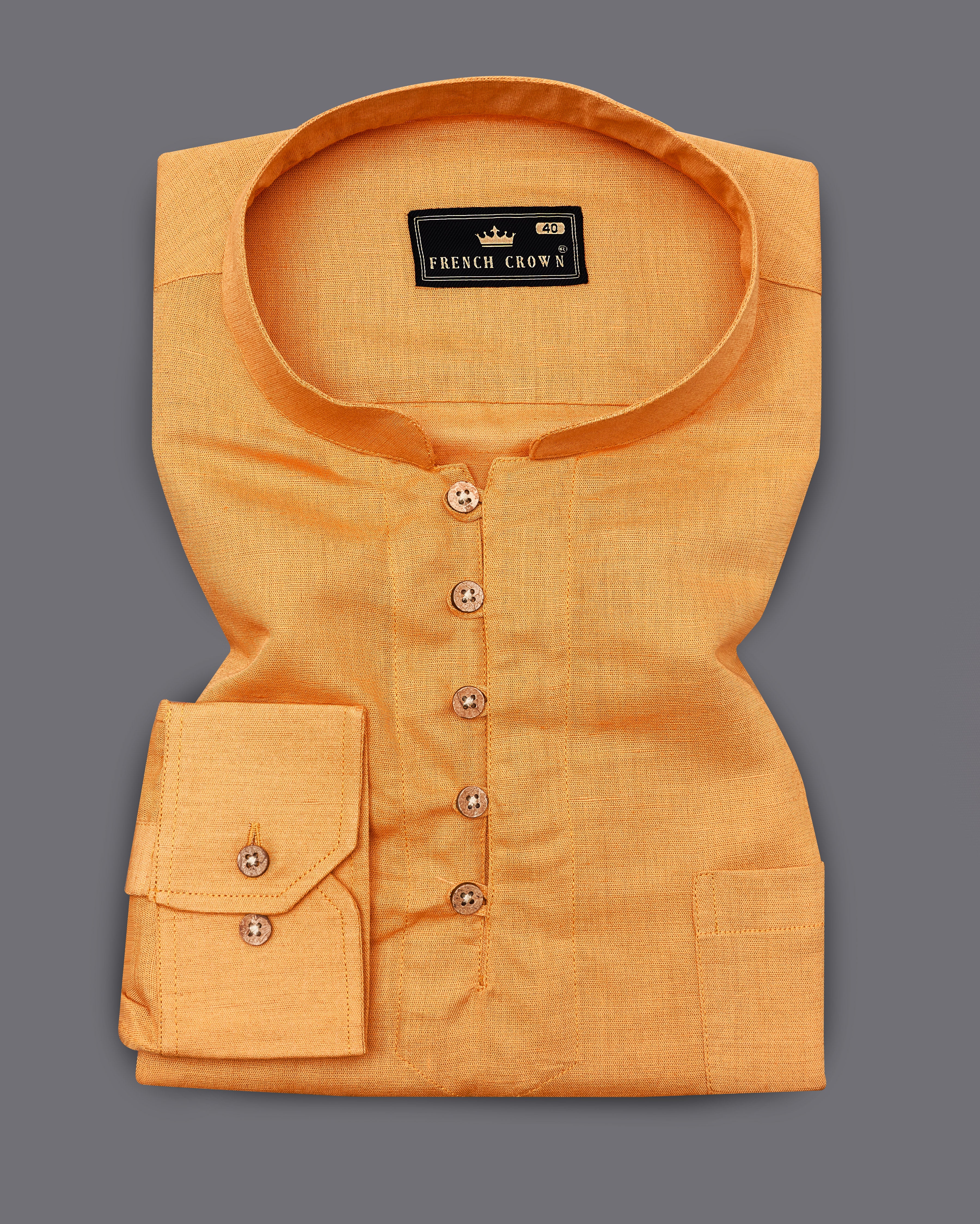 Bright White Collarless Luxurious Linen ShirtBright White Collarless Luxurious Linen Shirt