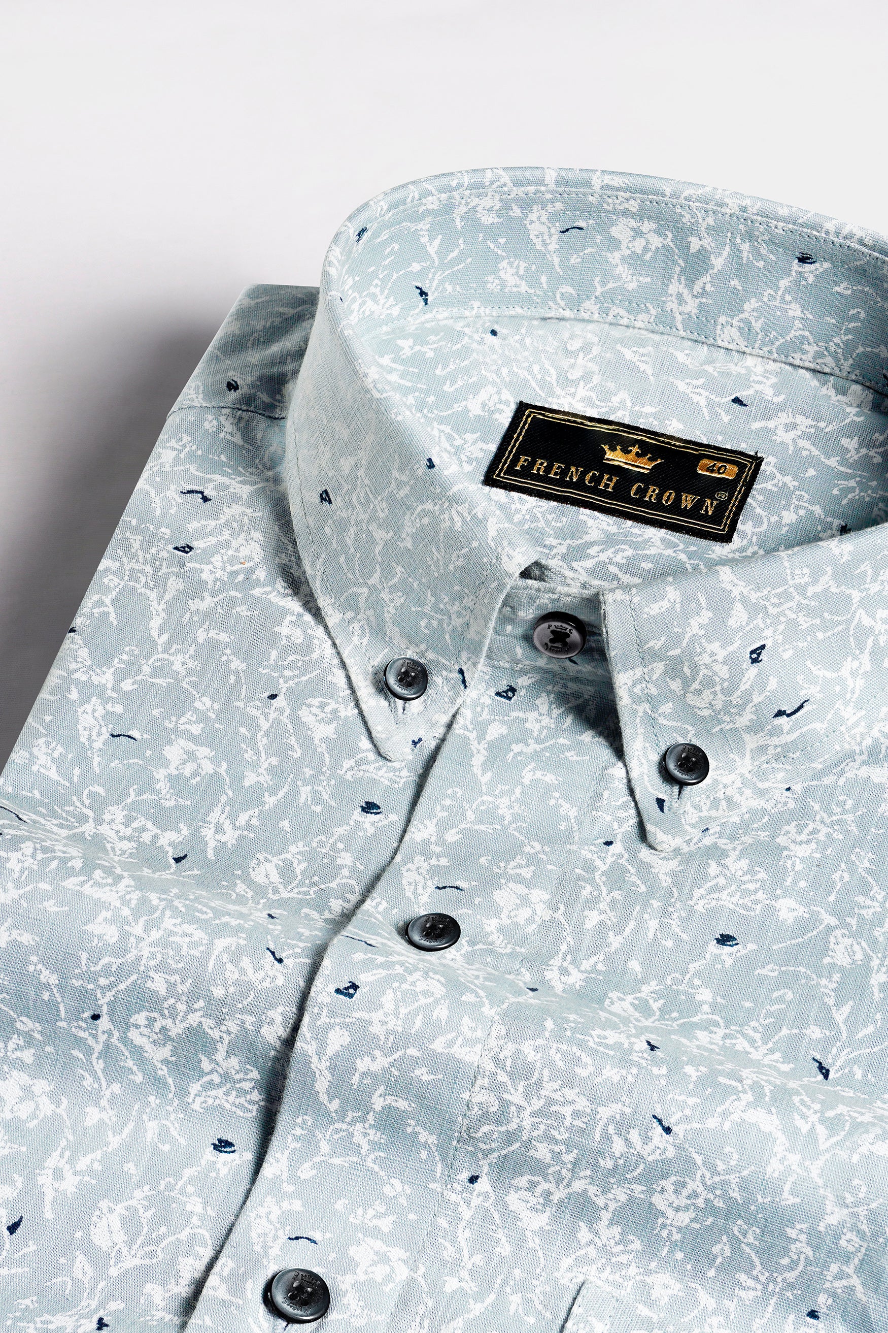 Faded Blue Floral Printed Luxurious Linen Kurta Shirt
