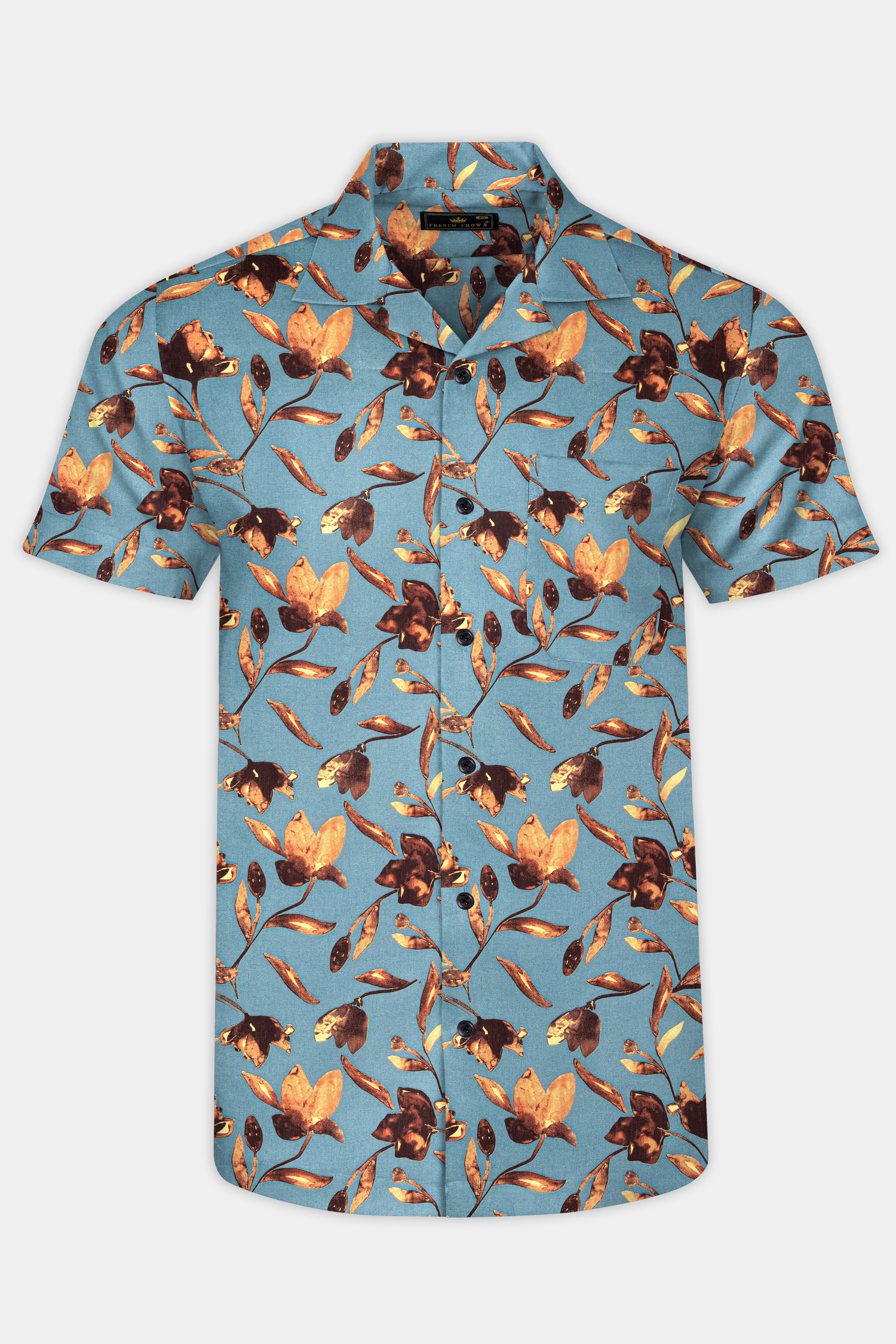 Cascade Blue and Tangerine Orange Floral Printed Subtle Sheen Super Soft Premium Cotton ShirtCascade Blue and Tangerine Orange Floral Printed Subtle Sheen Super Soft Premium Cotton Shirt