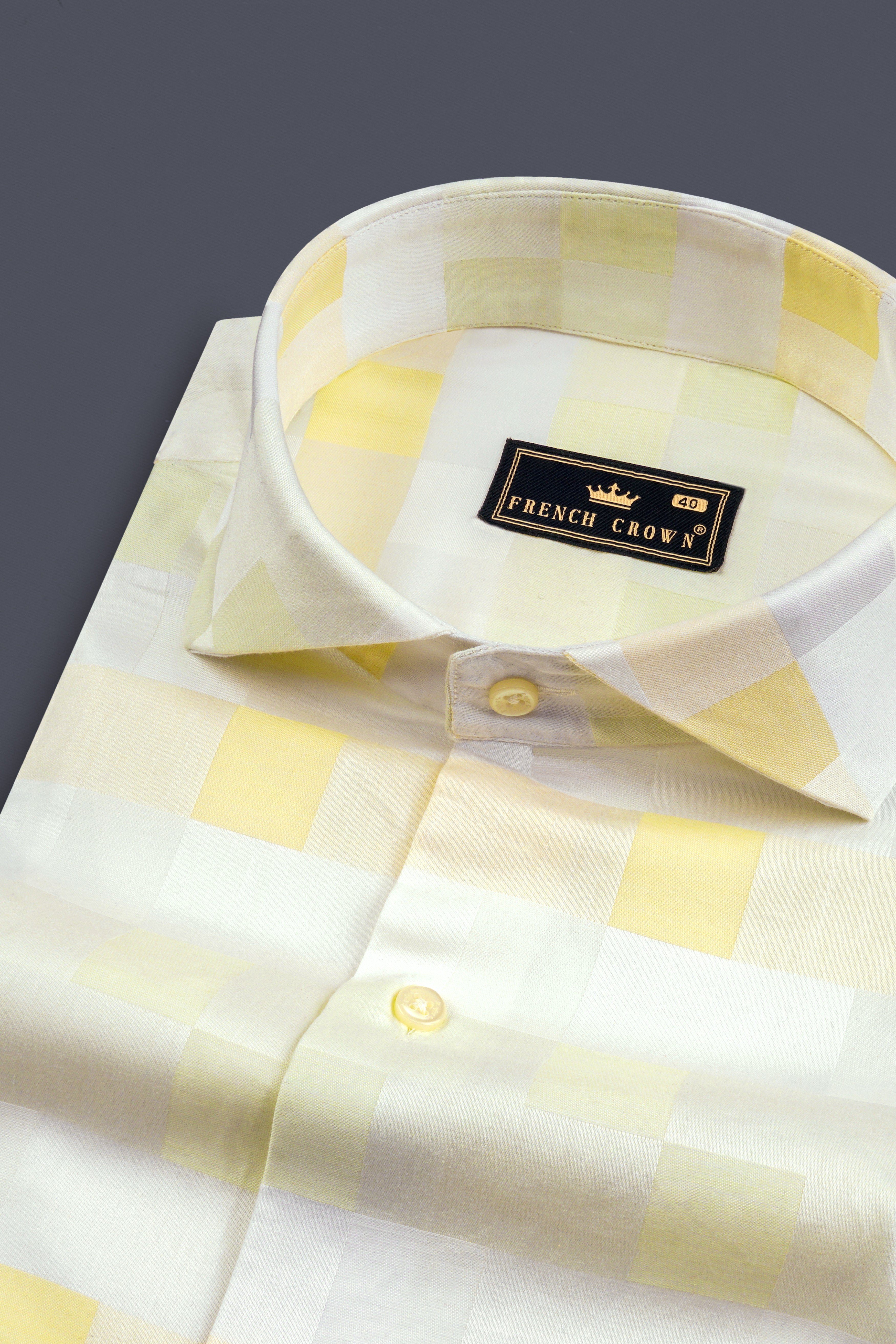 Eggshell Cream with Primrose Yellow Jacquard Textured Premium Cotton Shirt