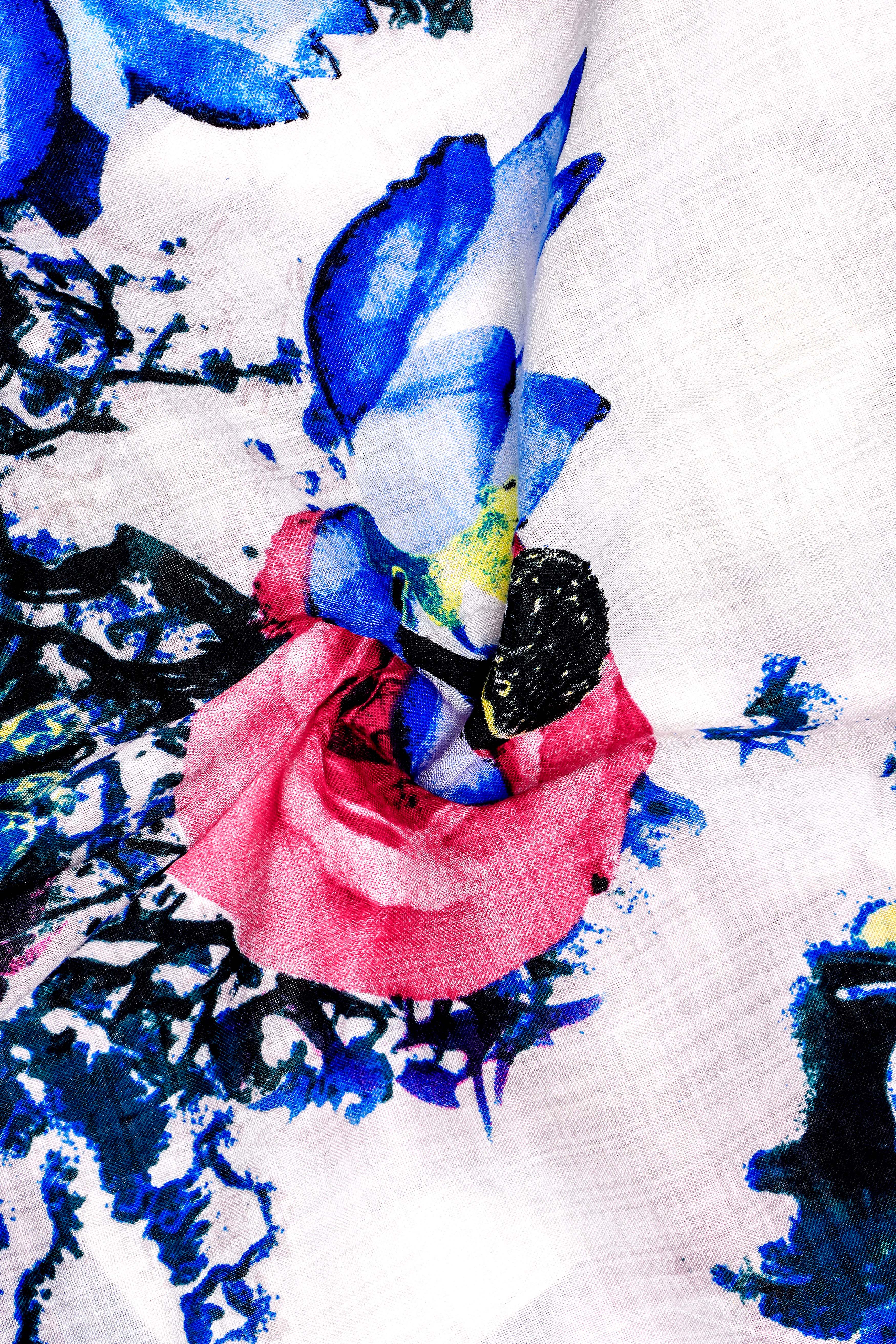 Bright White with Blue Patch Work Dobby Textured Giza Cotton Designer ShirtBright White with Blue Patch Work Dobby Textured Giza Cotton Designer Shirt