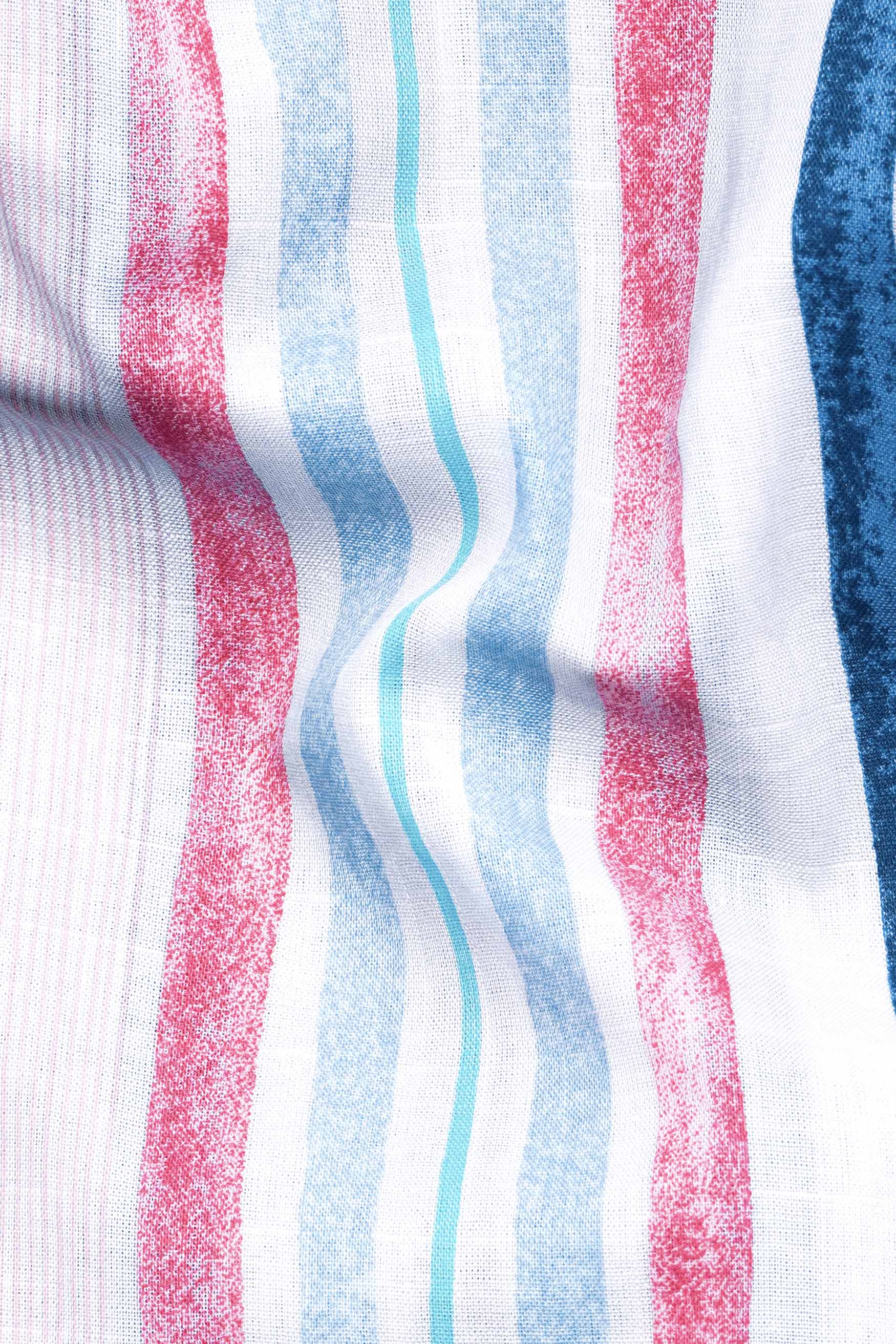 Bright White with Yale Blue and Cerise Pink Multicolour Striped Chambray ShirtBright White with Yale Blue and Cerise Pink Multicolour Striped Chambray Shirt