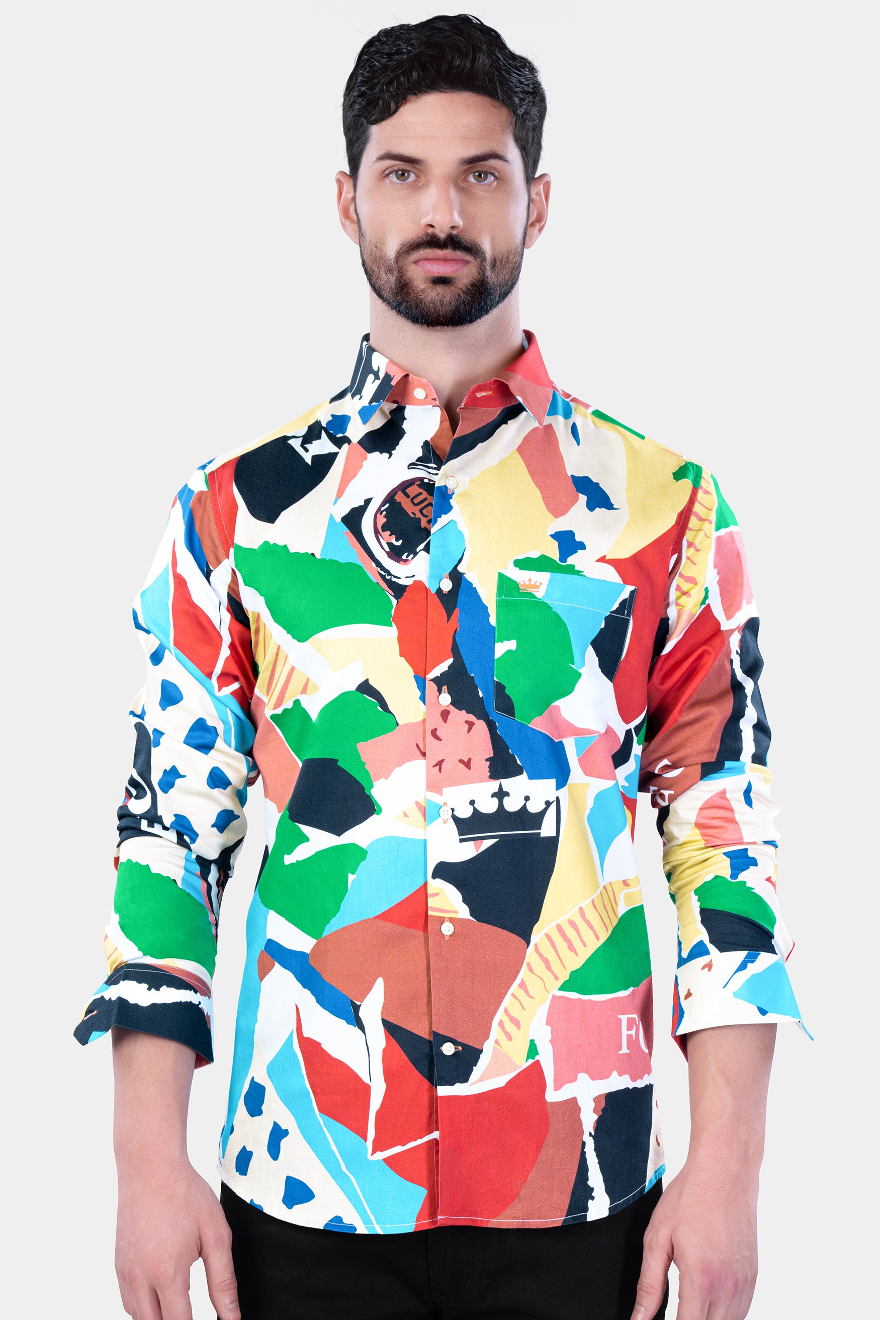 Montecarlo Green and Prussian Blue Block Printed Twill Premium Cotton Shirt