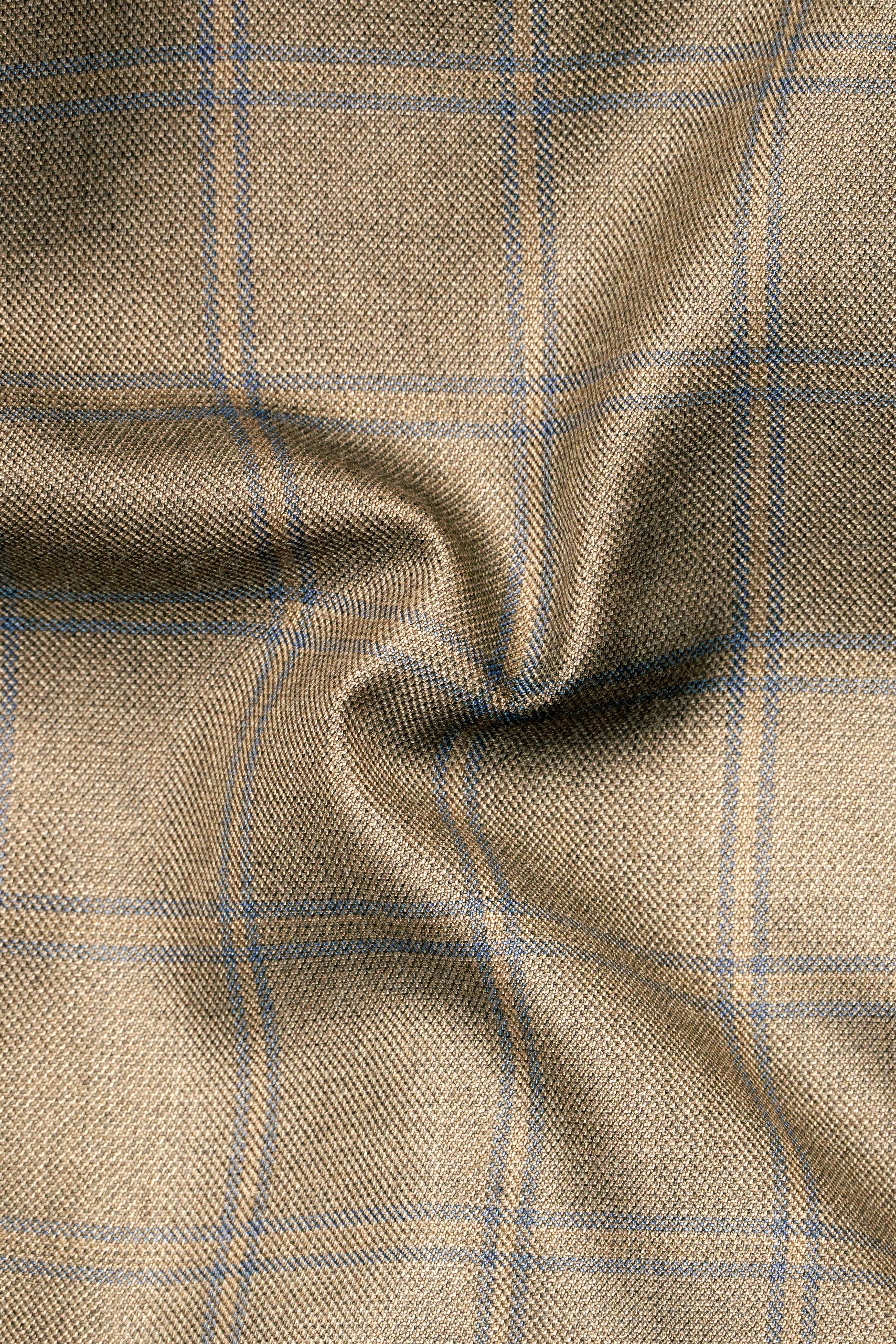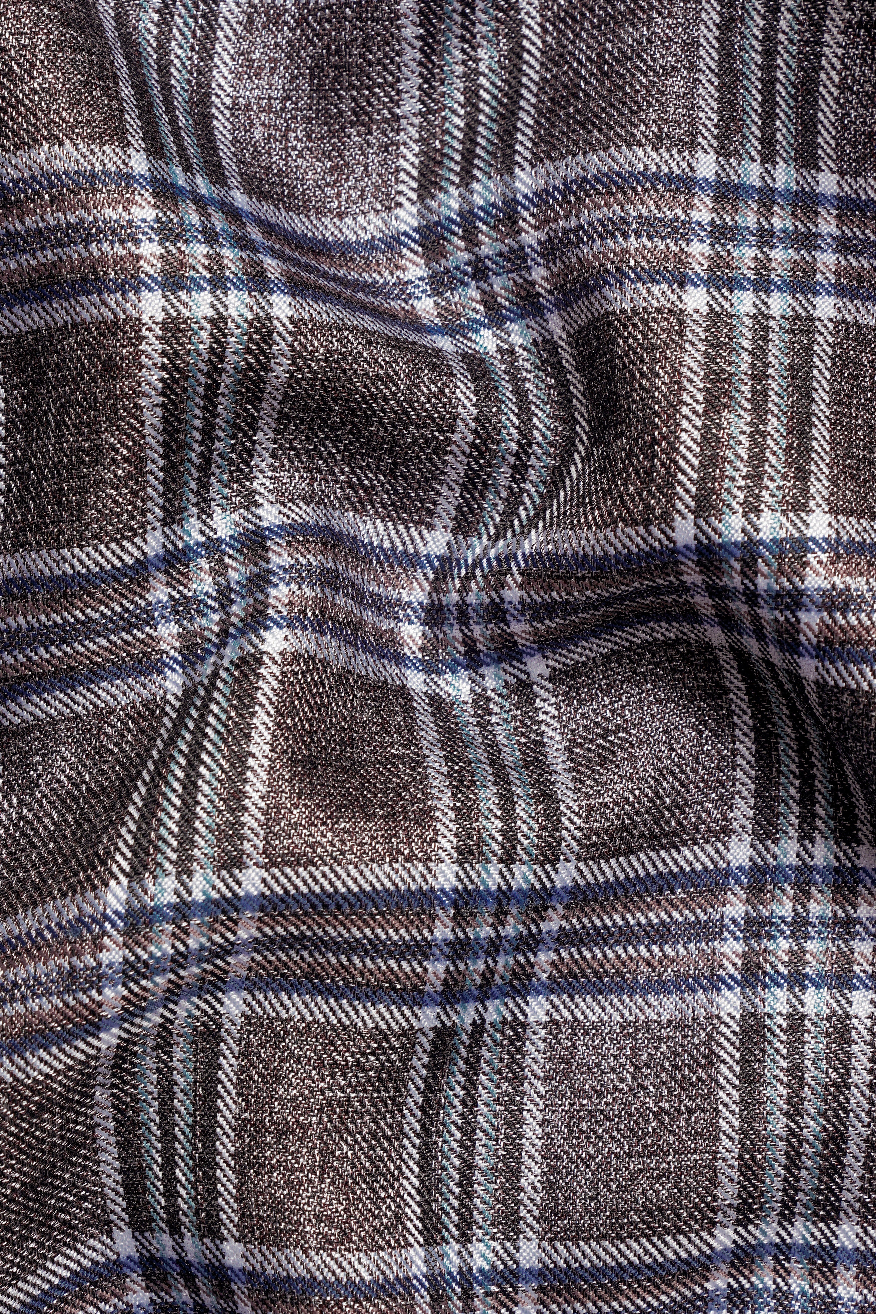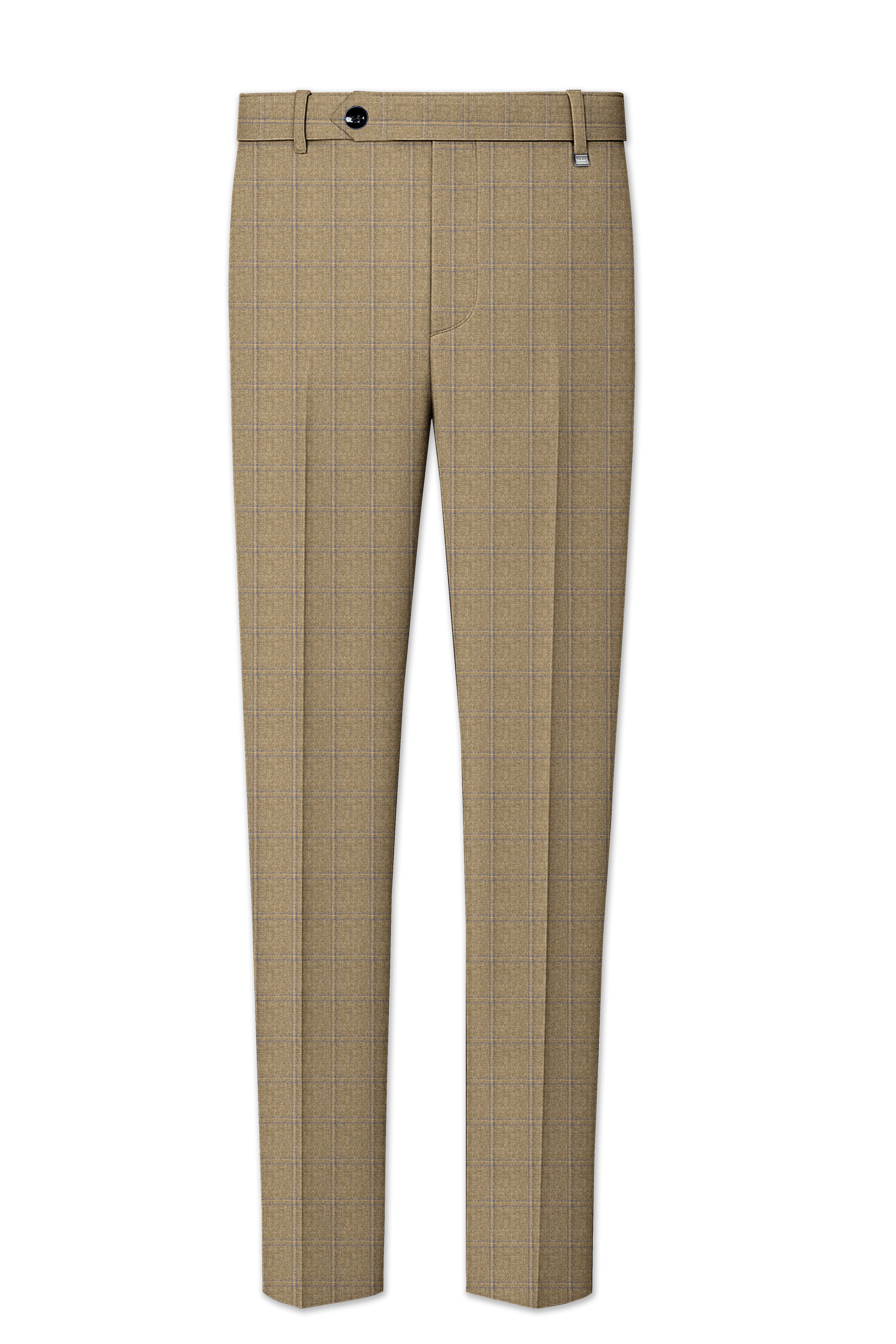 Fuscous Green and Bistre Brown Plaid Wool Rich Stretchable PantFuscous Green and Bistre Brown Plaid Wool Rich Stretchable Pant