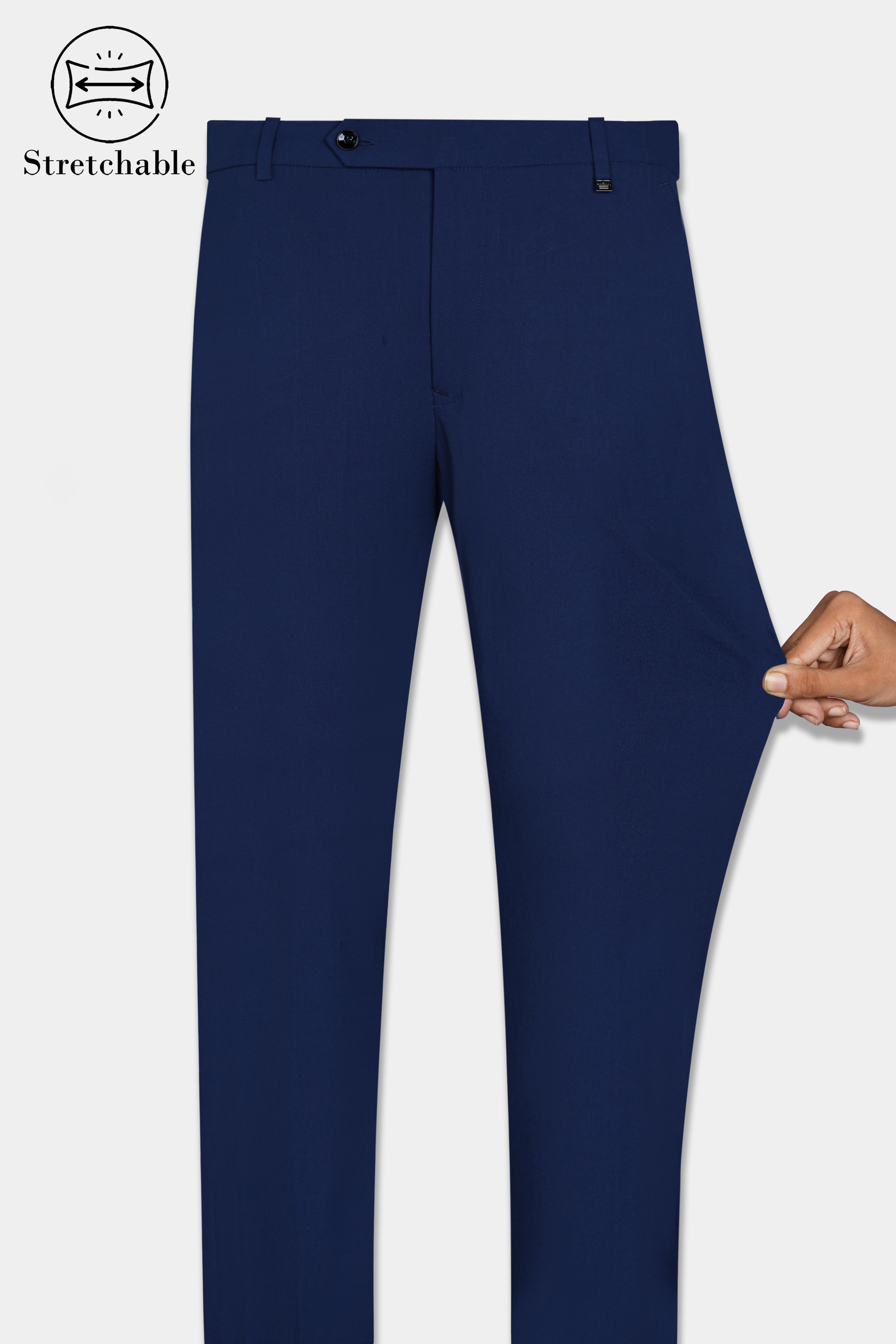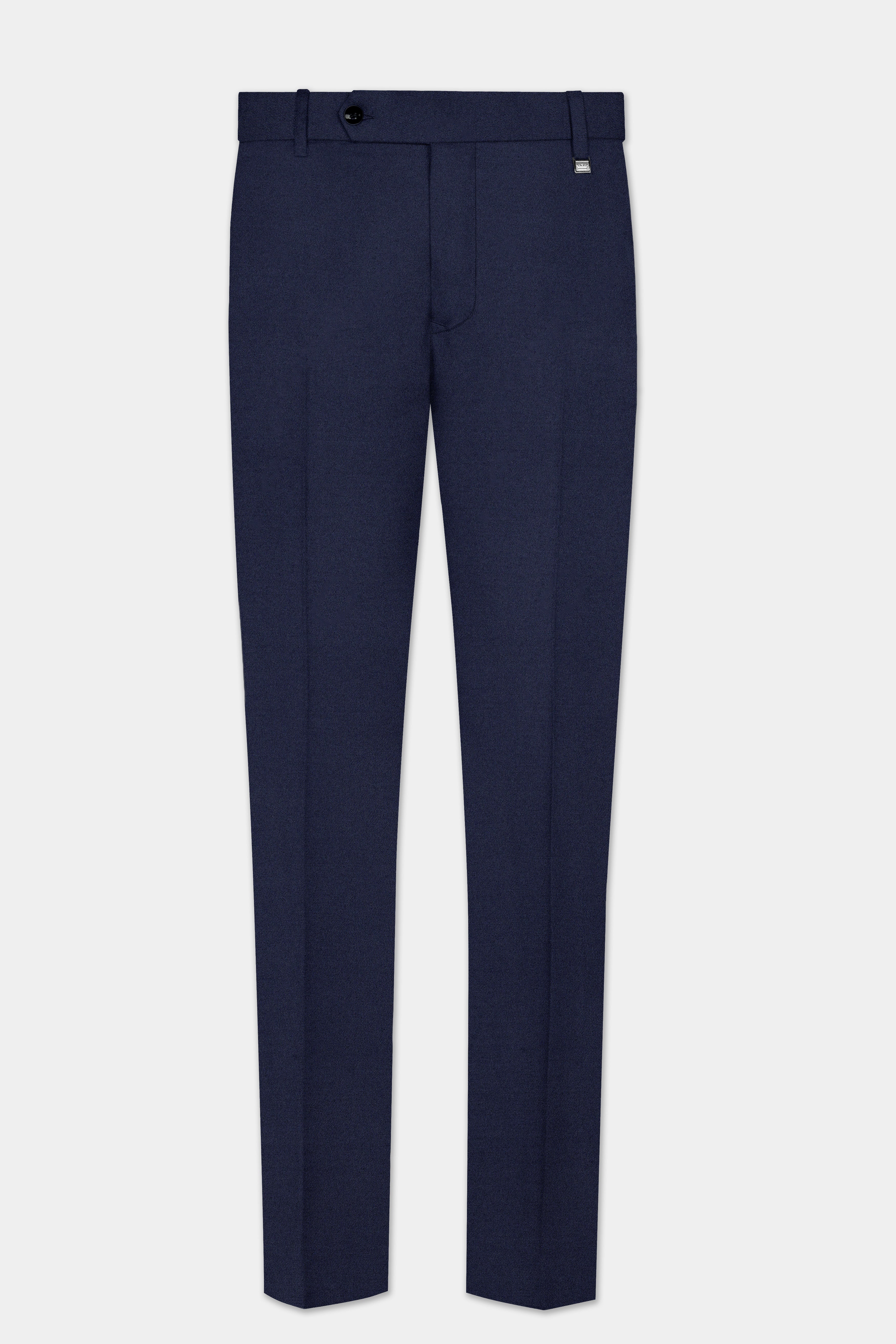 Midnight Blue Wool Rich Stretchable Waistband PantMidnight Blue Wool Rich Stretchable Waistband Pant