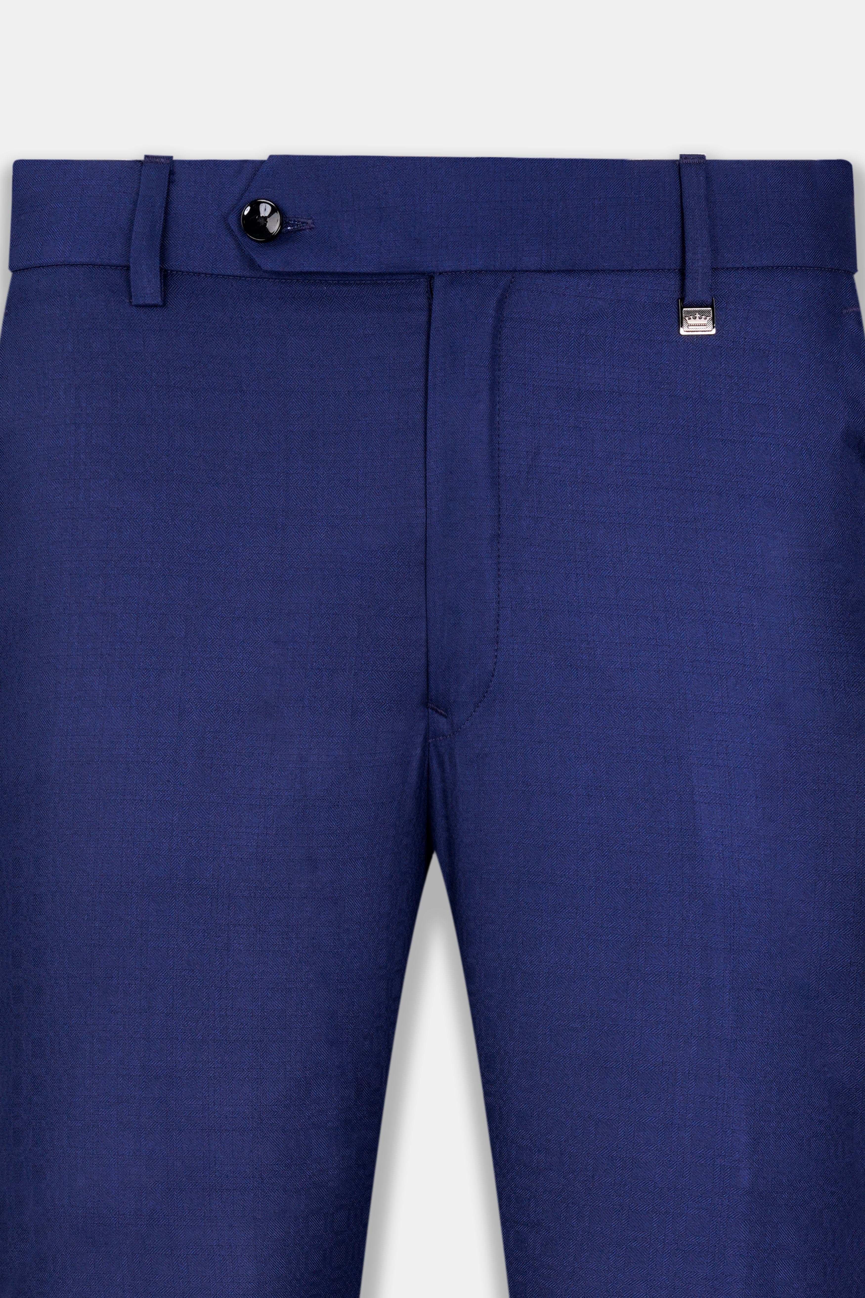 Cobalt Blue Checkered Wool Rich Stretchable Pant