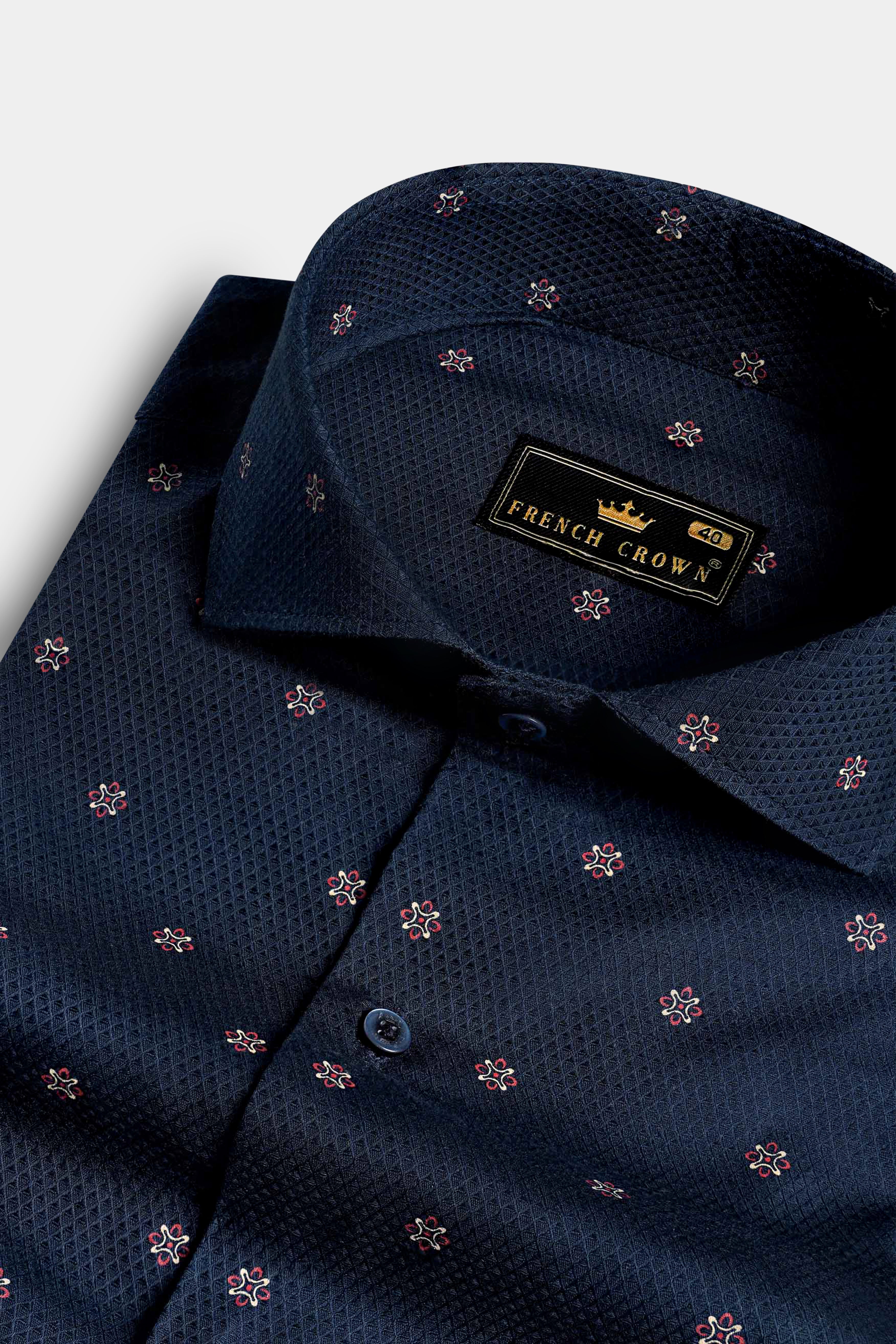 Haiti Blue Dobby Textured Premium Giza Cotton Shirt