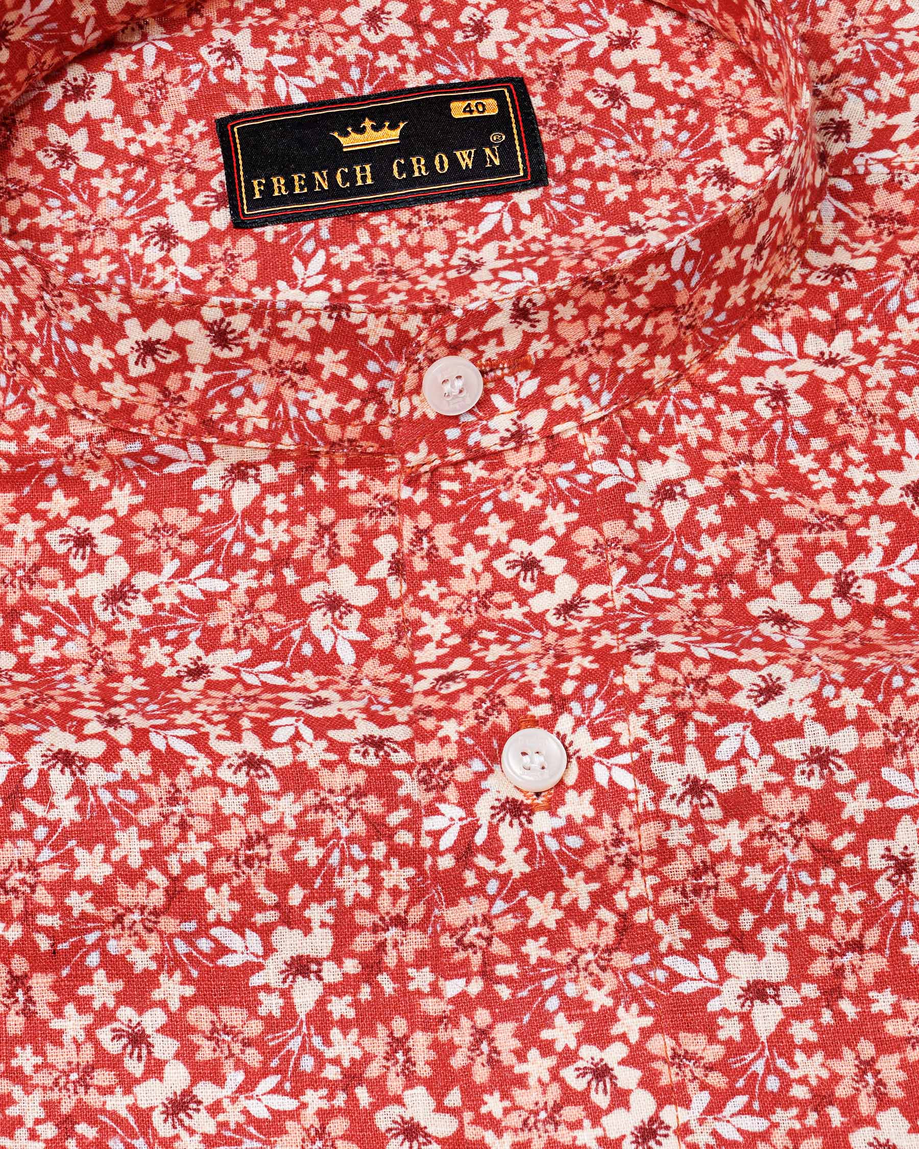 Flush Mahogany Red Ditzy Printed Luxurious Linen Shirt