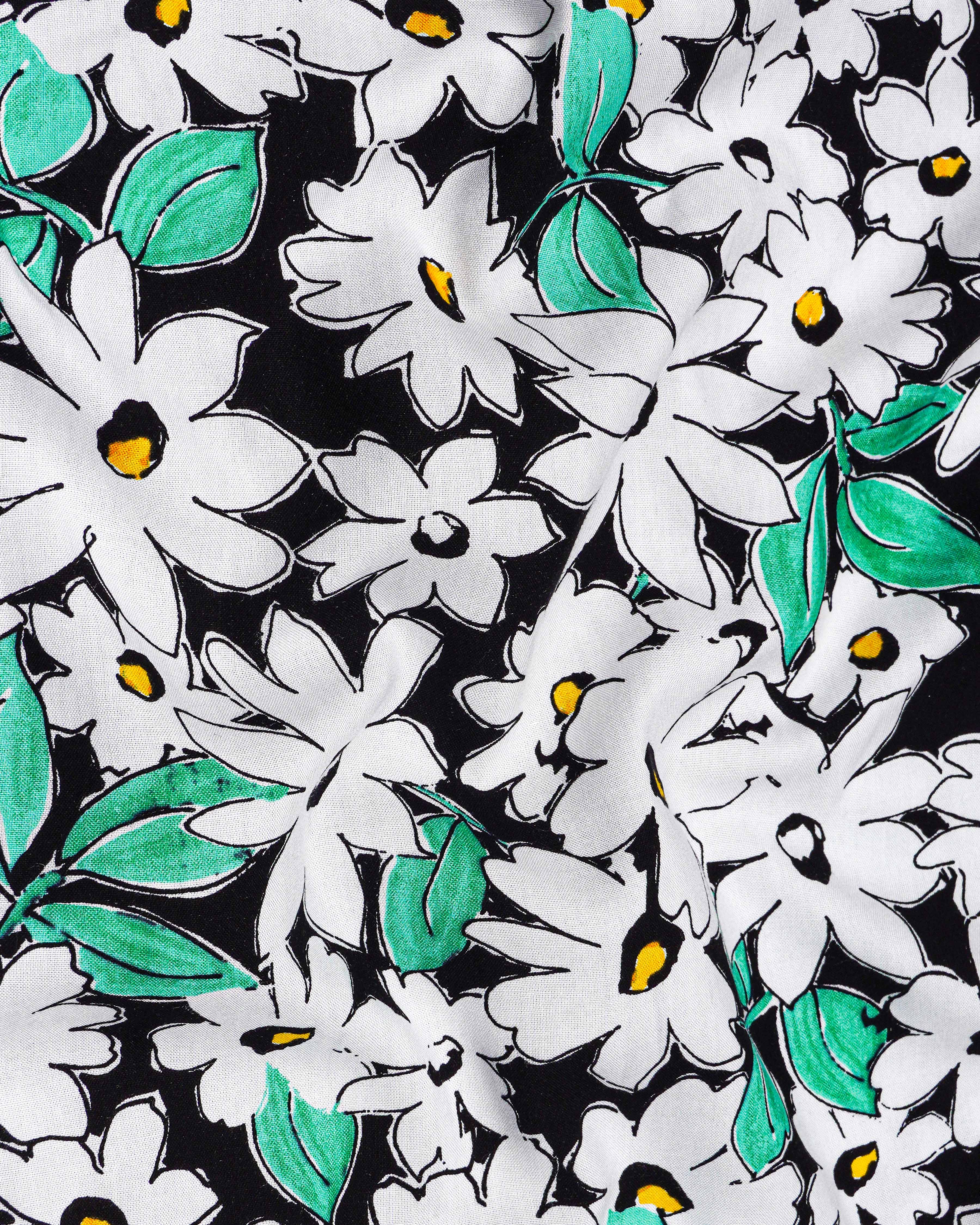 NoirBloom-Jade Black Micro Flower Printed Super Soft Premium Cotton Shirt