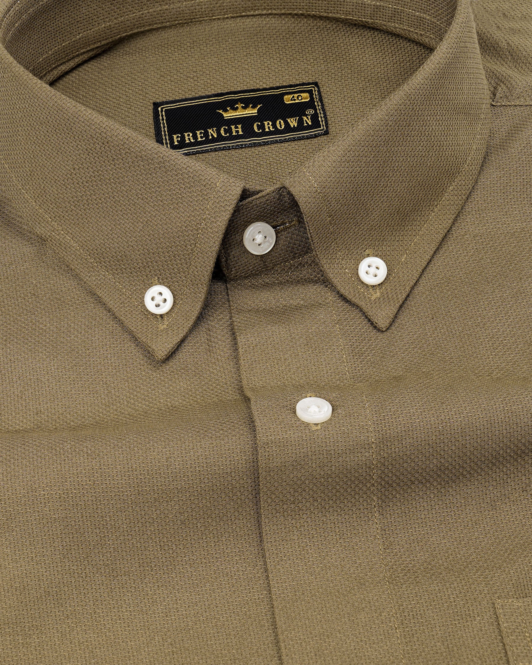 Dark Taupe Brown Dobby Textured Giza Cotton Shirt