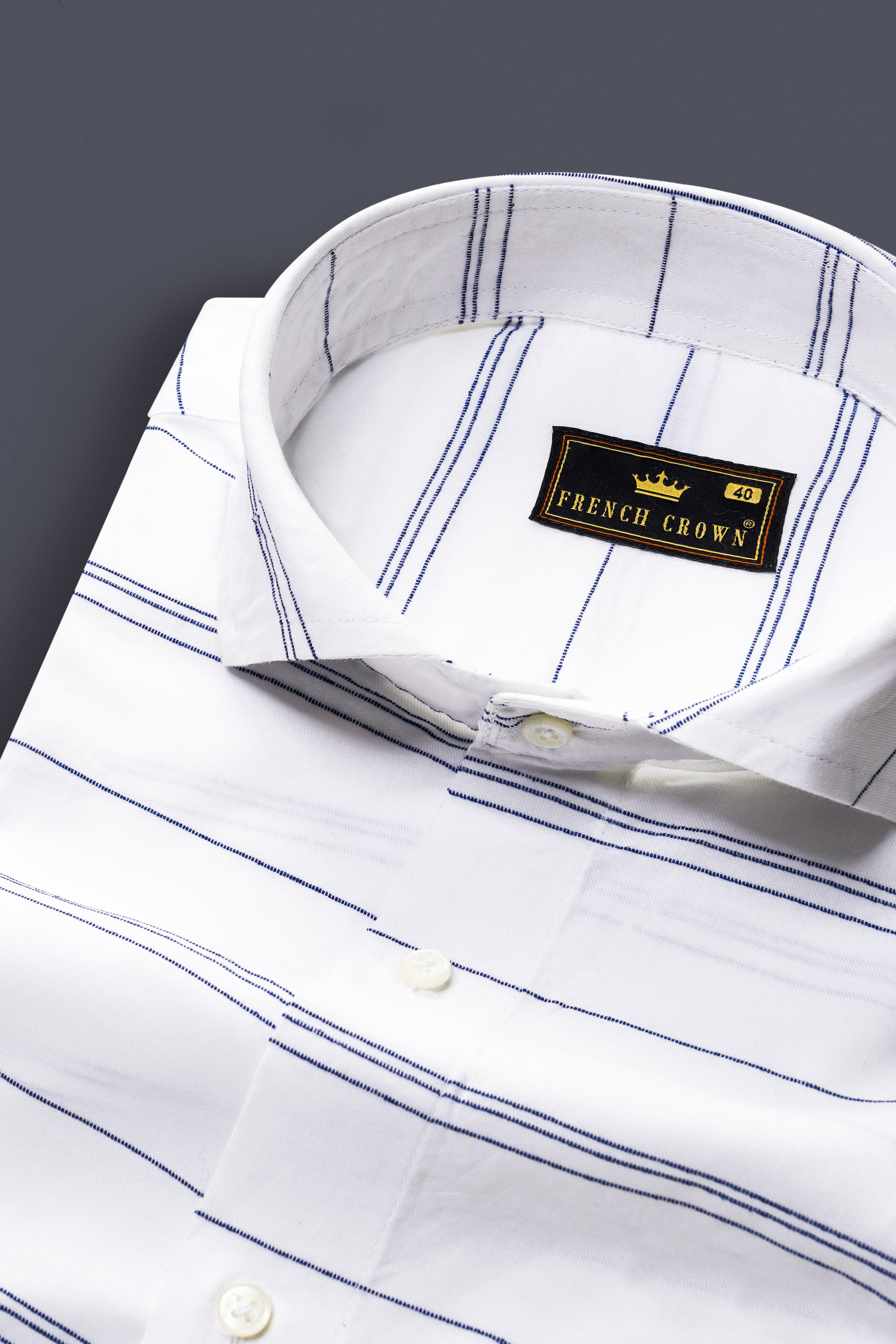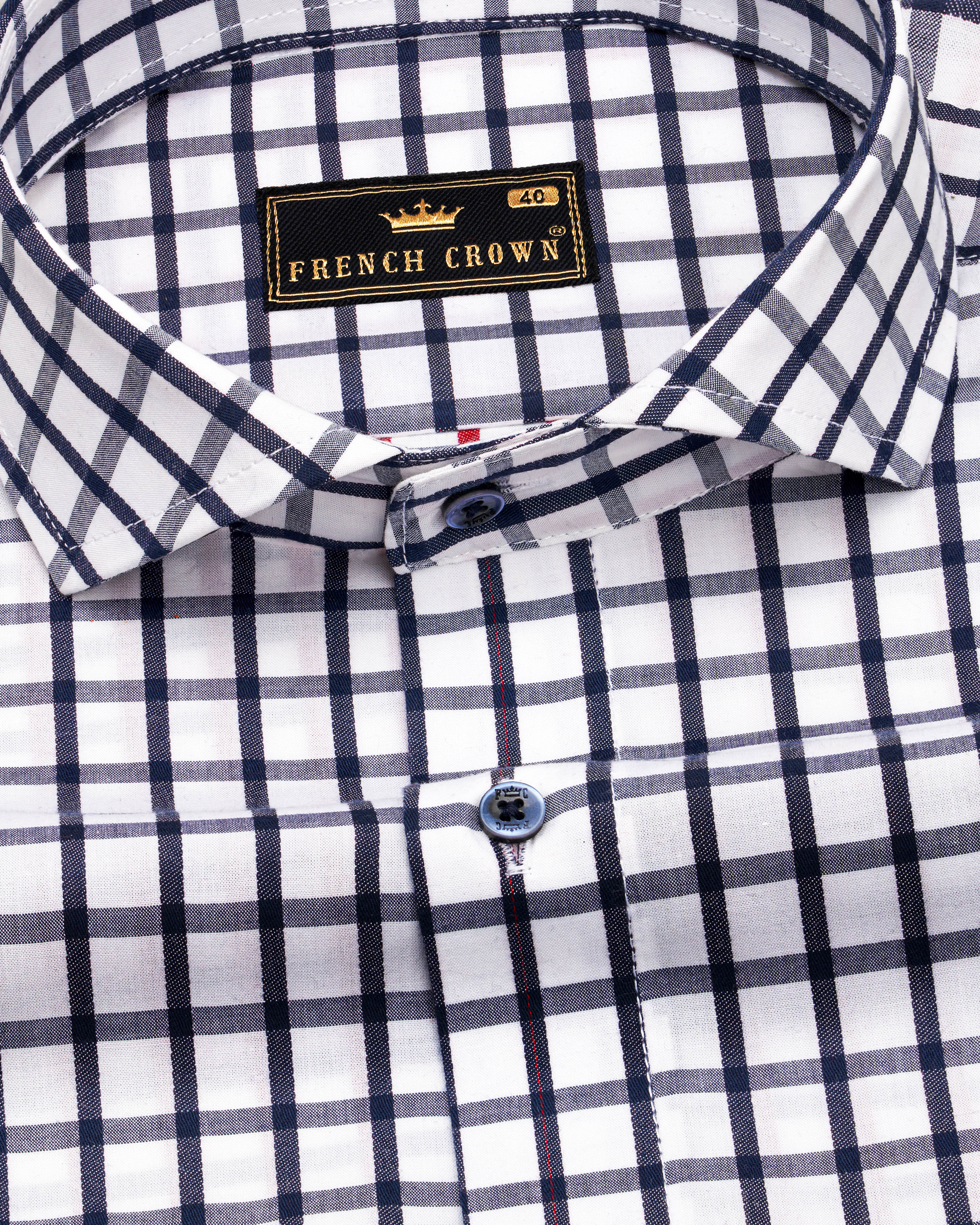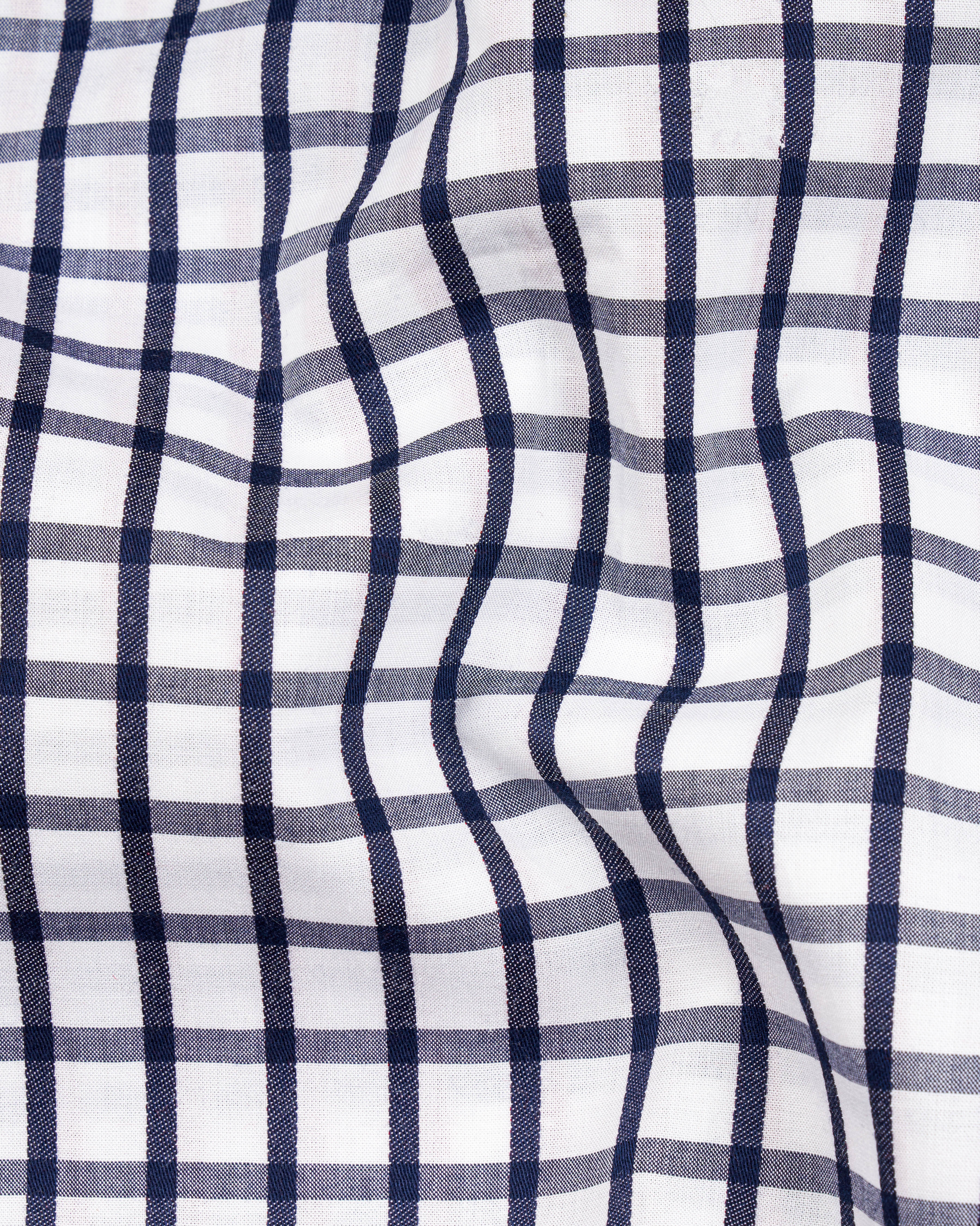 Bright White and Ebony Clay Blue Gingham Dobby Textured Premium Giza Cotton Shirt