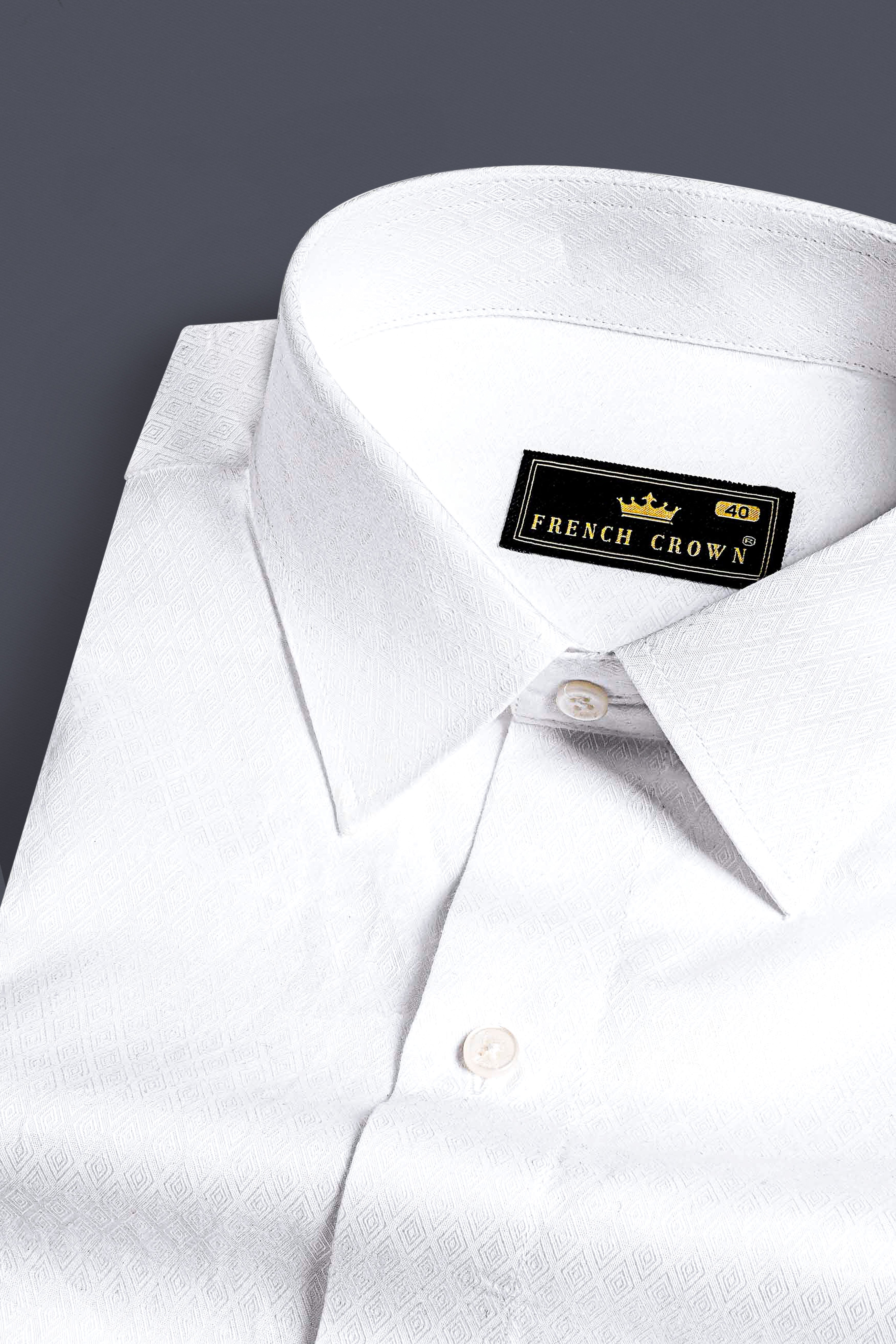 Bright White Dobby Textured Premium Giza Cotton Designer ShirtBright White Dobby Textured Premium Giza Cotton Designer Shirt