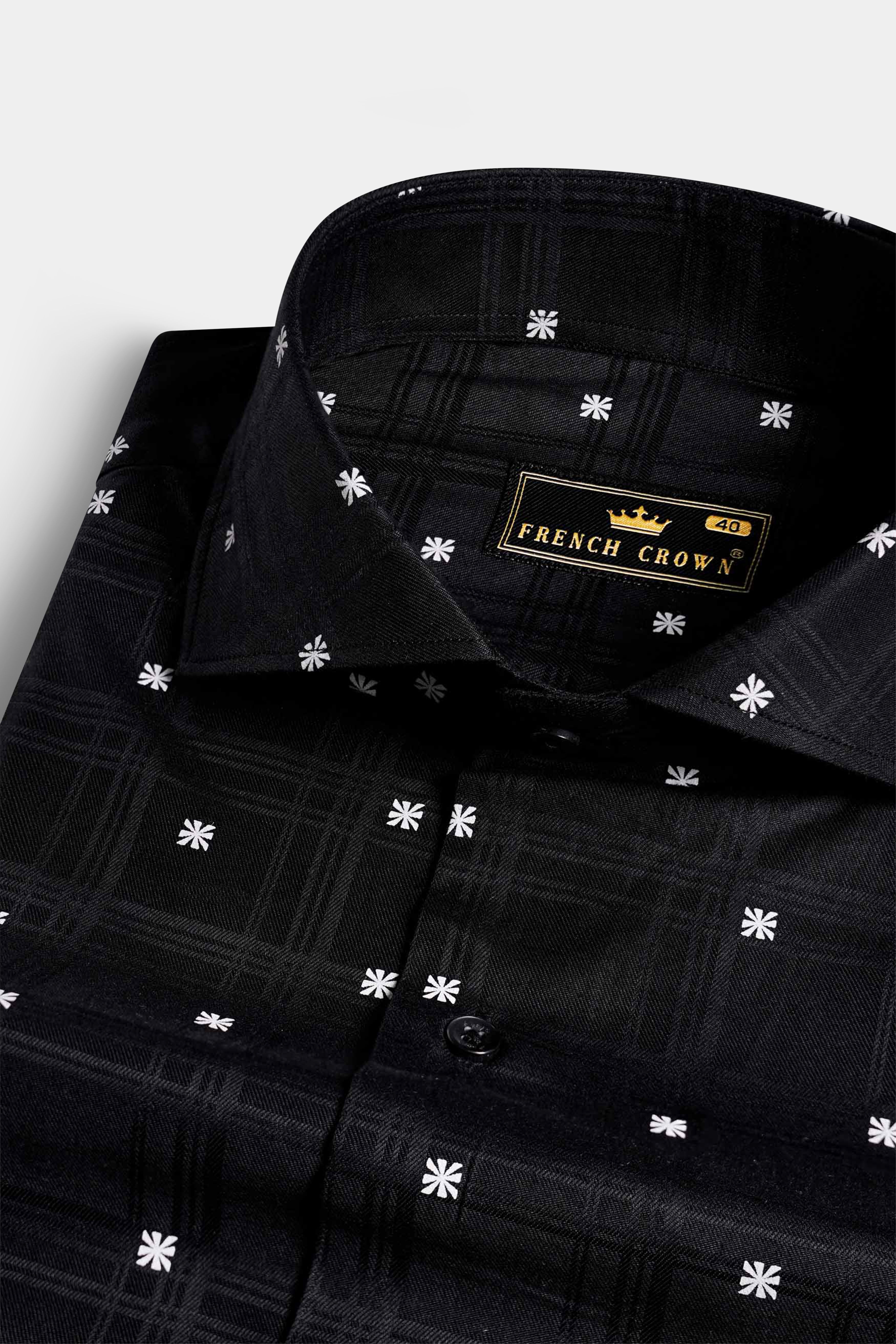 Jade Black and White Subtle Checkered Dobby Textured Premium Giza Cotton Shirt