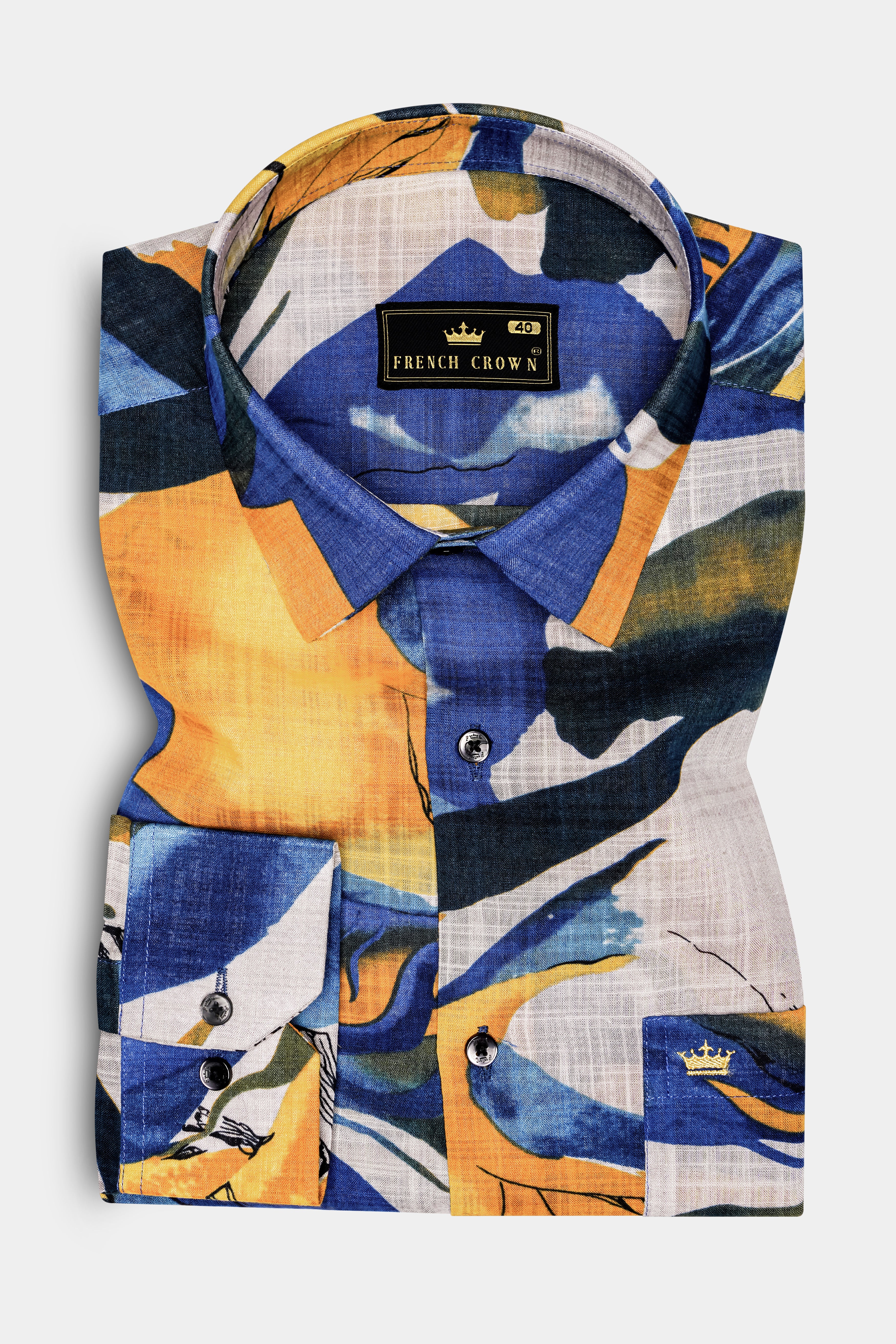 Haiti Blue Printed with White Cuffs and Collar Super Soft Premium Cotton ShirtHaiti Blue Printed with White Cuffs and Collar Super Soft Premium Cotton Shirt
