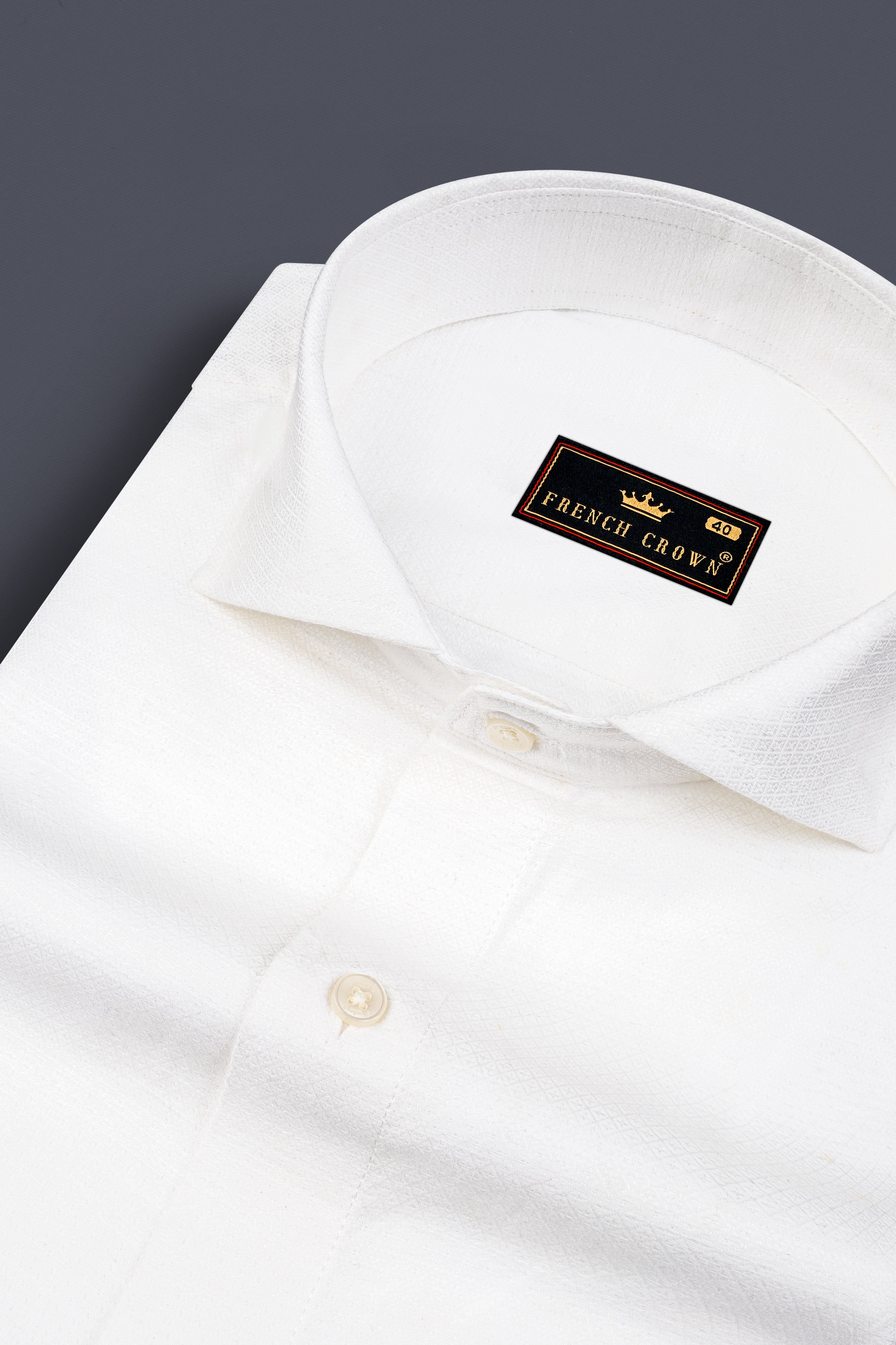 Bright White Dobby Textured Premium Giza Cotton Designer Shirt