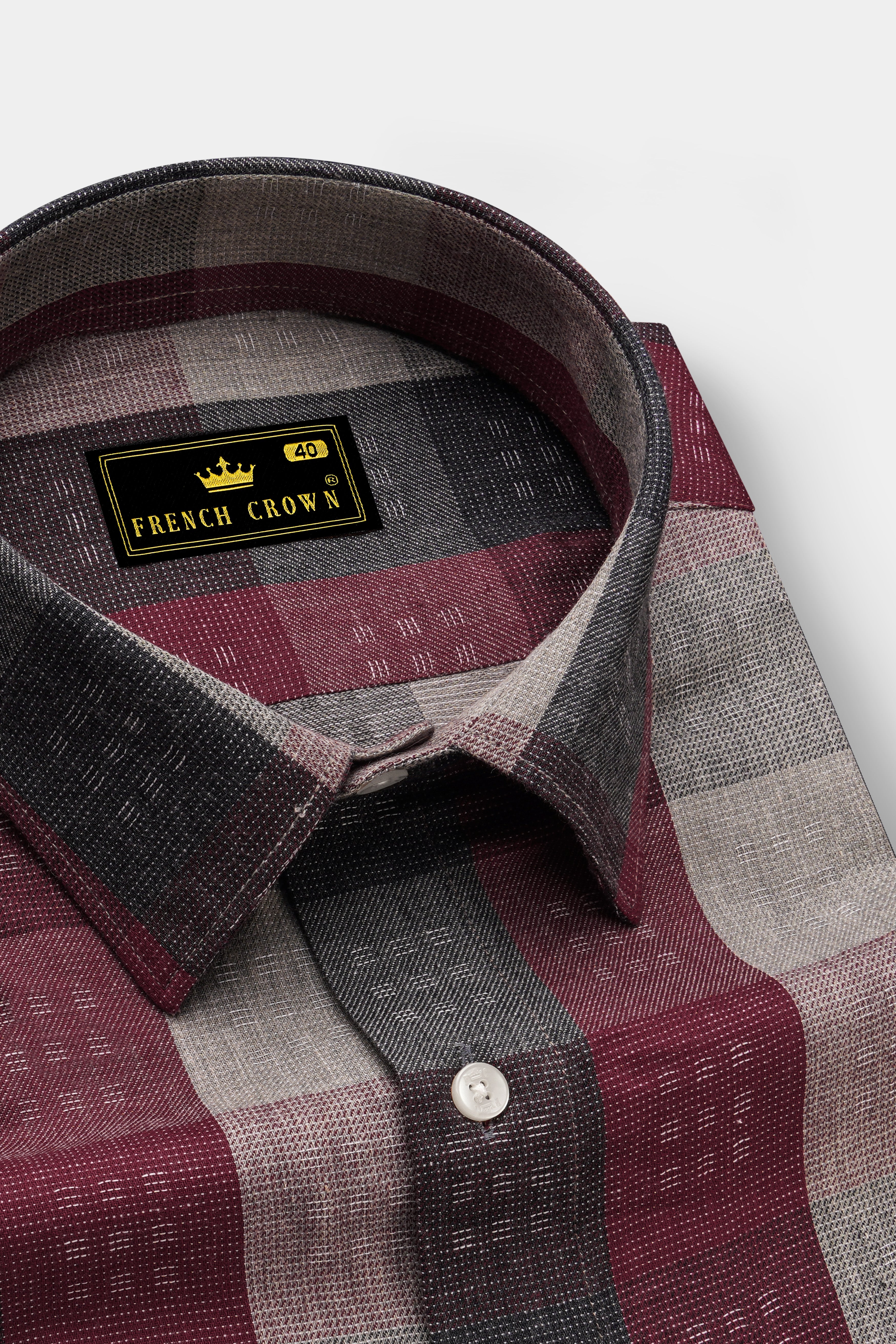 Grey with twill Black Windowpane Premium Cotton Shirt