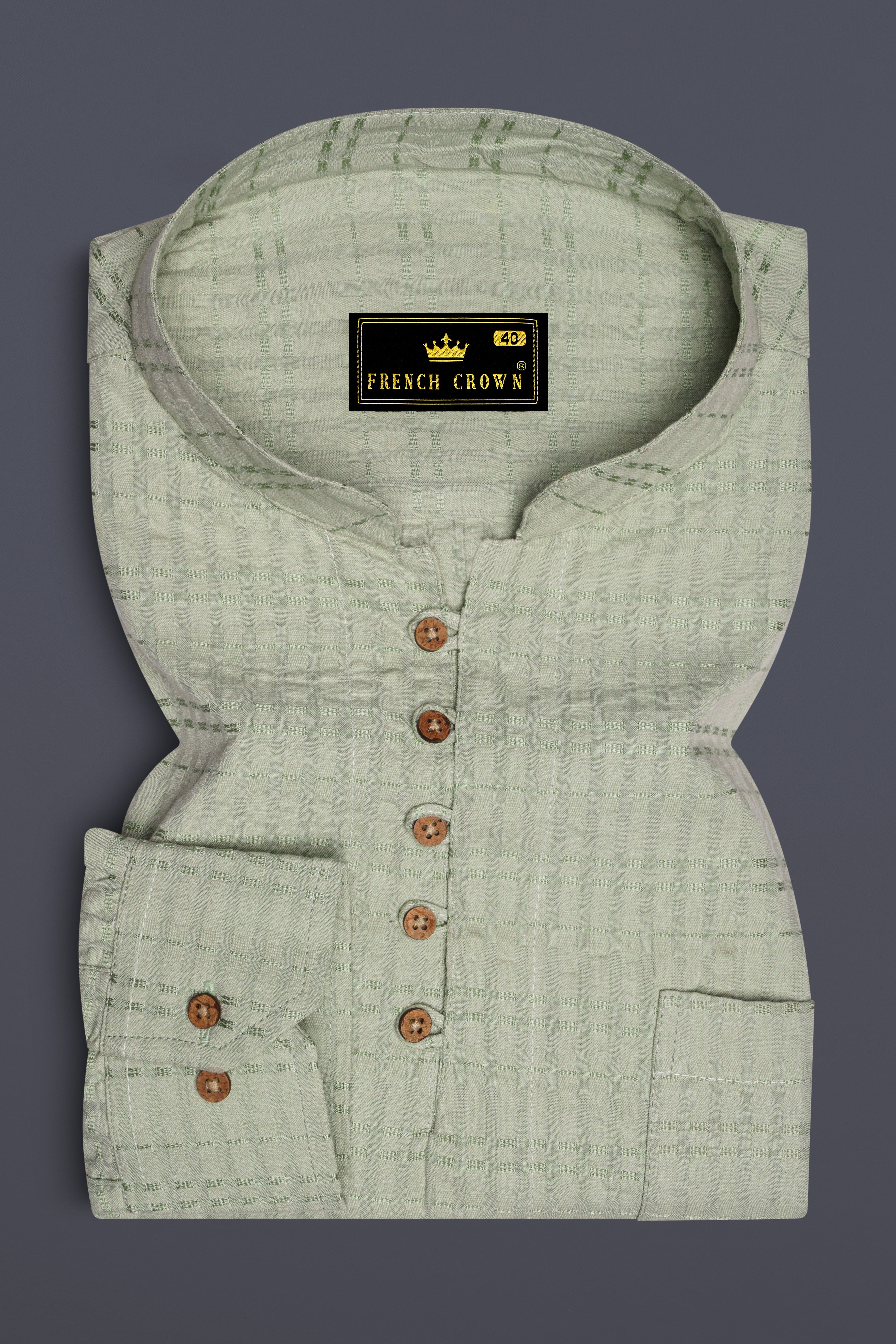 Coriander Green Jacquard Butta Textured Premium Giza Cotton Shirt