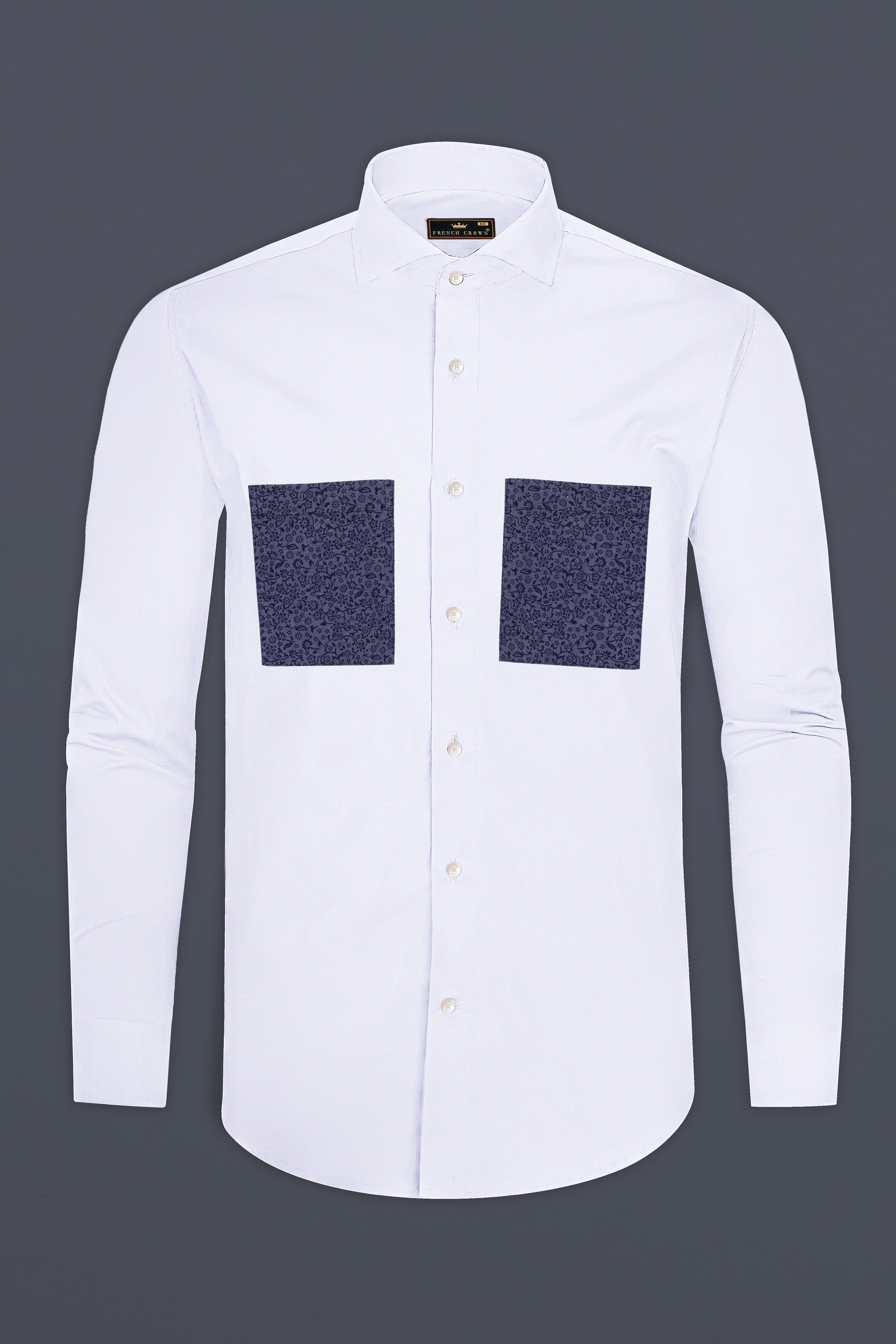 Bright White with Green Patch Pocket Luxurious Linen Designer Shirt