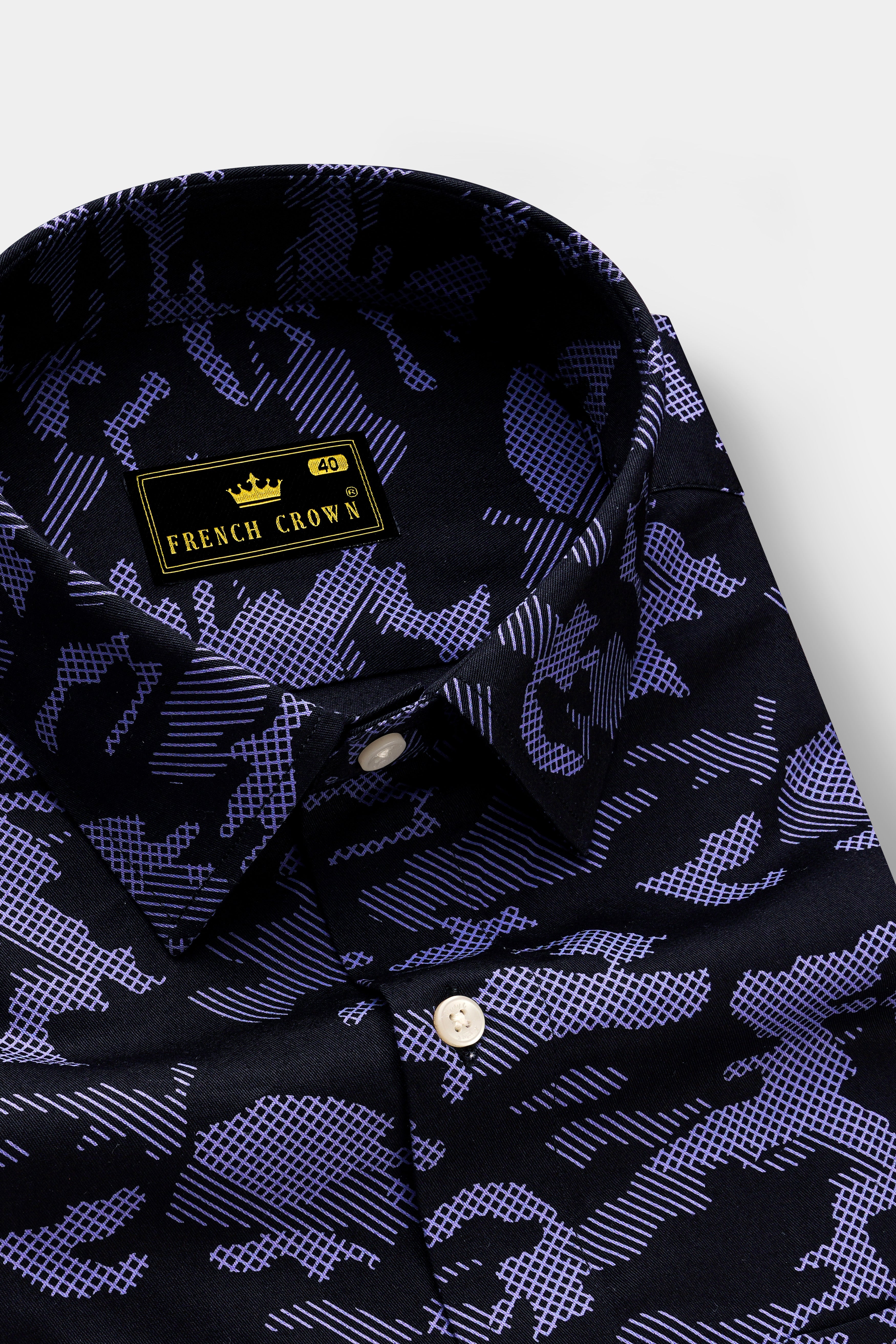 Half Camouflage Printed and Half-Black Royal Oxford Designer Bush ShirtHalf Camouflage Printed and Half-Black Royal Oxford Designer Bush Shirt