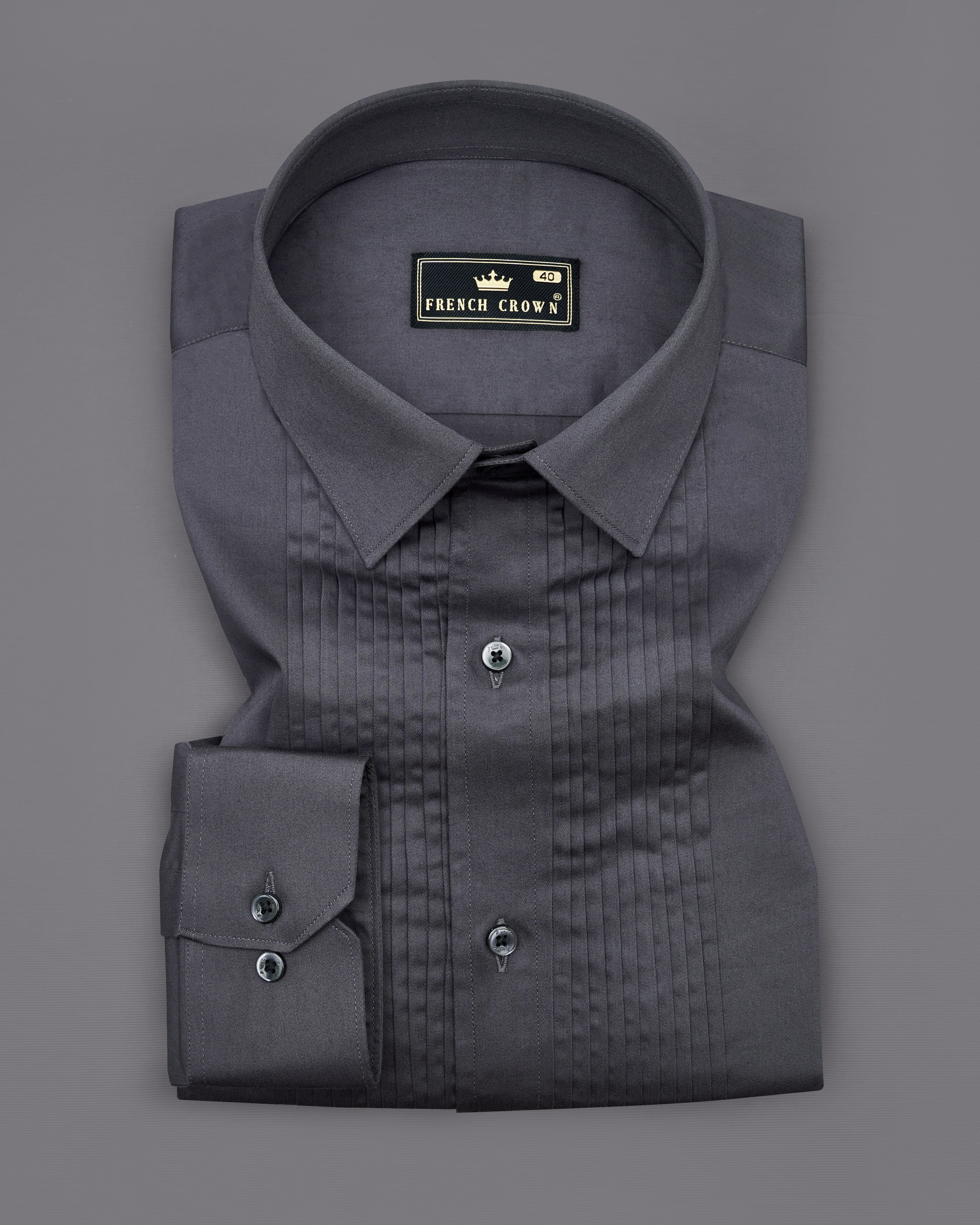 Iridium Gray Subtle Sheen Snake Pleated Super Soft Premium Cotton Tuxedo Shirt