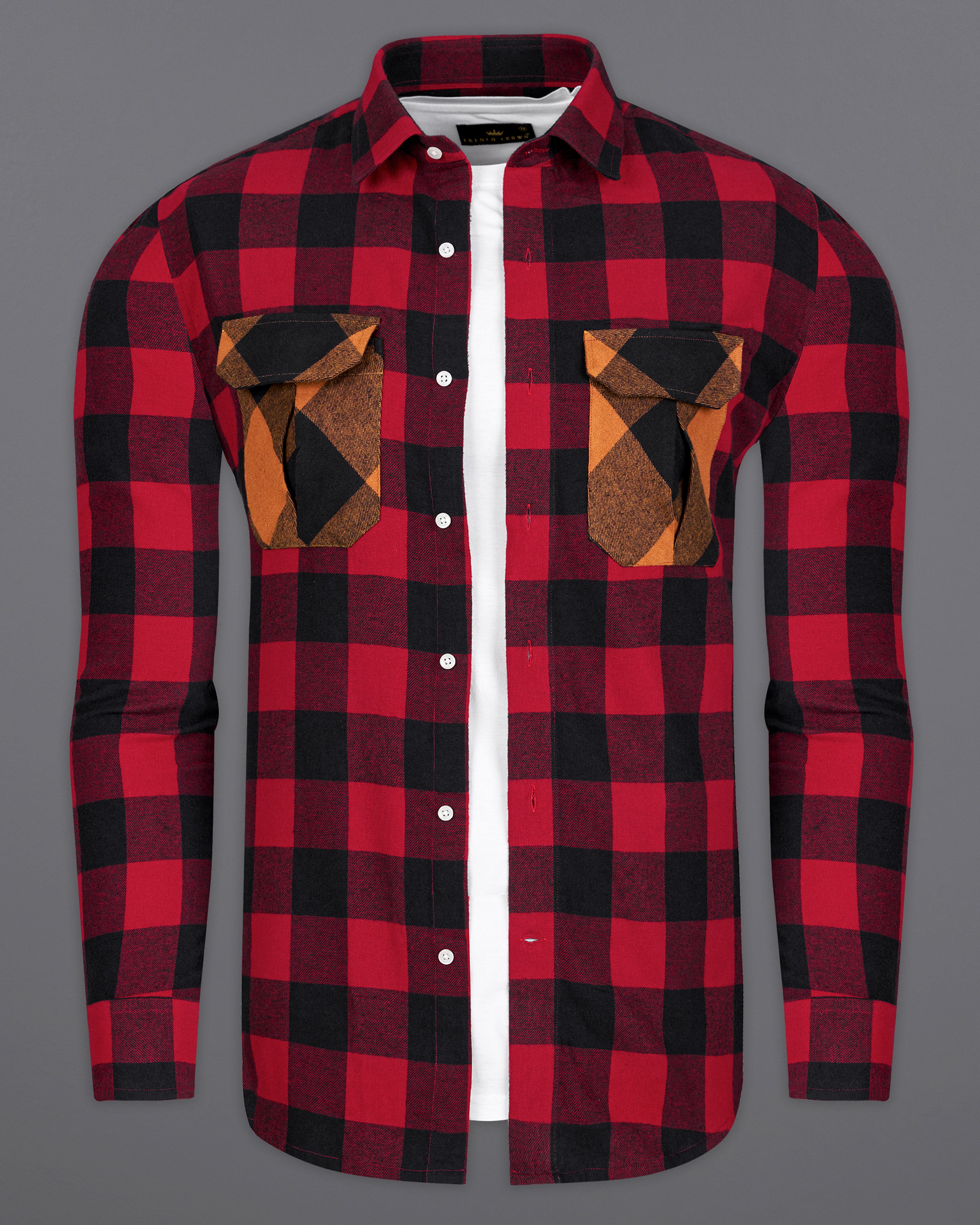 Shiraz Red and Black Checked Flannel Designer Overshirt/Shacket
