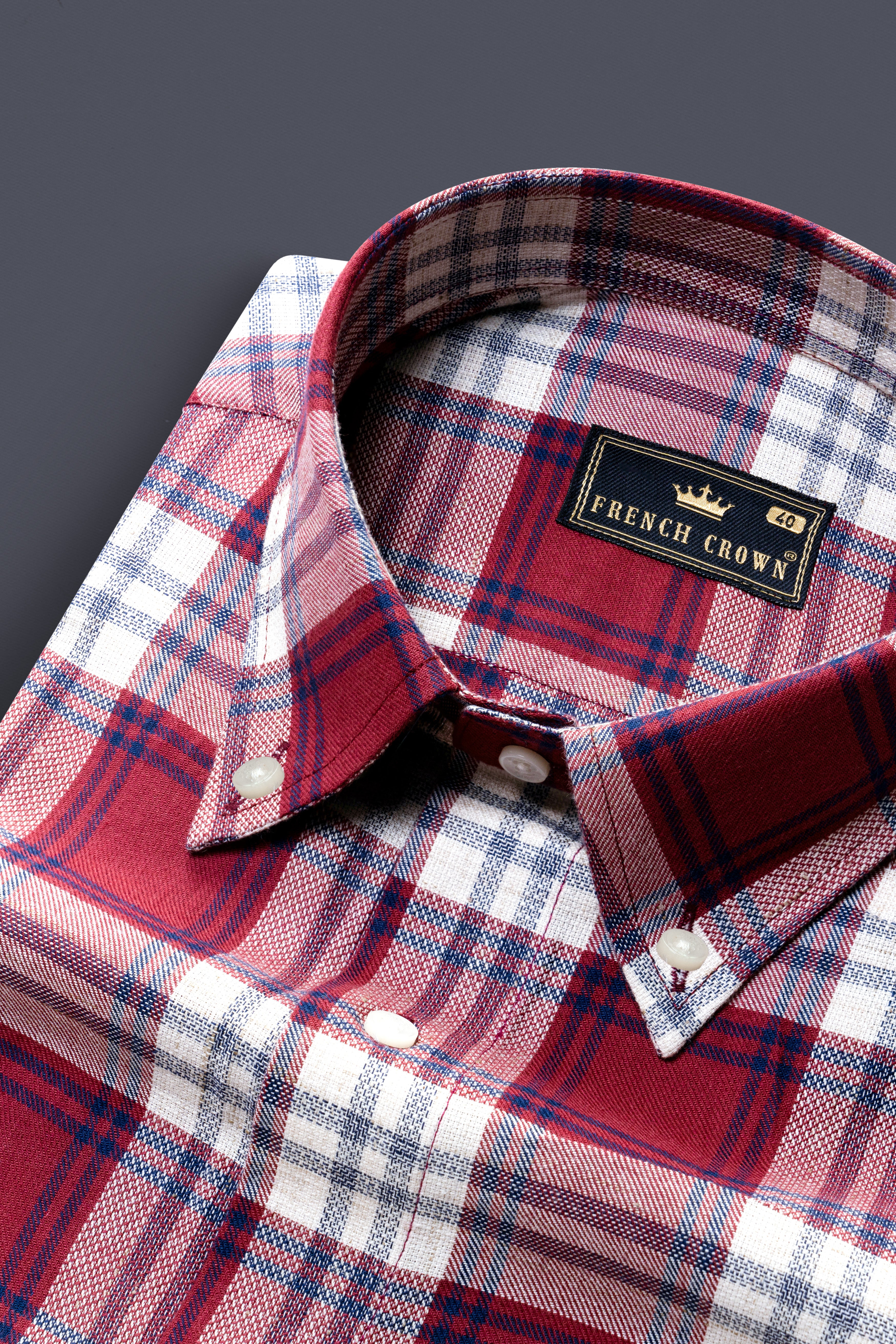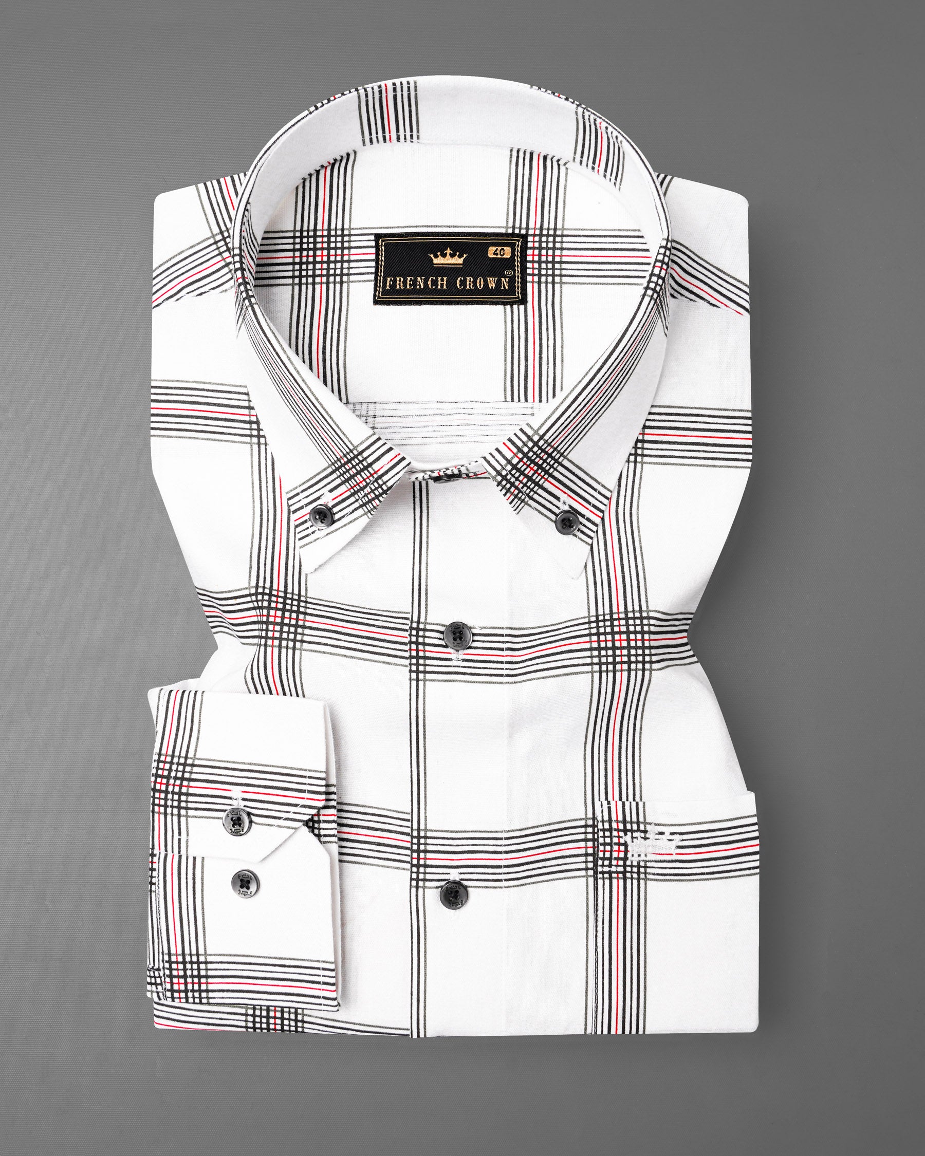 Matterhorn Brown with White Plaid Dobby Textured Premium Giza Cotton Shirt