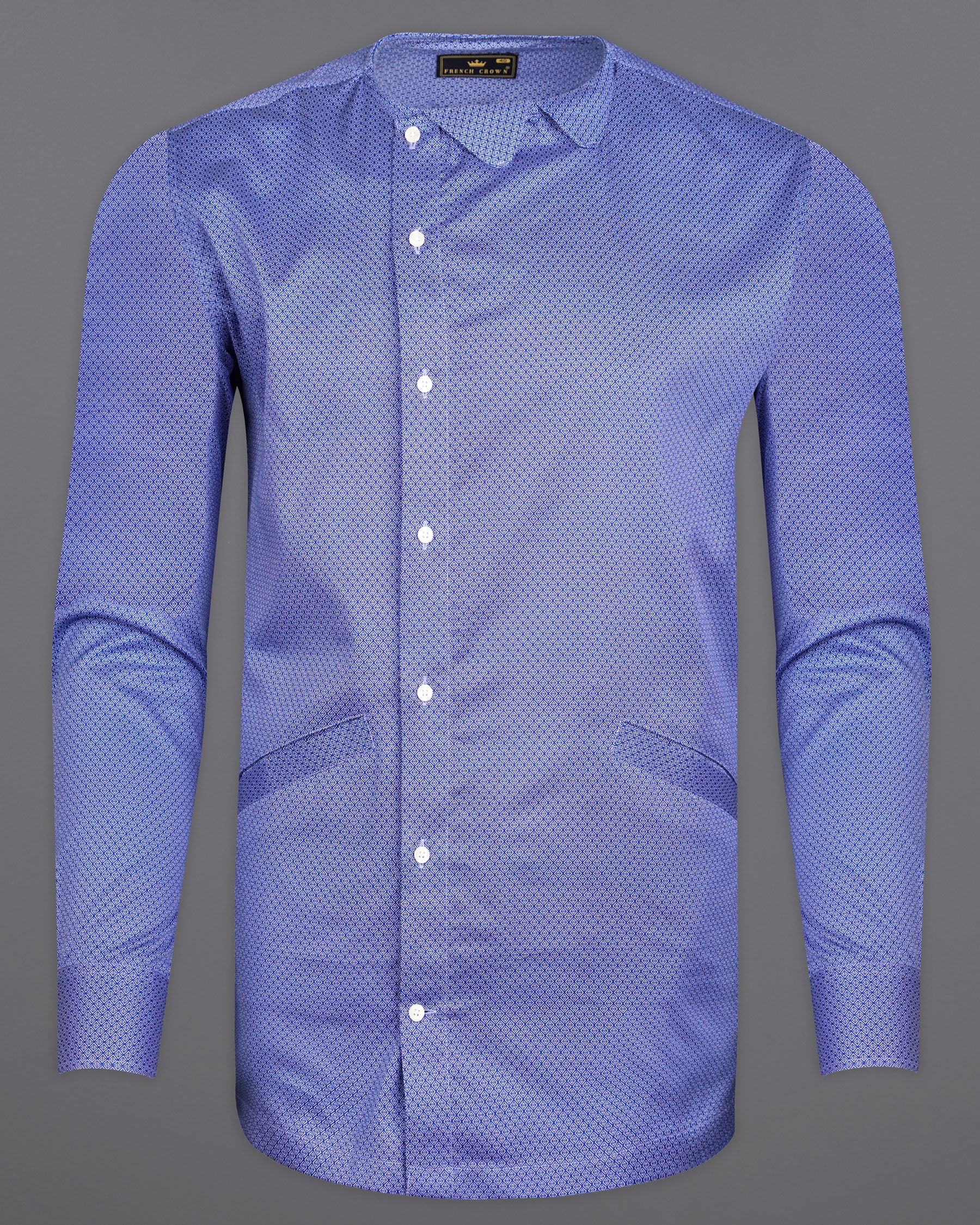 Dark Periwinkle Blue Geometric Printed Premium Cotton Designer Shirt