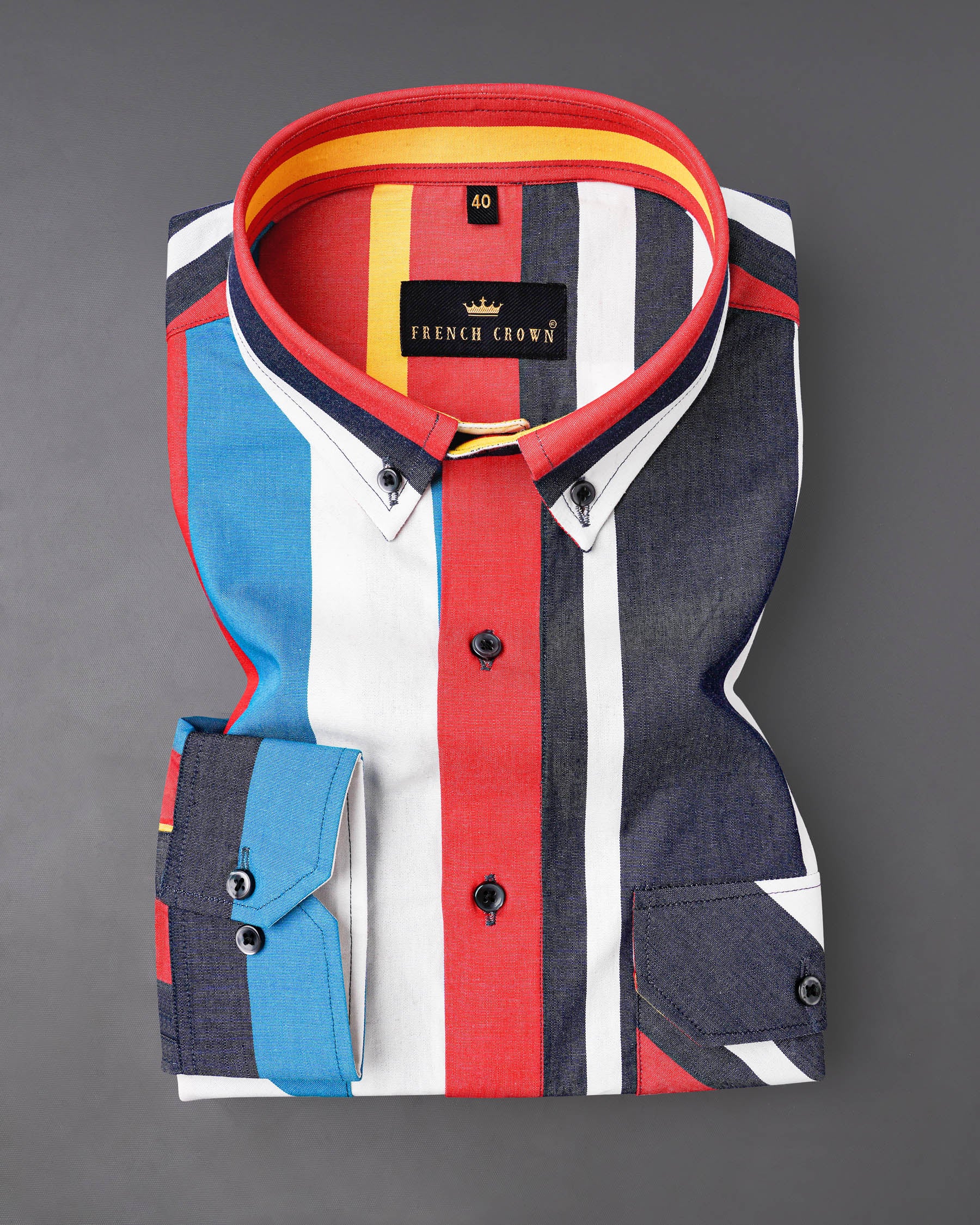 Bright White with Gun Powder Multicolour Striped Chambray ShirtBright White with Gun Powder Multicolour Striped Chambray Shirt