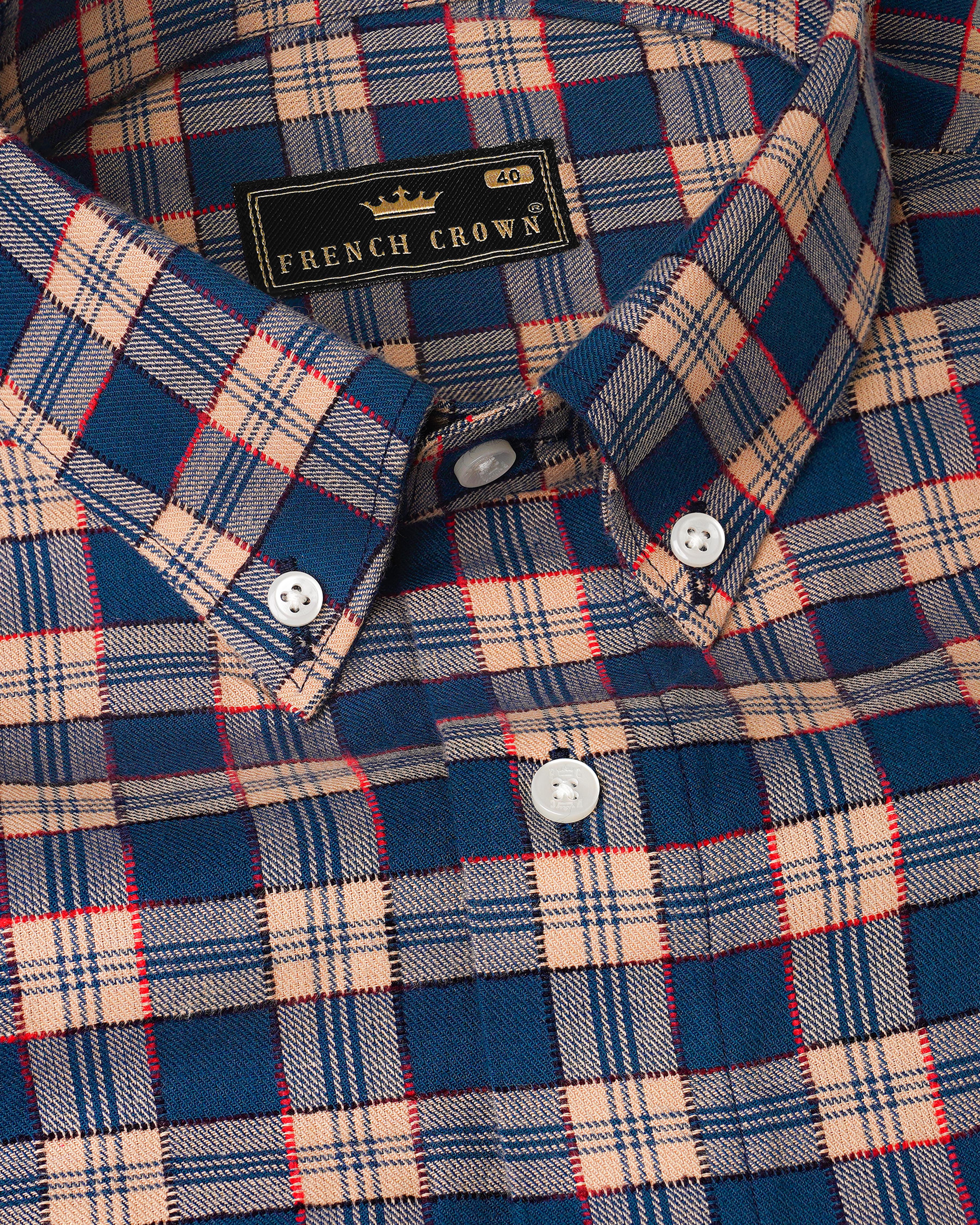 Old Copper Brown with Bunting Blue Twill Plaid Premium Cotton Shirt
