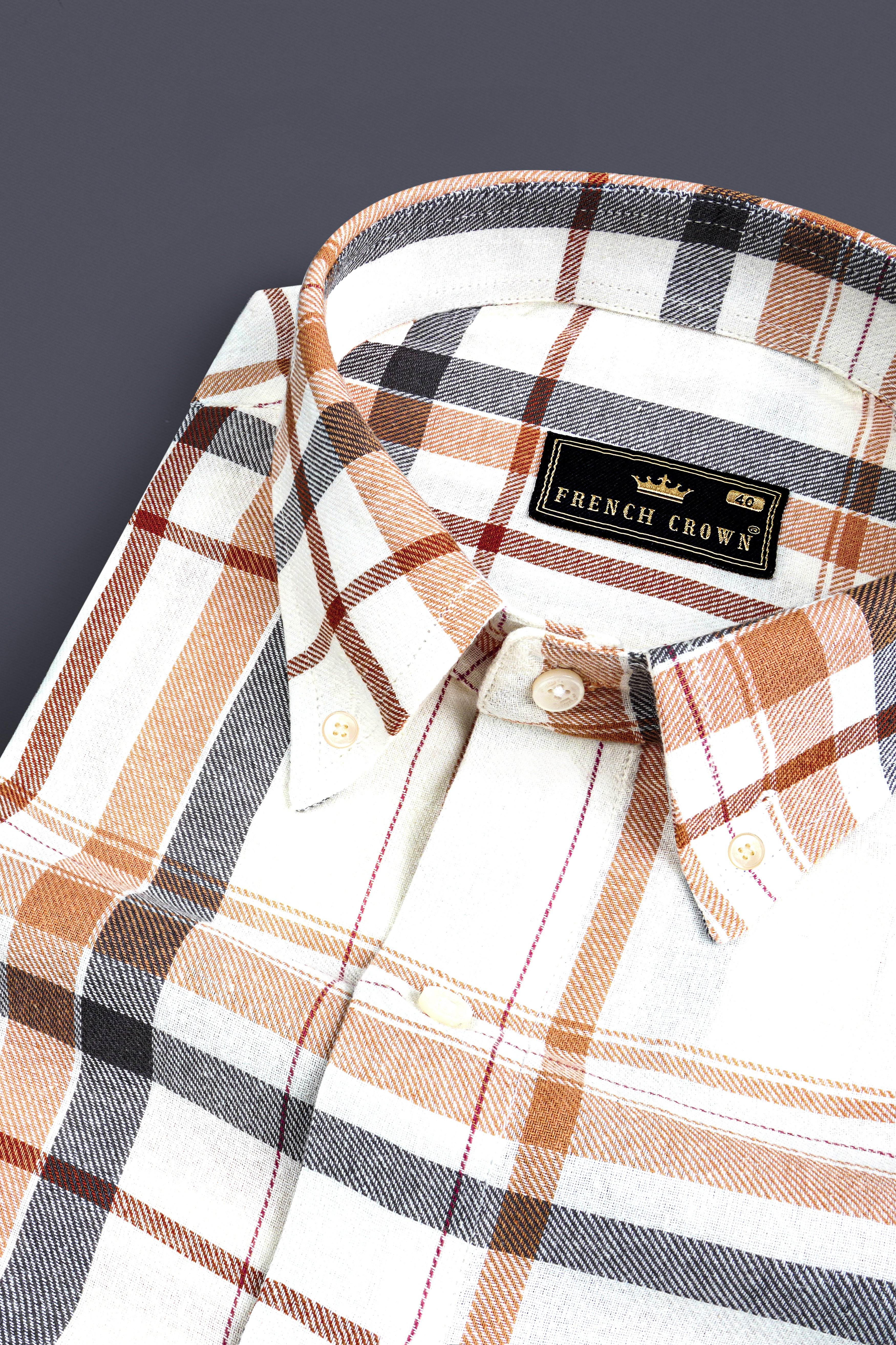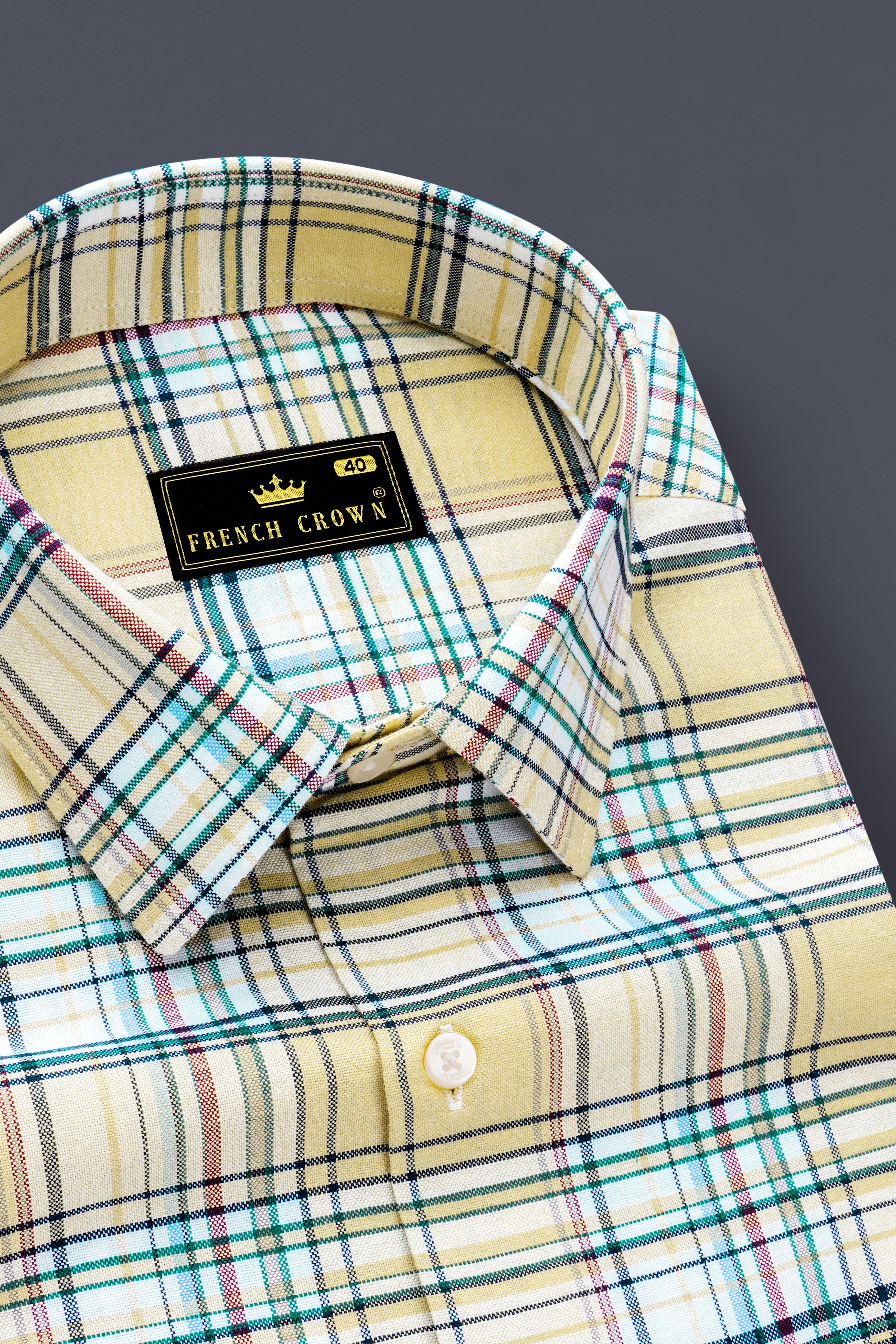Chamois Beige with Oxley Green and Brownish Checkered Royal Oxford ShirtChamois Beige with Oxley Green and Brownish Checkered Royal Oxford Shirt