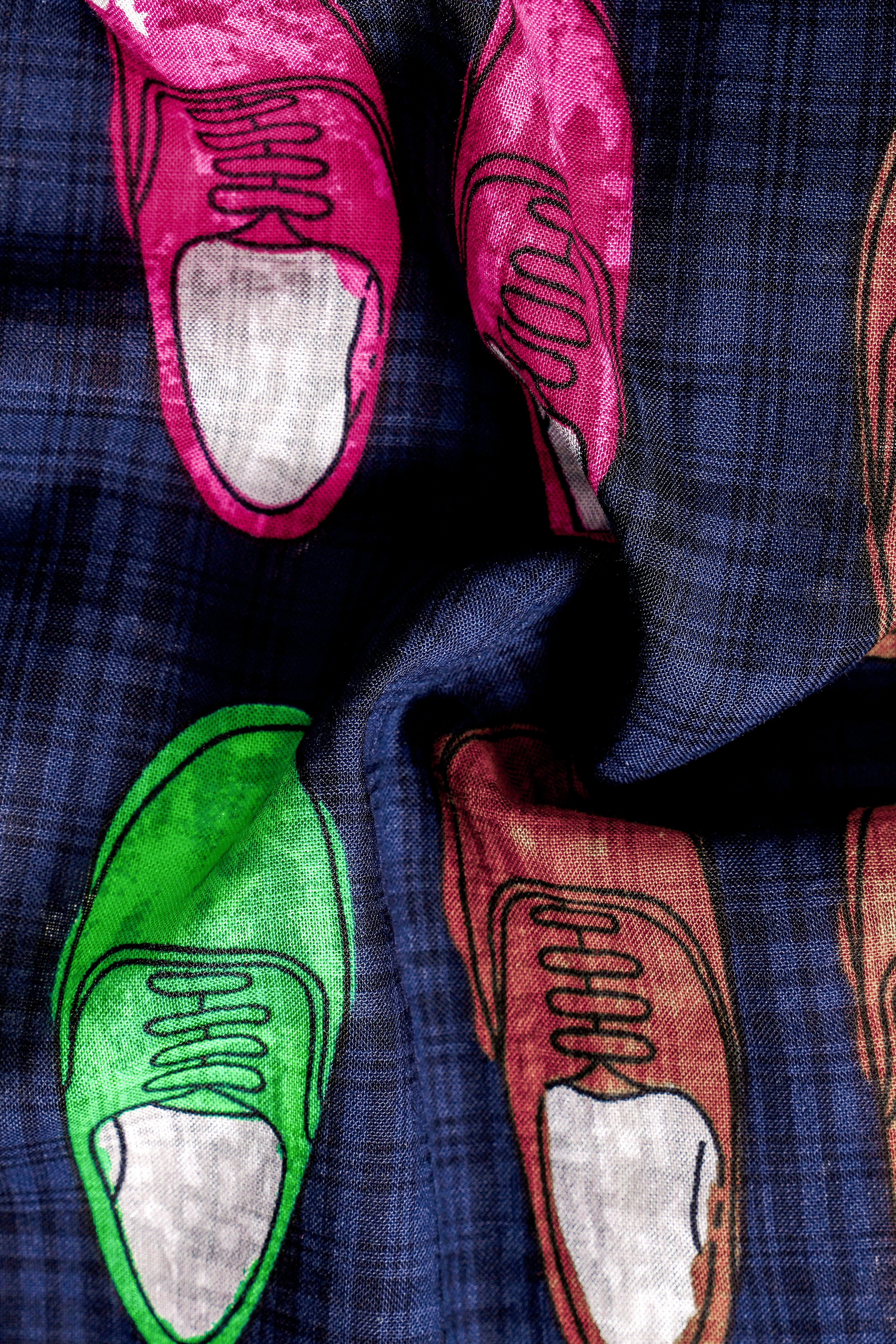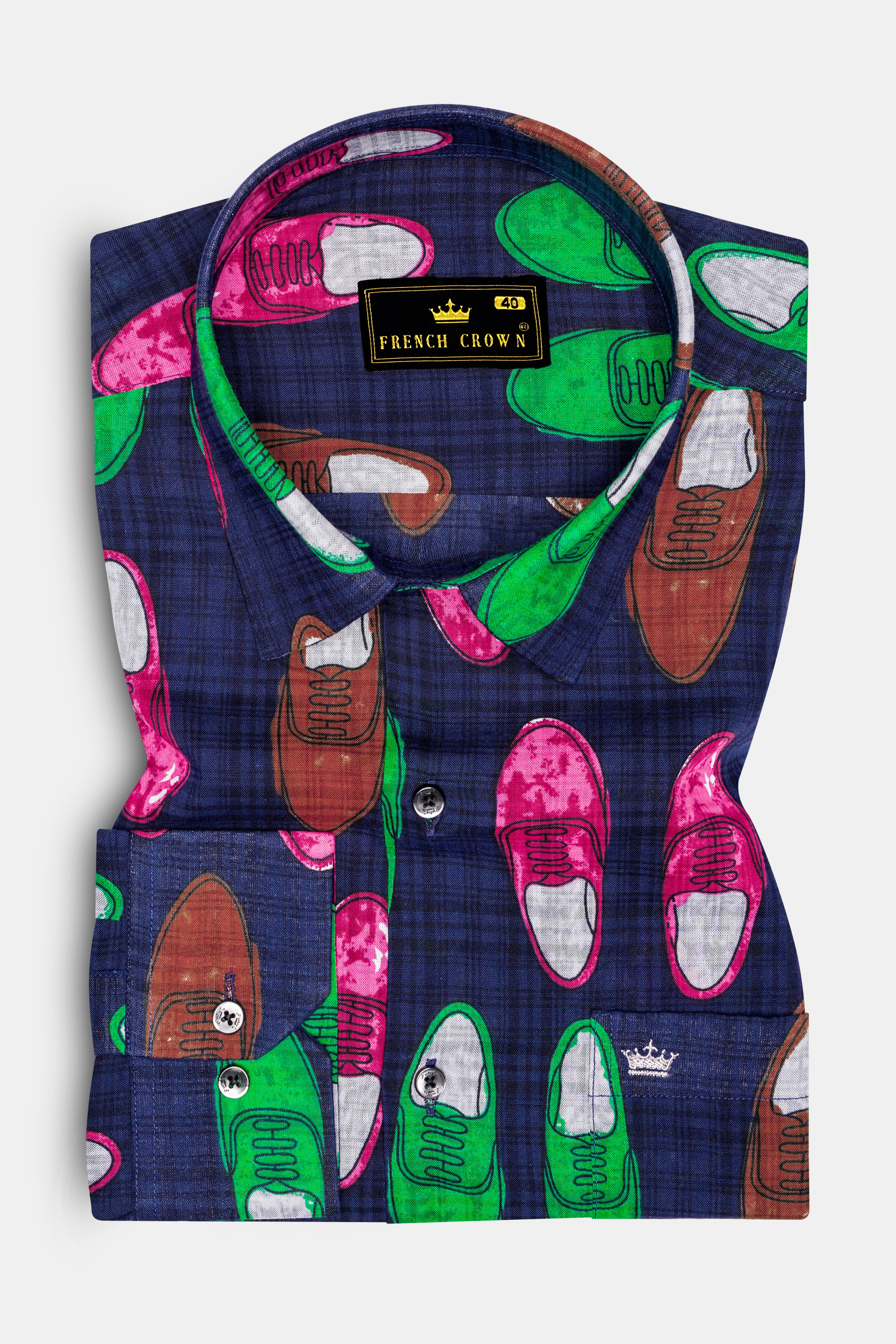 Rhino Blue and White Plaid with Animated Creature Patchwork Twill Premium Cotton Designer Shirt Sale price₹ 996 Regular price₹ 249060%